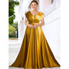 PLUS SIZE Women’s V Neck Short Sleeve Evening Party Dress Temperament Solid Colour Long Cocktail Satin High Waist Summer Dresses