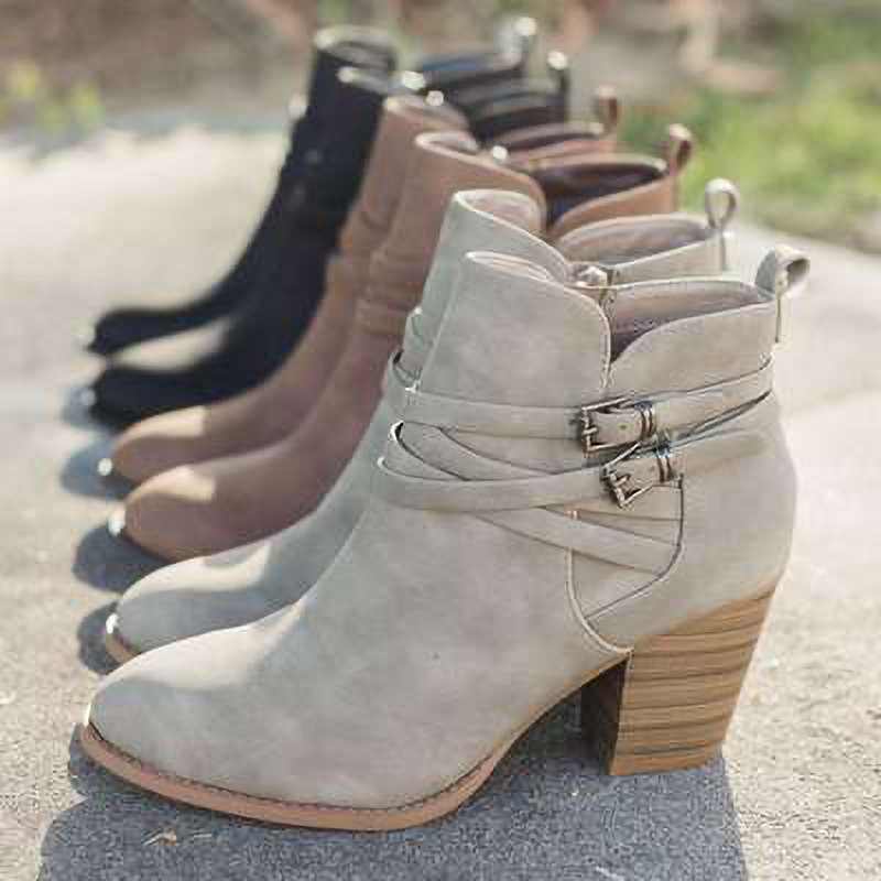Pointed square root gray female cross strap rhinestone ankle boots 2021 fashion female short boots fashion single shoes