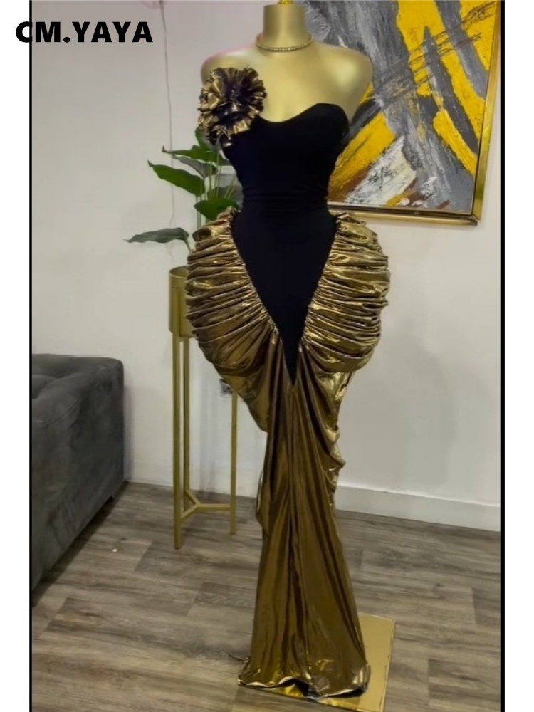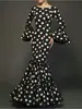 Polk Dot Print Maxi Dress for Women Flare Sleeve Ruffle Elegant Trumpet Dress Slim Round Neck Temperament Evening Dresses