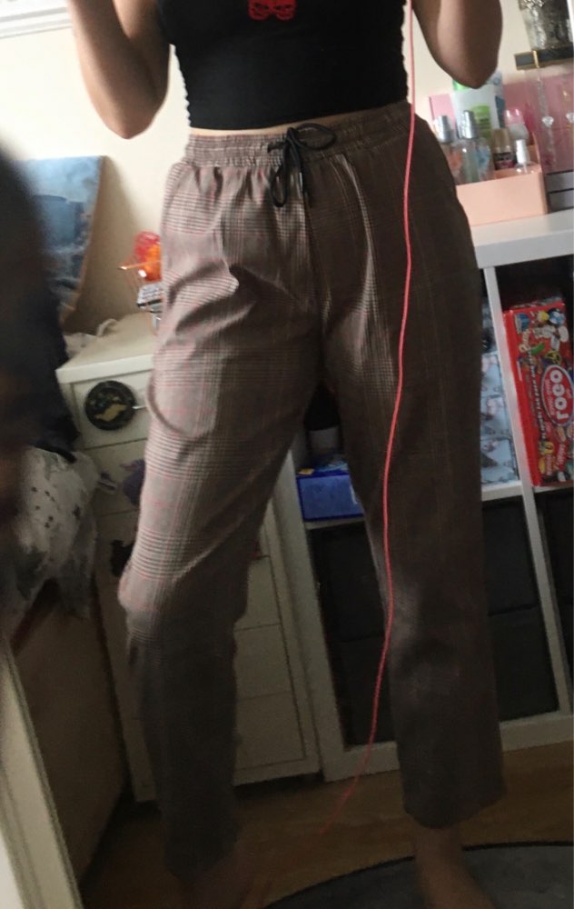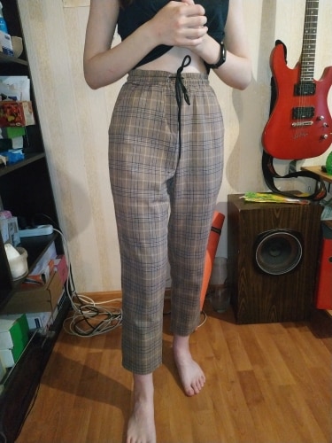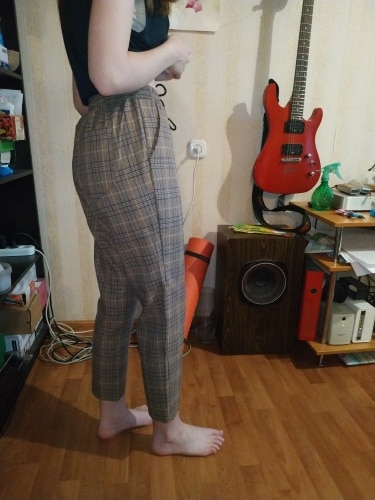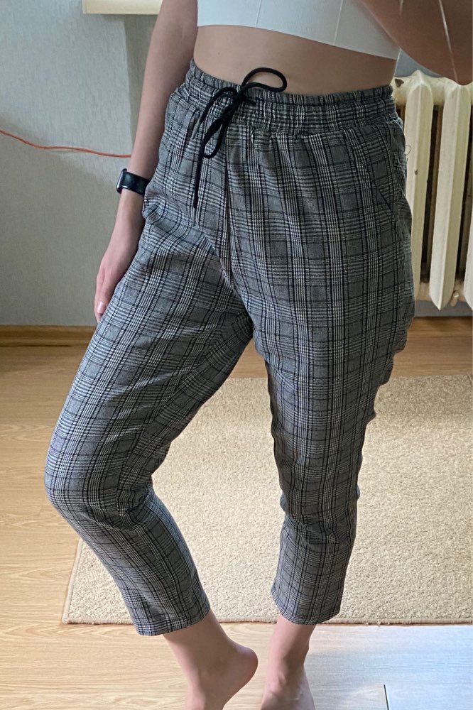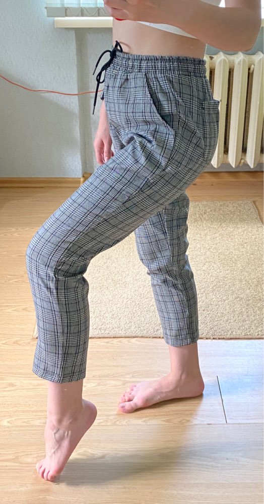 Very high quality pants! Not thin. The material is nice. Threads do not stick out. On its parameters waist 73, hips 91, height 170. Took M. The length is short, but I thought that it would, plus turned and everything is fine! Ropes tighten, this is a girl a huge plus for such a hudyshik as I)) shorter I recommend! P.S. Sorri, for a crumpled shirt)) also from Alika on this day came)