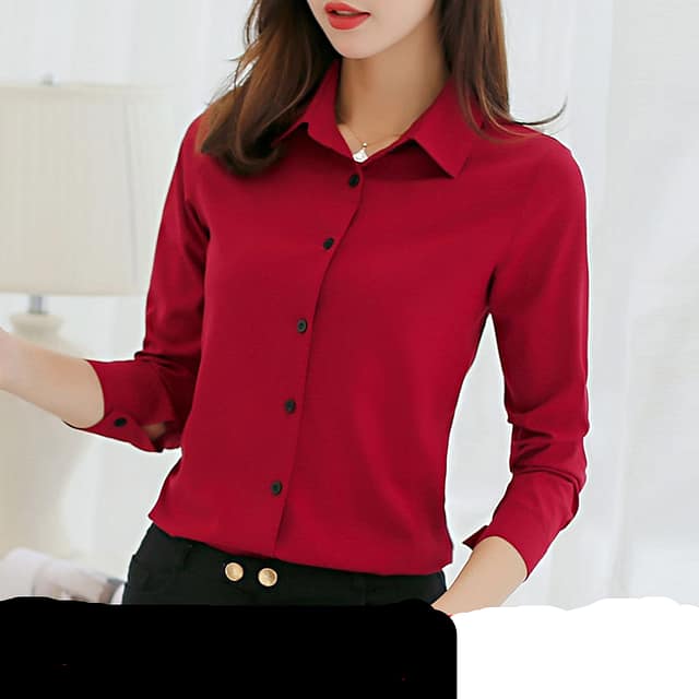 Women Blouses Direct Selling Button Solid 2020 Autumn New Long-sleeve Shirt Female Chiffon Women’s Slim Clothing