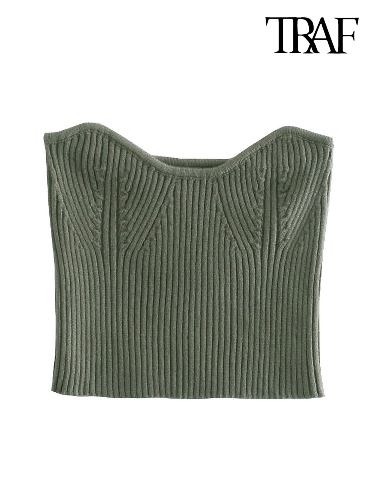 TRAF Women Sexy Fashion Cross Straps Knitted Tank Tops Vintage Strapless Slim Fitted Female Camis Chic Tops