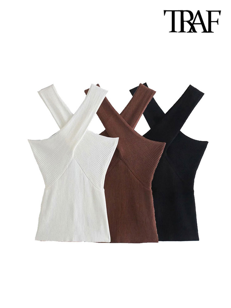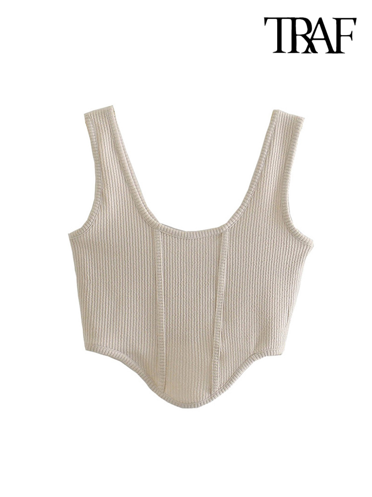 TRAF Women Fashion Stretchy Slim Cropped Knitted Tank Tops Vintage Sleeveless Female Camis Mujer