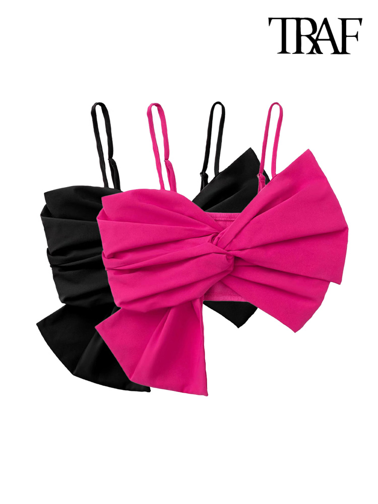 TRAF Women Fashion With Bow Cropped Tank Tops Vintage Backless Thin Straps Female Camis Mujer