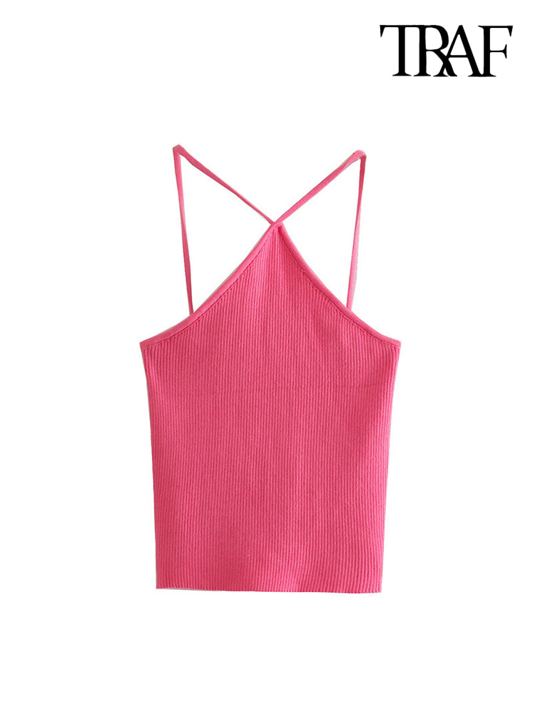 TRAF Women Fashion With Tied Cropped Knit Tank Tops Vintage Backless Thin Straps Female Camis Mujer