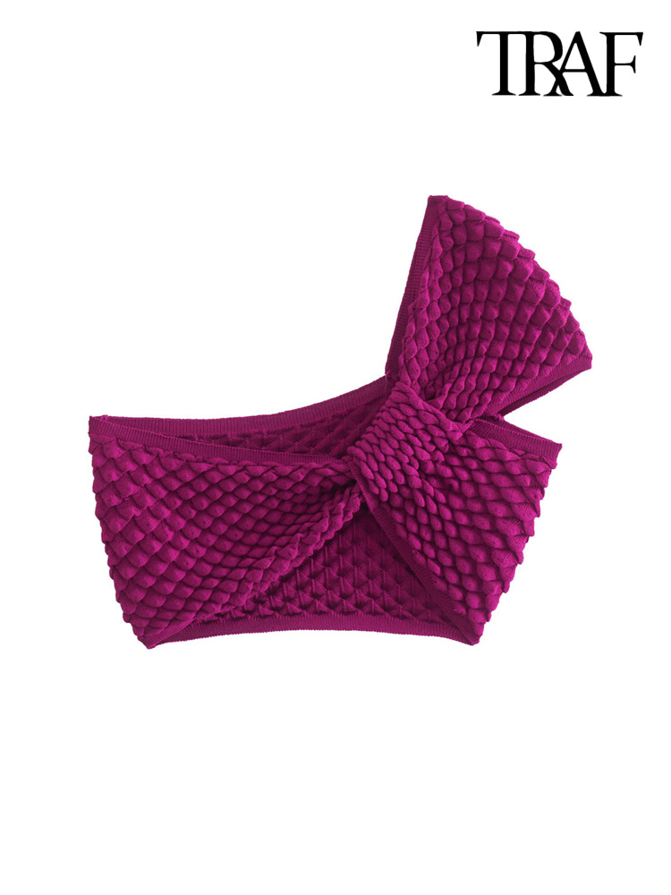 TRAF Women Sexy Fashion Front Knotted Cropped Knit Tank Tops Vintage One Shoulder Asymmetrical Female Camis Mujer