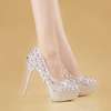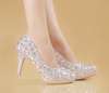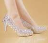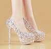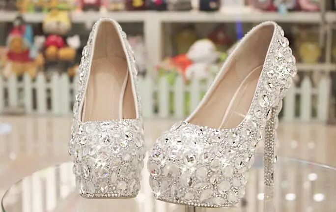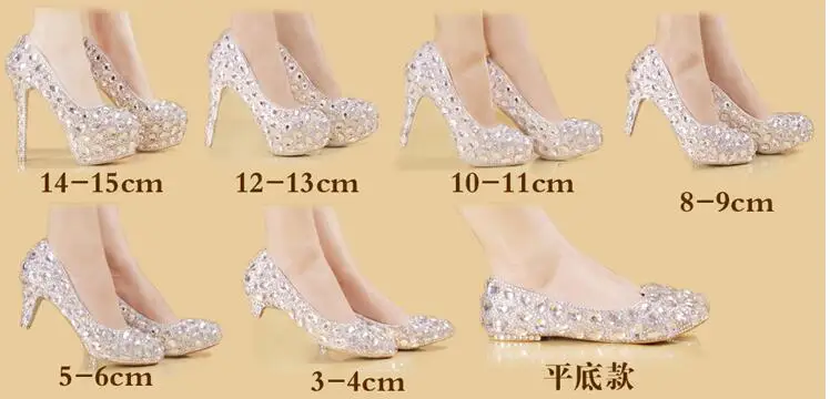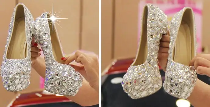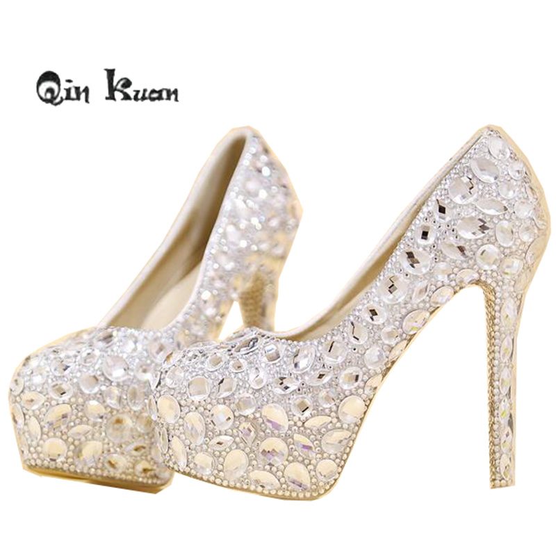 Qin Kuan New Women High Heels European Wedding Pumps Shoes Ladies Sliver Gorgeous Crystal Stone Handmade Bridal Shoes Size 33-40