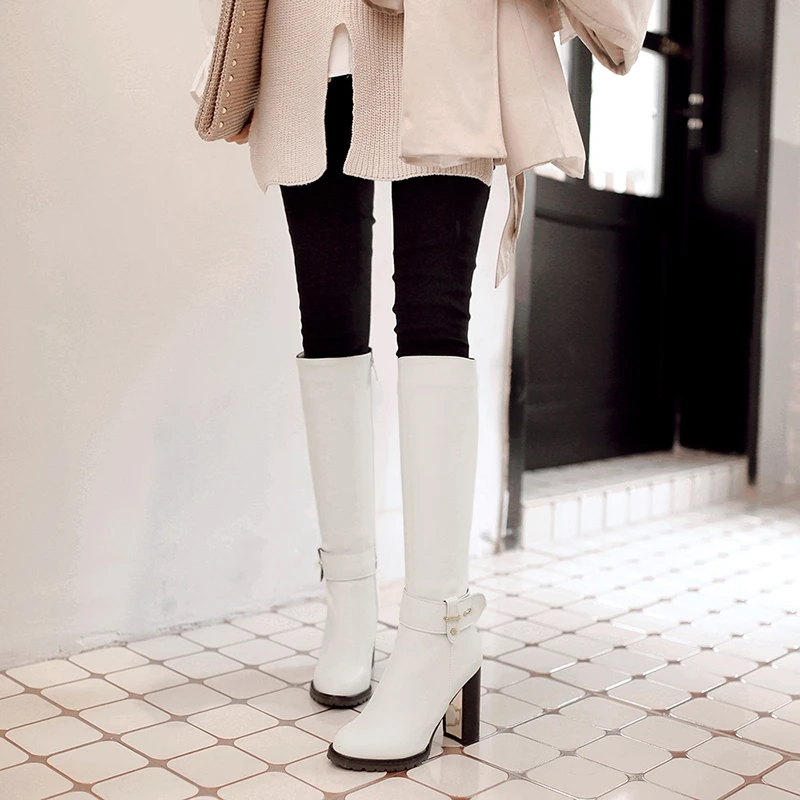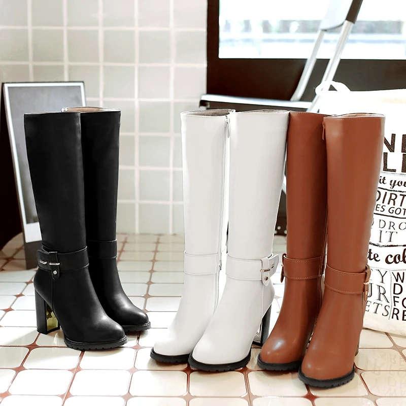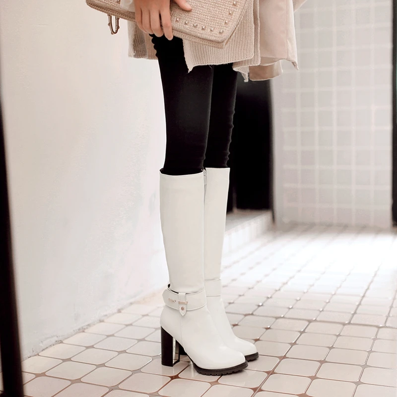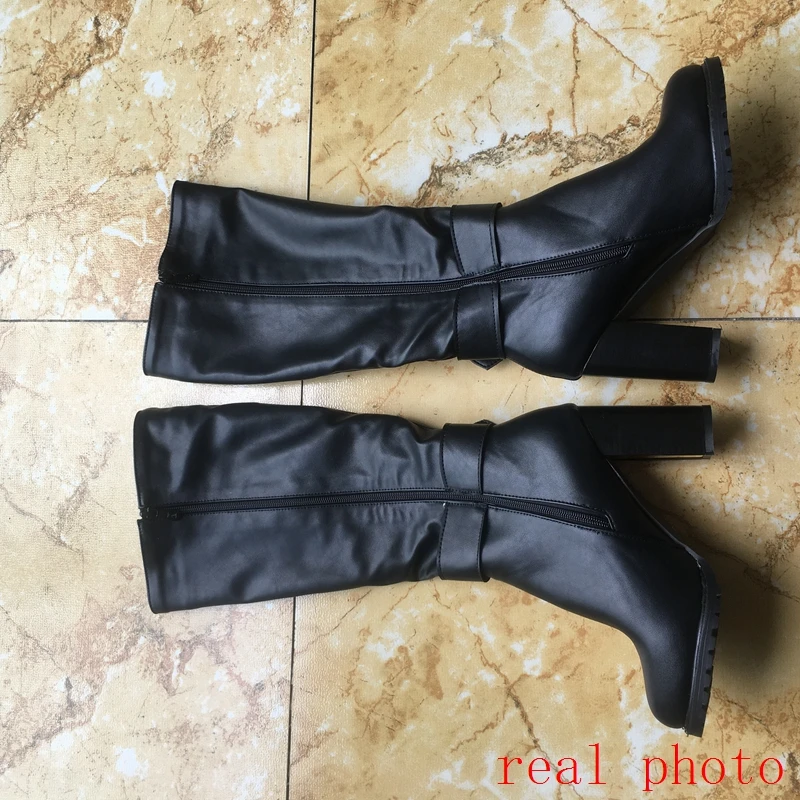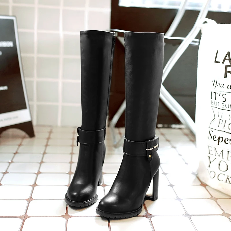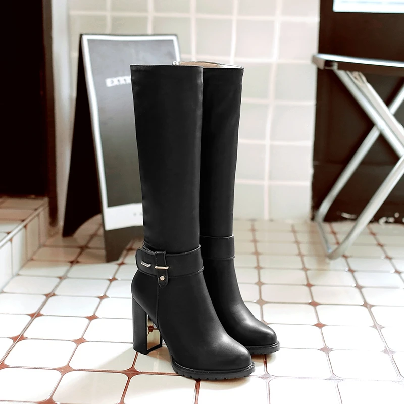 REAVE CAT Women knee boots Winter warm Round toe Fashion botas mujer footwear shoes Zipper High heel Boots pu leather A1271