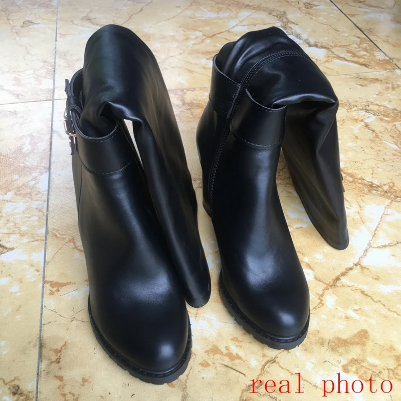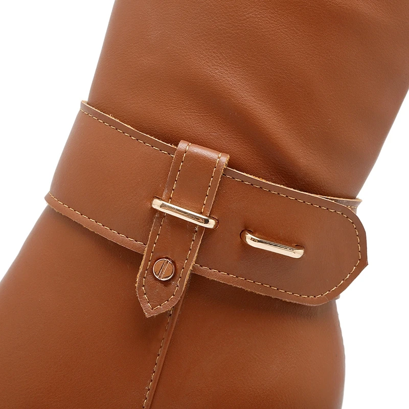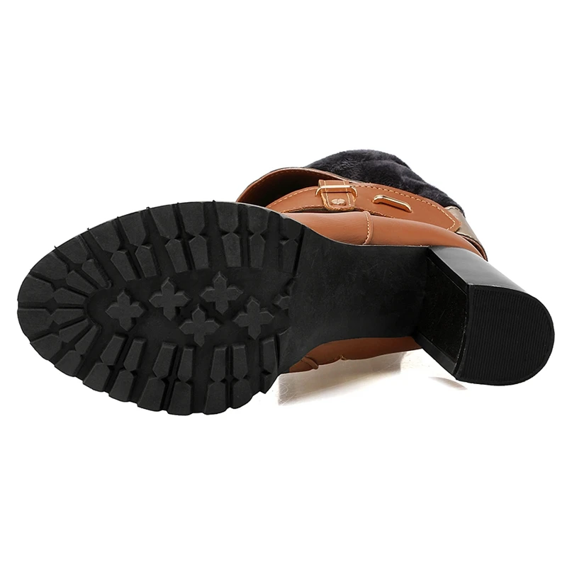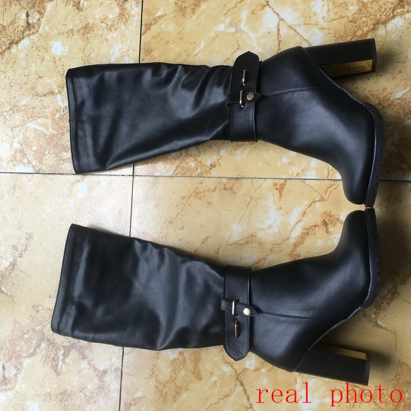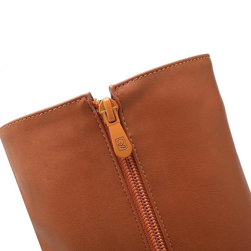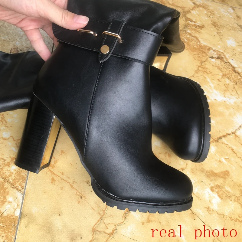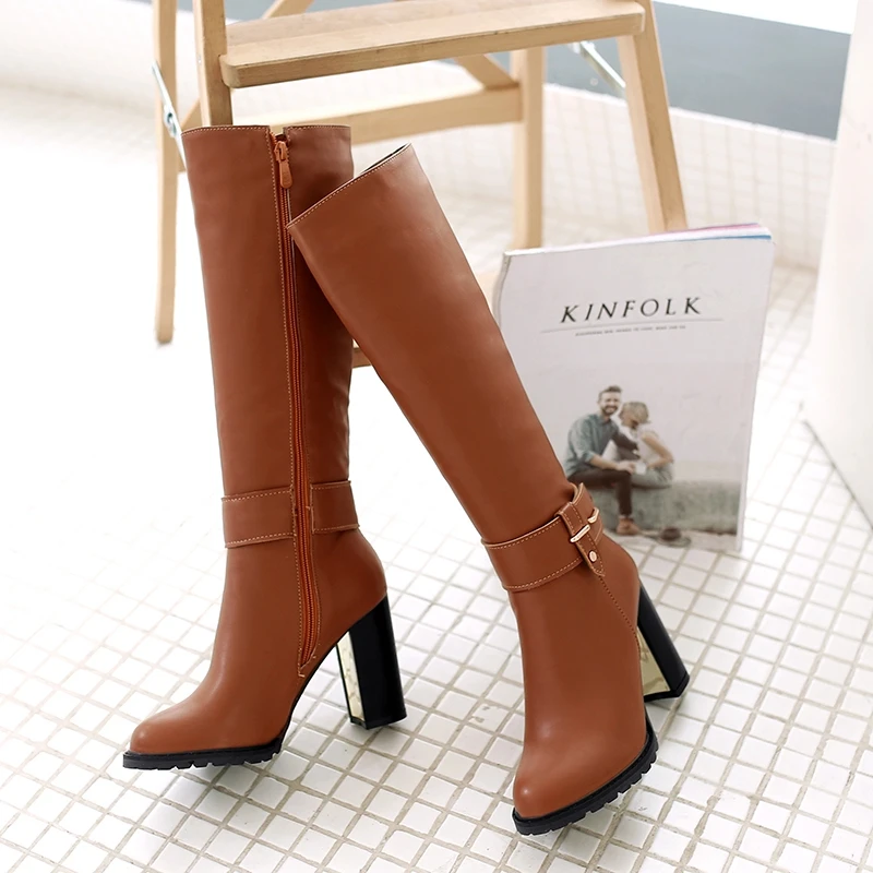 REAVE CAT Women knee boots Winter warm Round toe Fashion botas mujer footwear shoes Zipper High heel Boots pu leather A1271