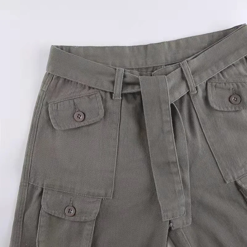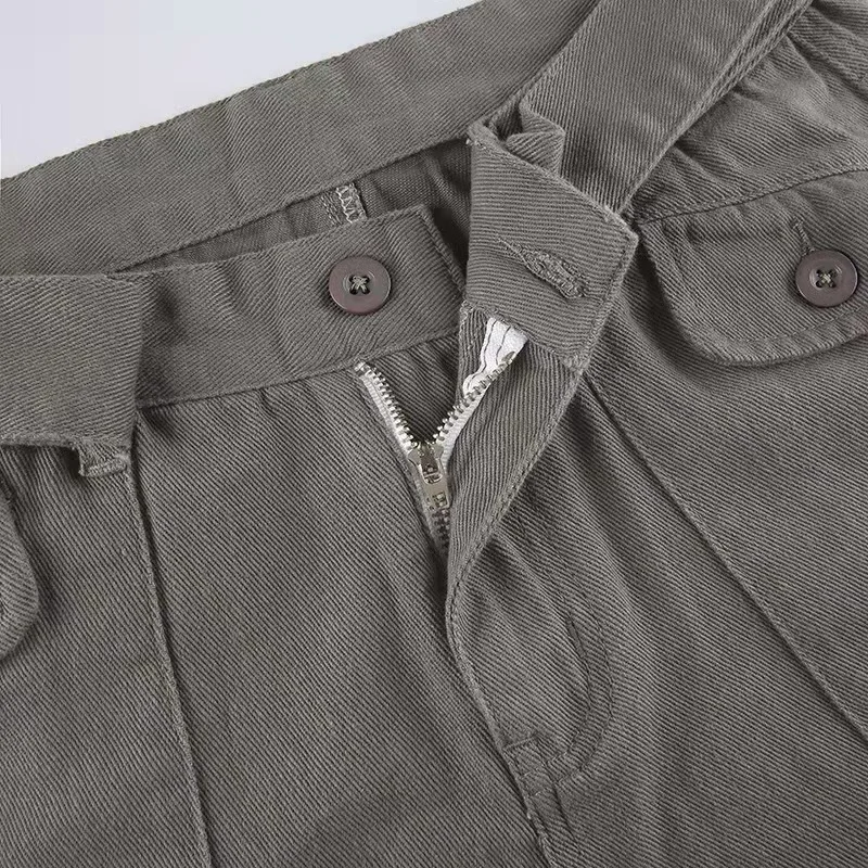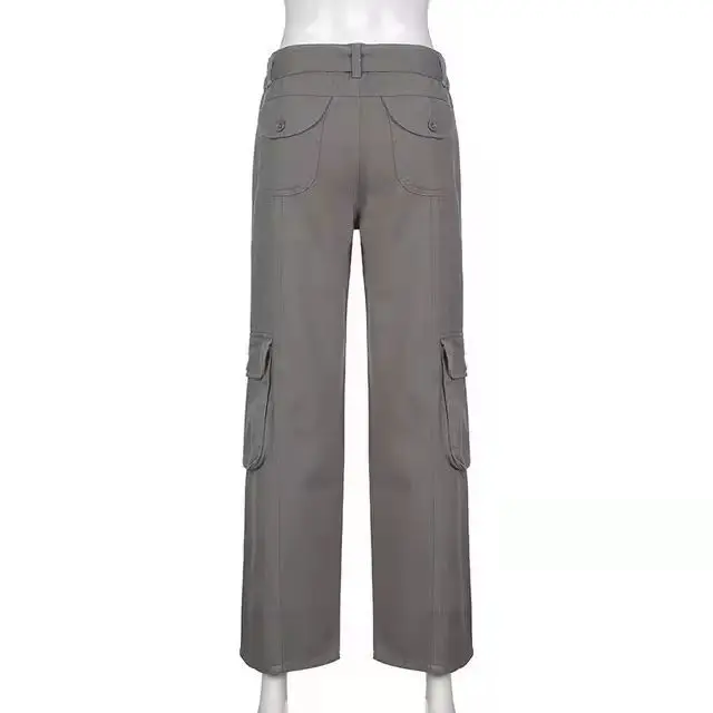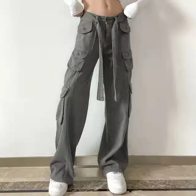 Retro gray overalls wide leg cargo women pants women's trousers sexy low waist loose casual trousers vintage streetwear