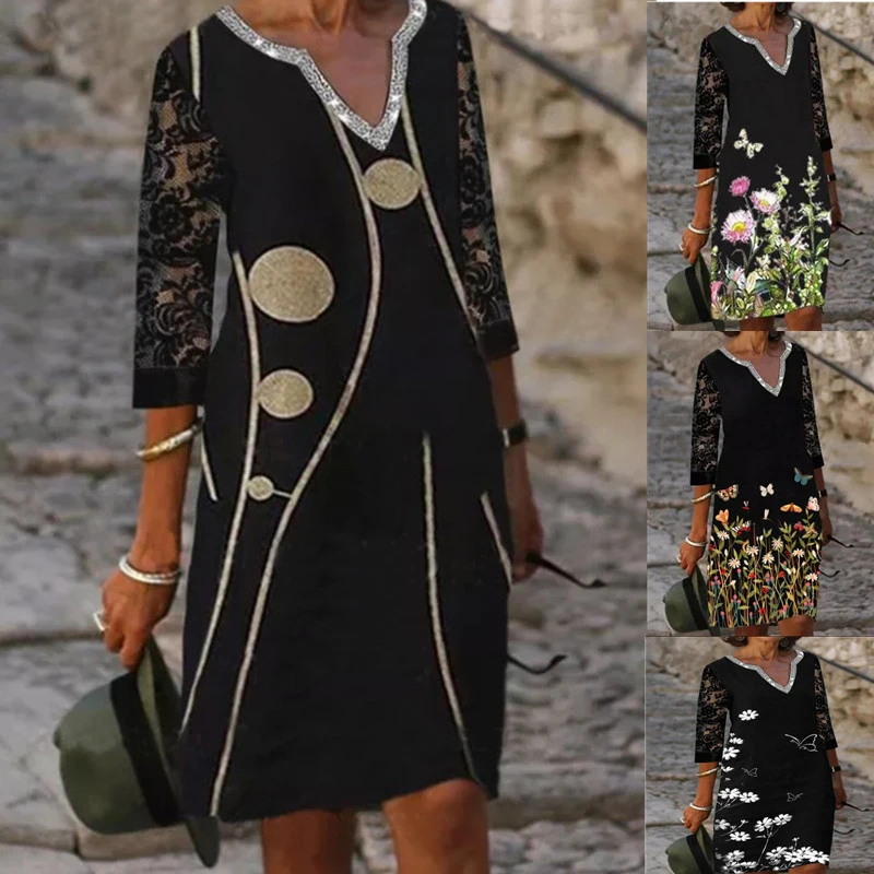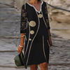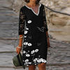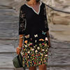 Retro Pattern Print Women Dress New Sexy V Neck Lace Long-sleeved Lady Party Dresses Elegant Casual Loose Mini Dress Vestido