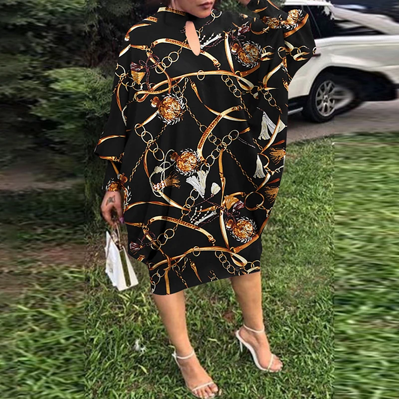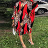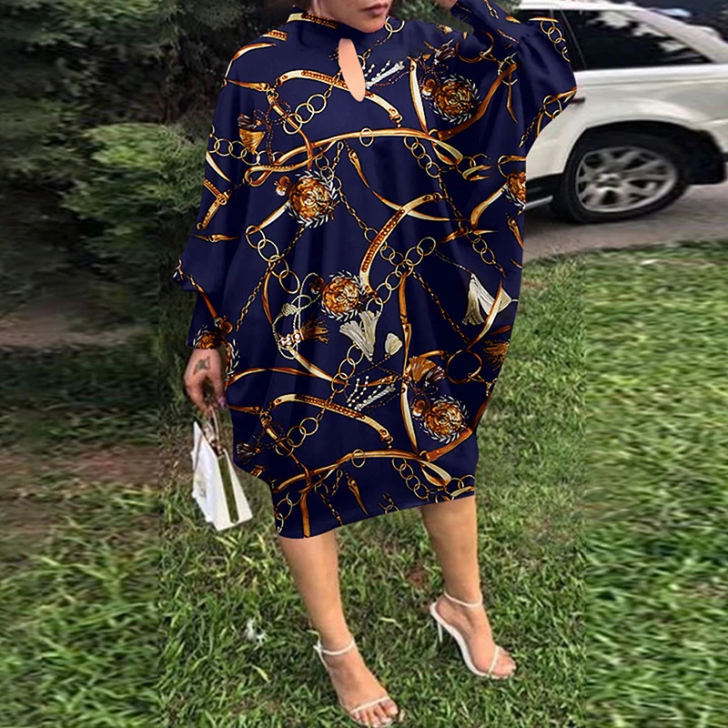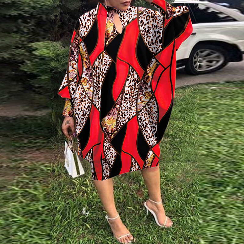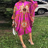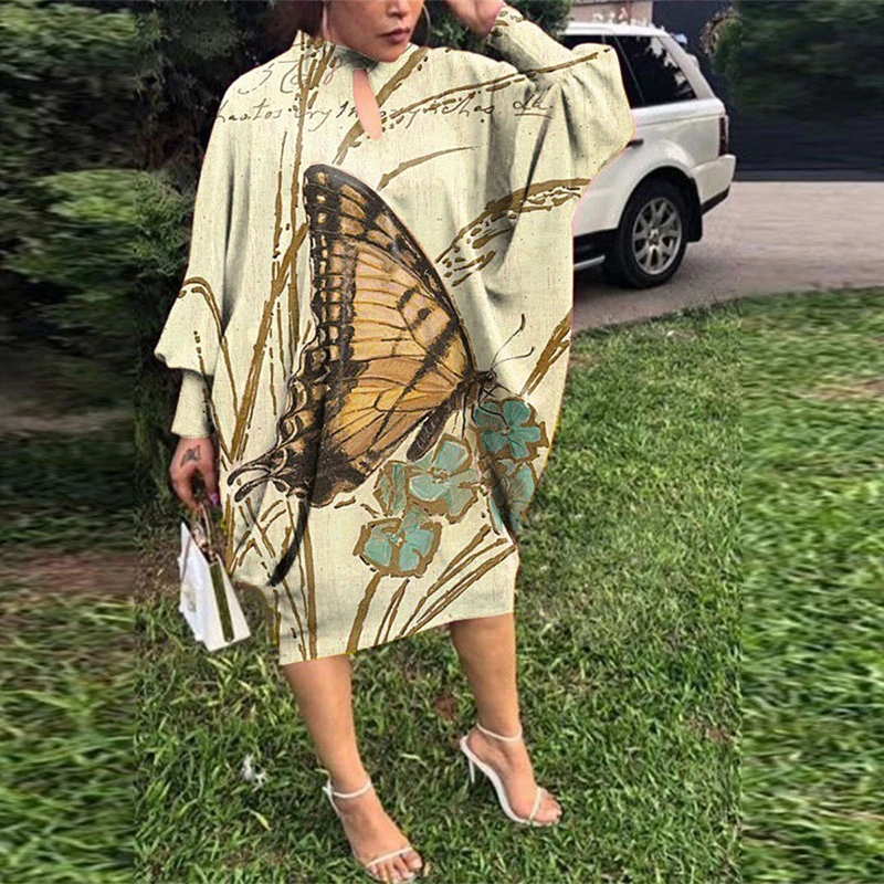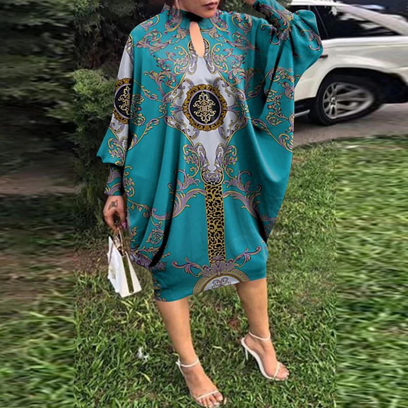 Retro Women Printing Batwing Sleeve Midi Dress Spring Autumn Fashion O-neck Loose BoHemian Dress Ladies Casual Holiday Vestidos