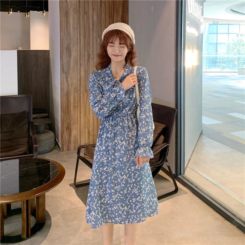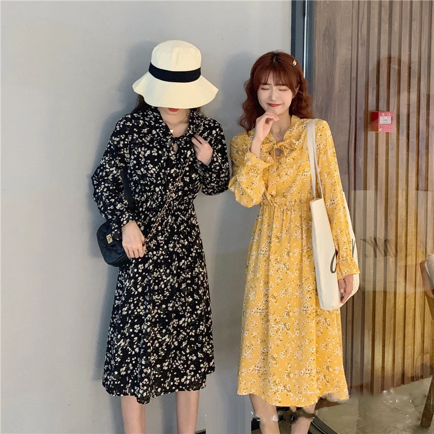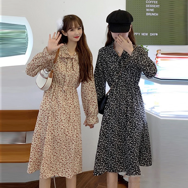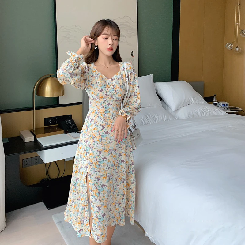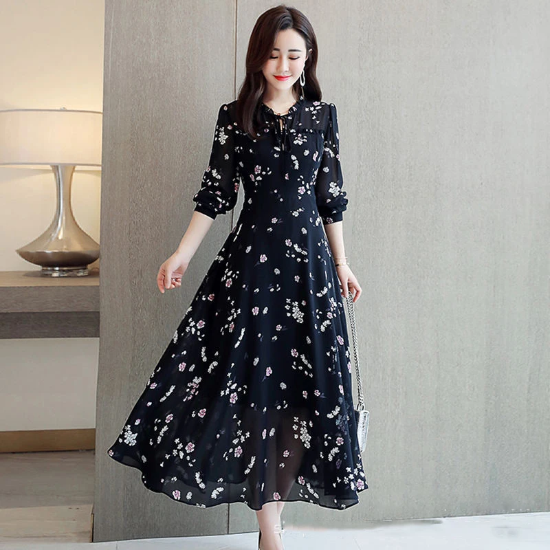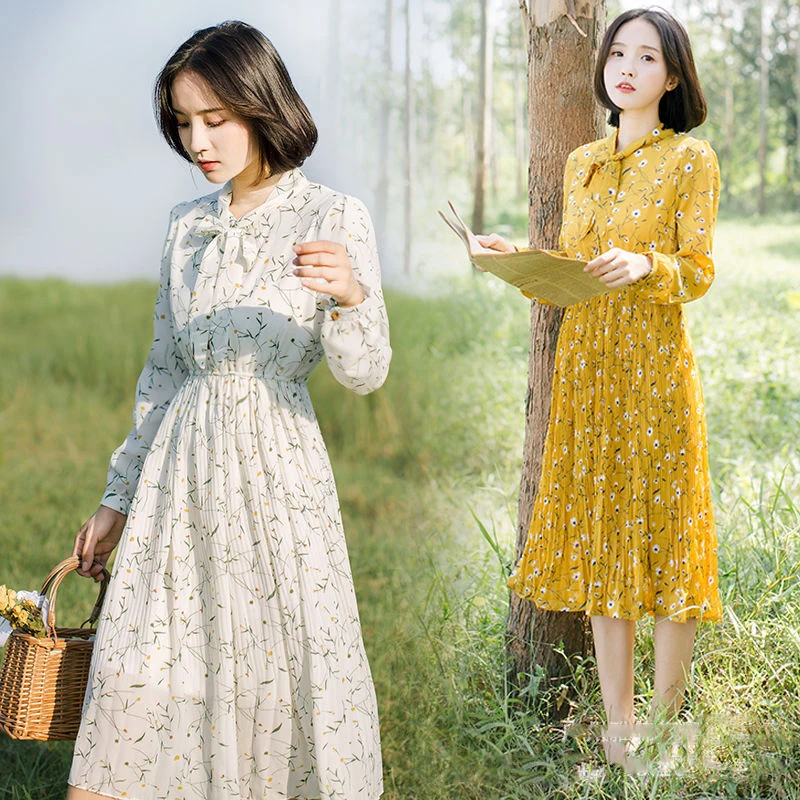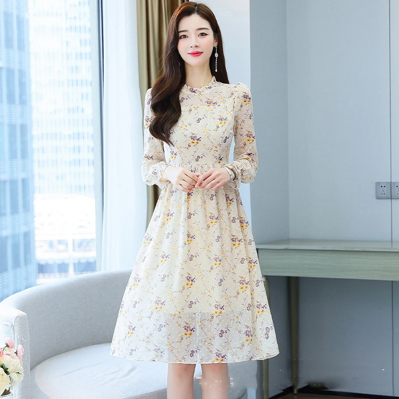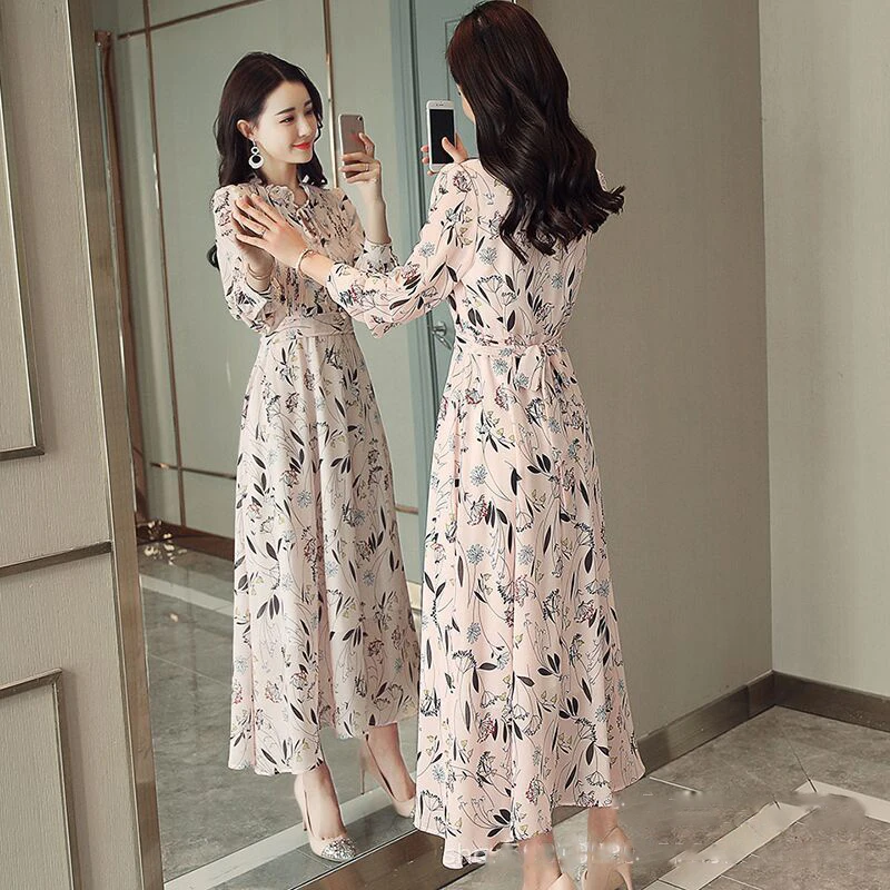 Retro Women Printing Boho Beach Dress Spring Autumn Fashion Long Sleeve Ruffled A-line Party Dress Elegant Ladies Midi Vestidos
