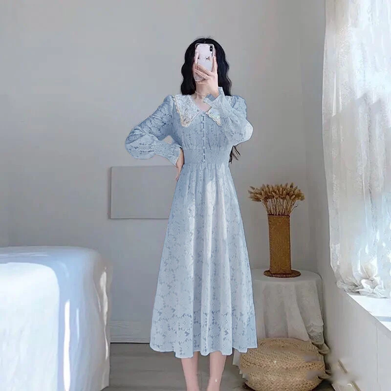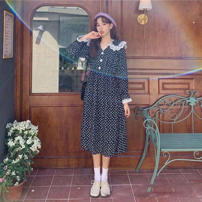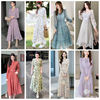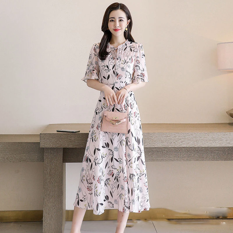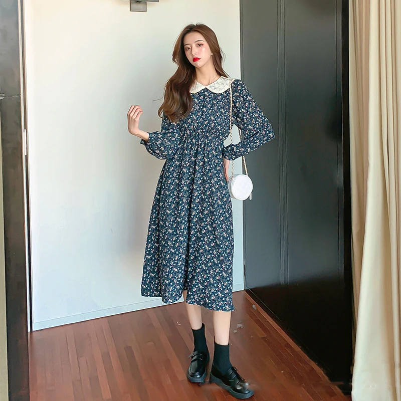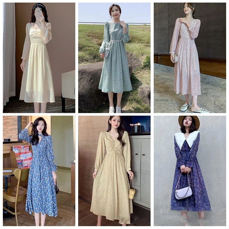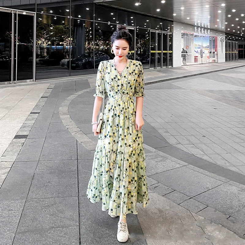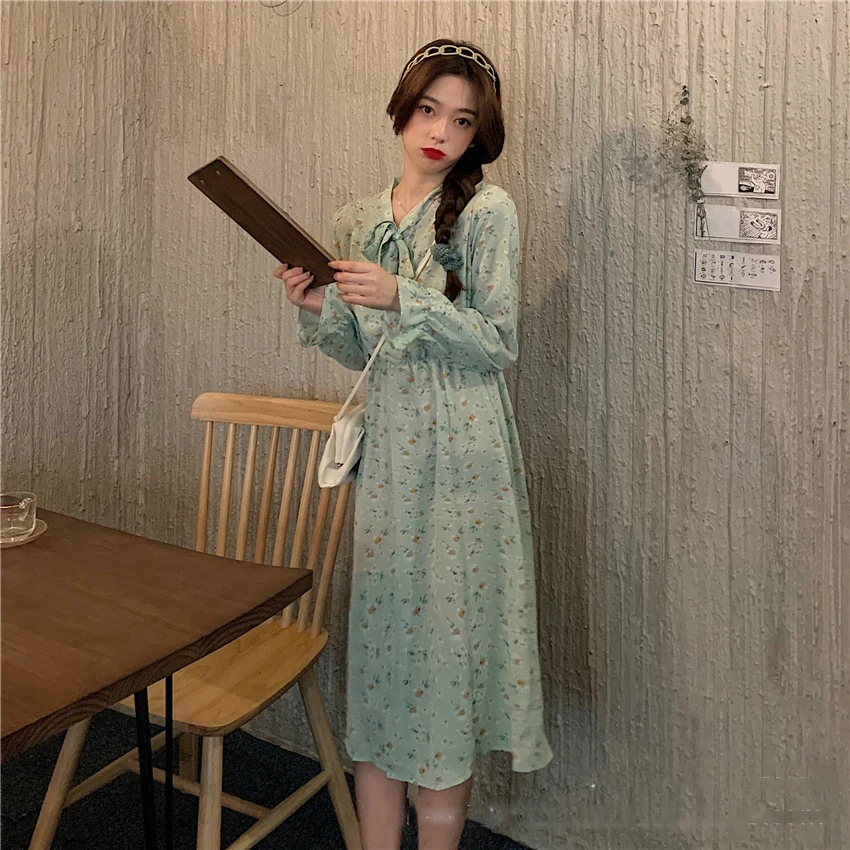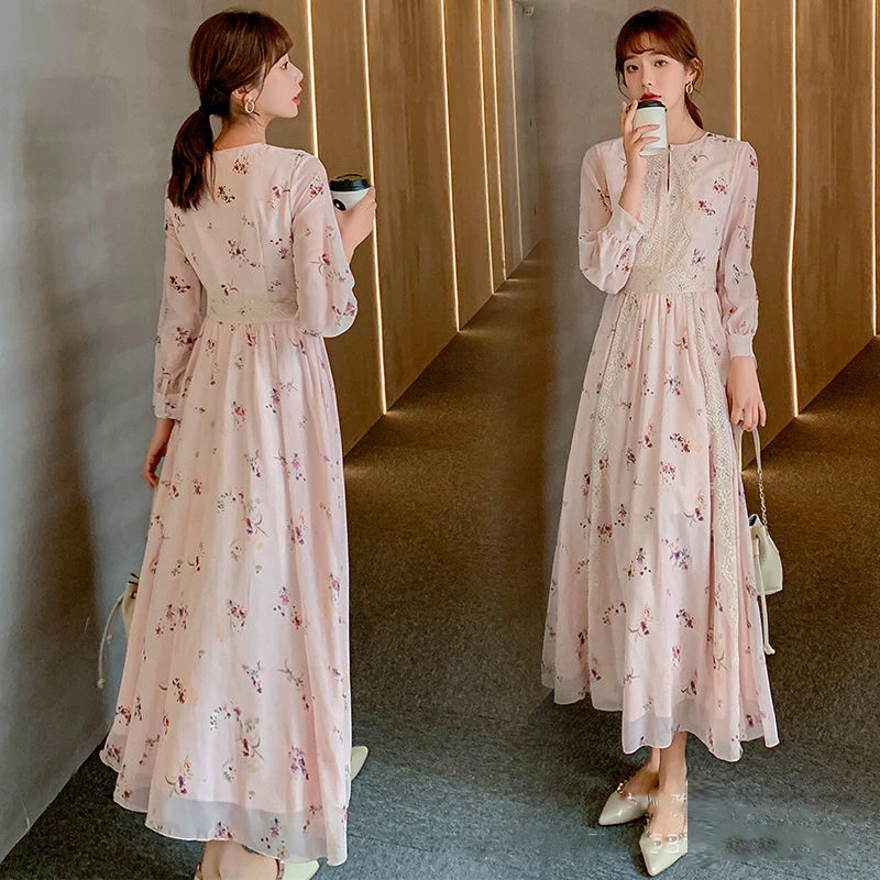 Retro Women Printing Boho Beach Dress Spring Autumn Fashion Long Sleeve Ruffled A-line Party Dress Elegant Ladies Midi Vestidos