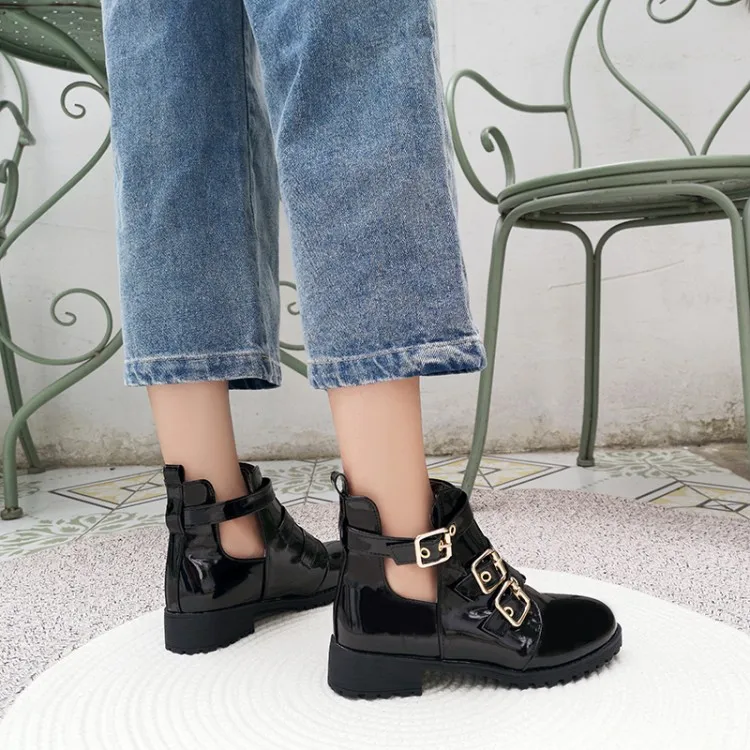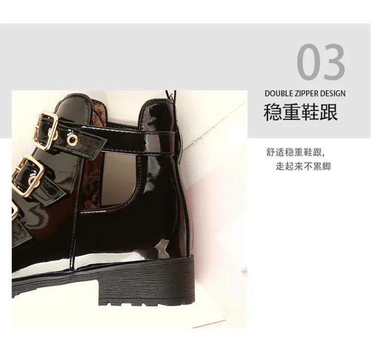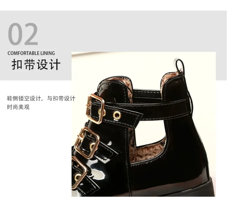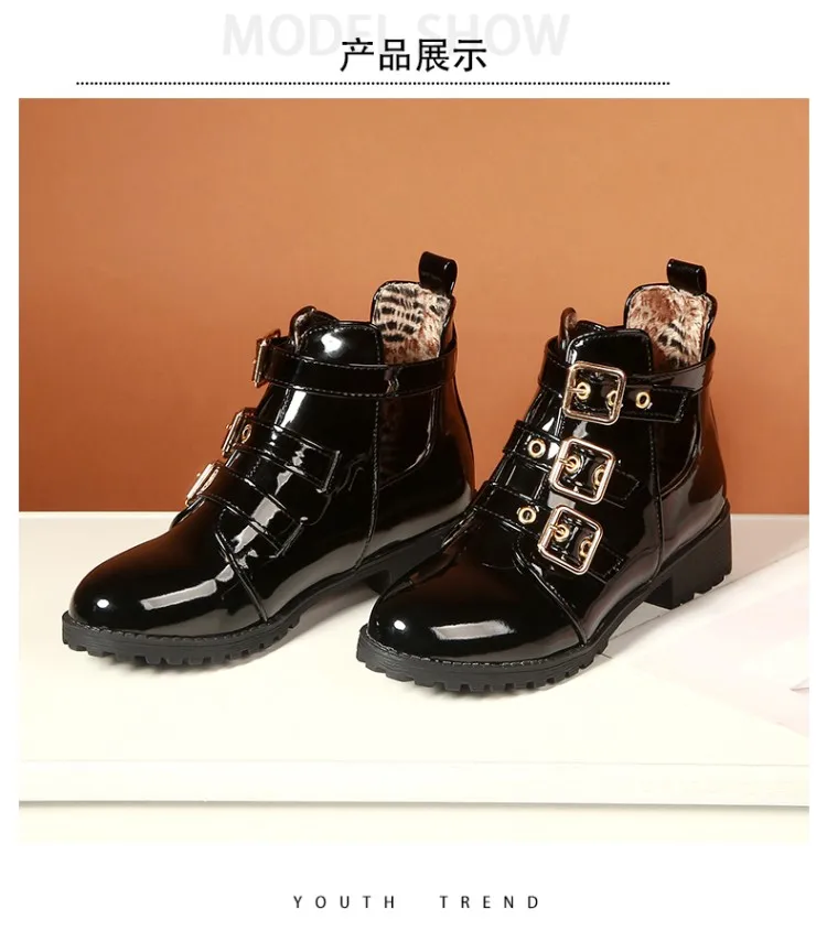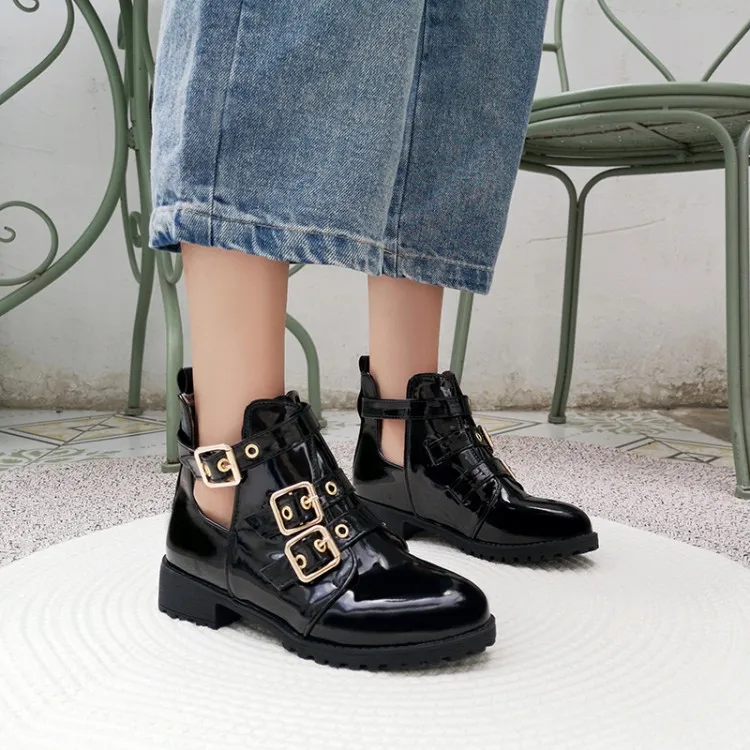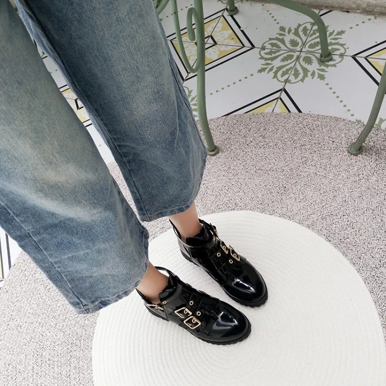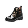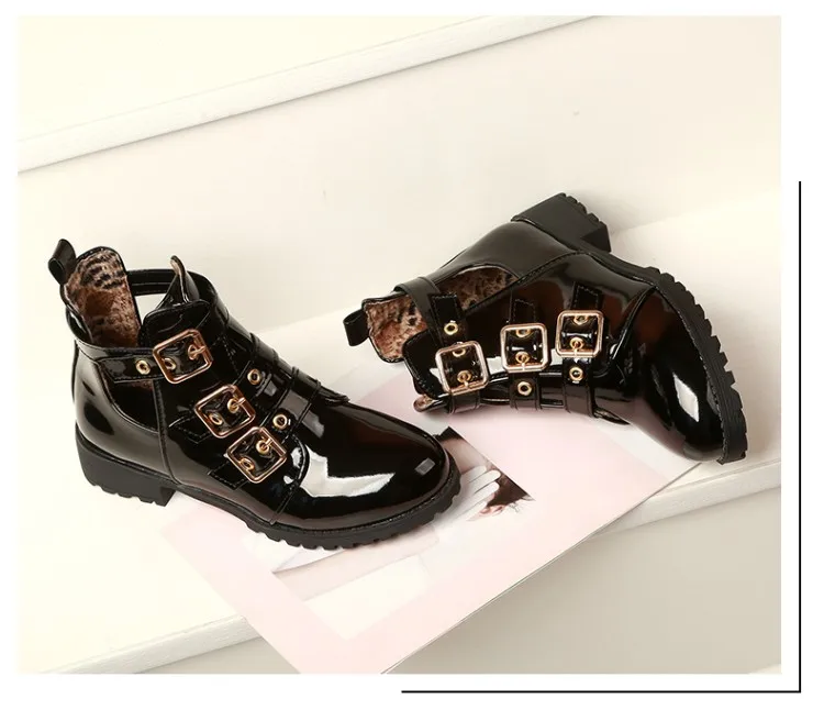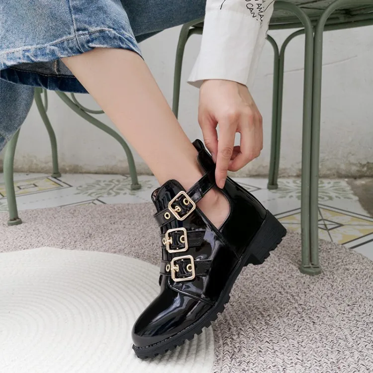 Rivets Faux Leather Booties Buckle Straps Thick Heel Black Ankle Women Boots Studded Decorated Woman Boots Motorcycle
