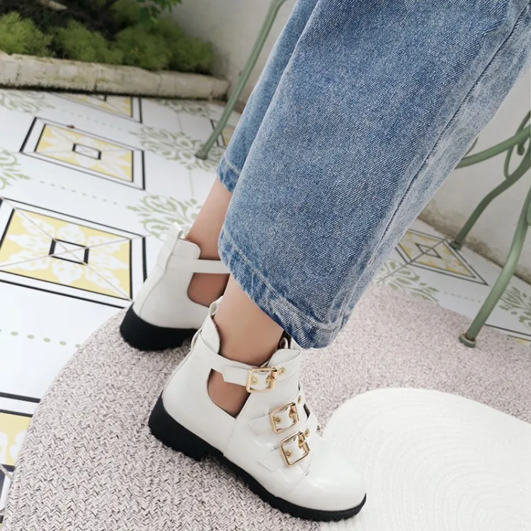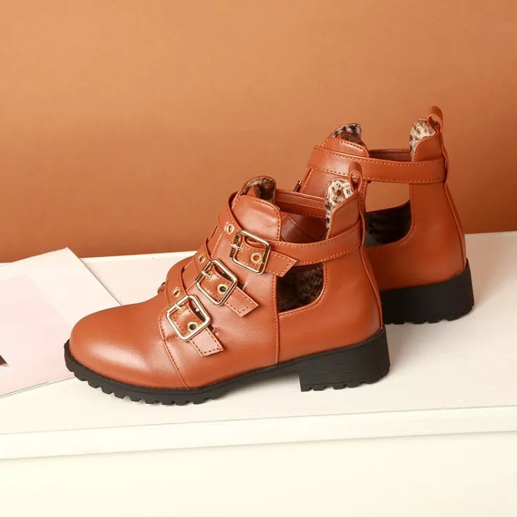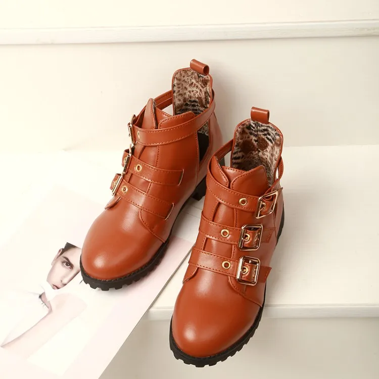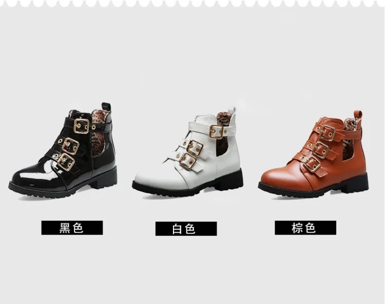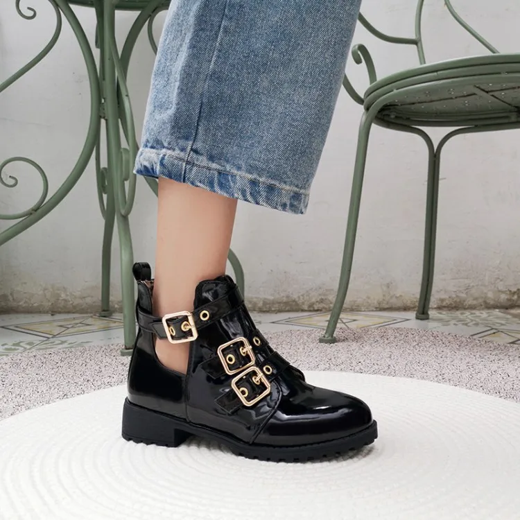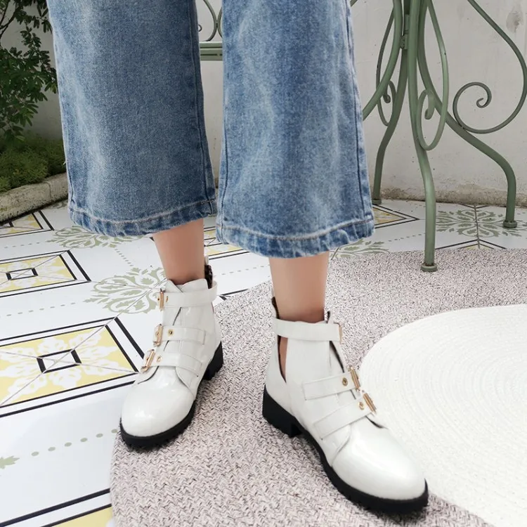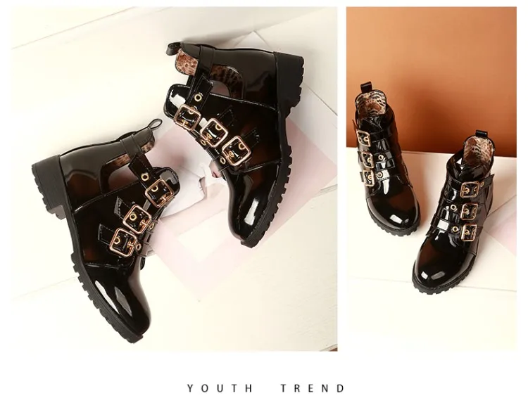 Rivets Faux Leather Booties Buckle Straps Thick Heel Black Ankle Women Boots Studded Decorated Woman Boots Motorcycle