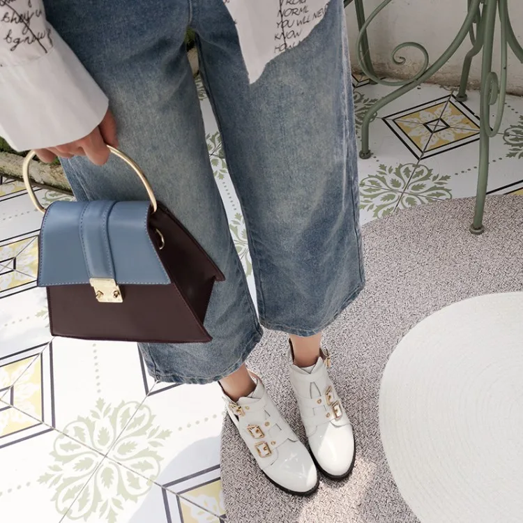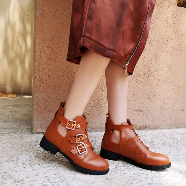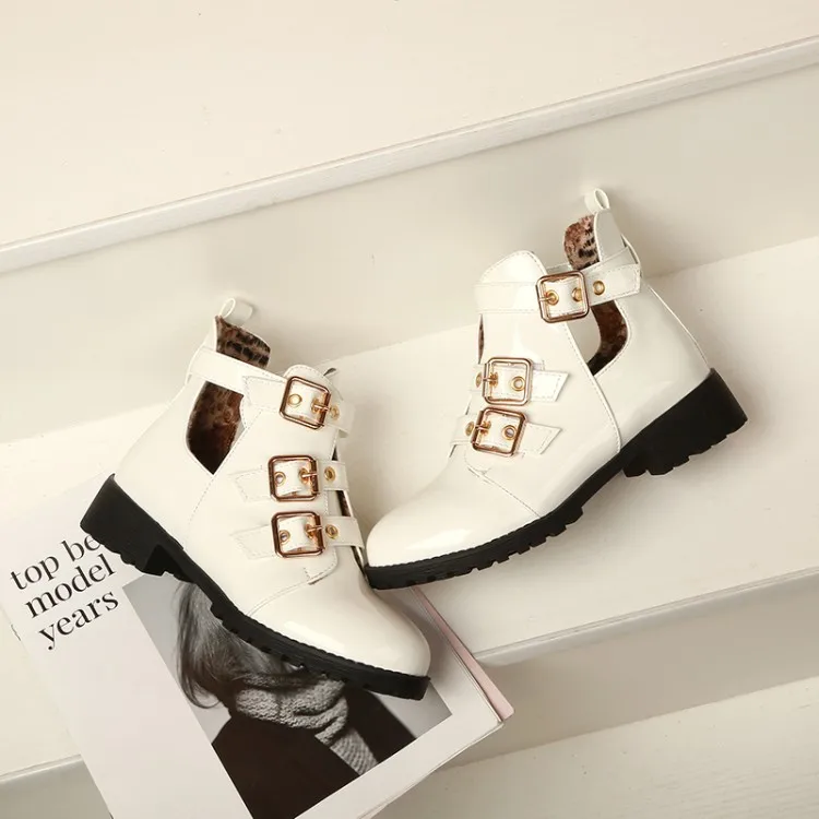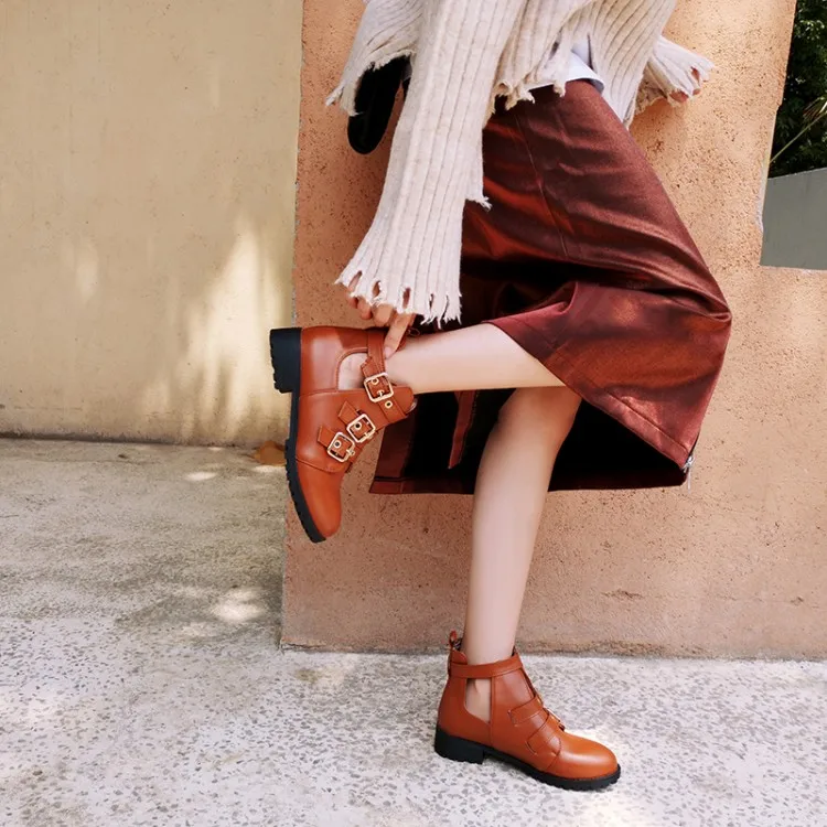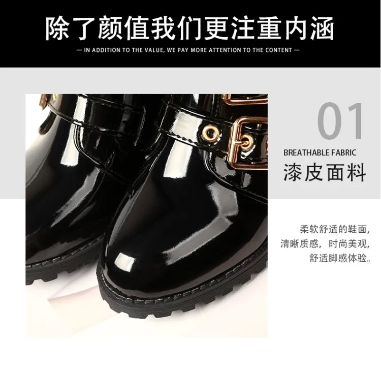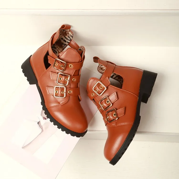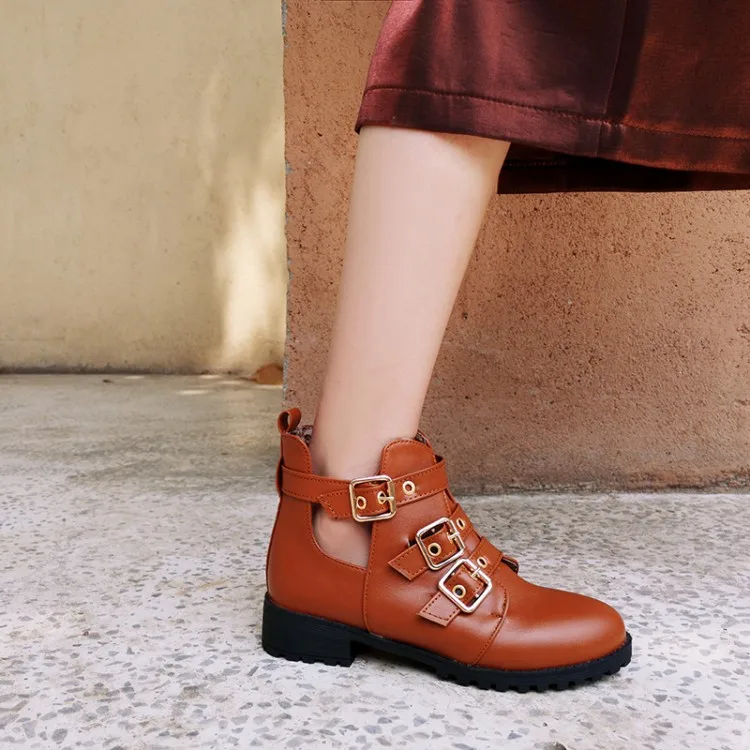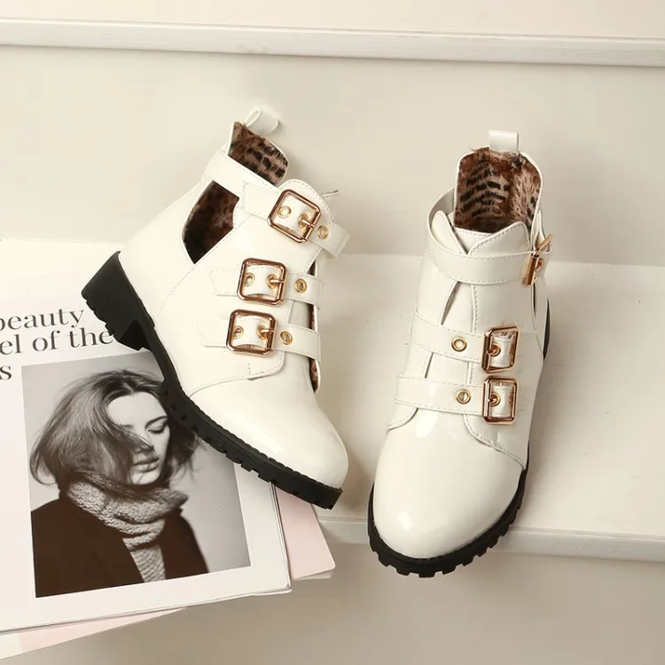 Rivets Faux Leather Booties Buckle Straps Thick Heel Black Ankle Women Boots Studded Decorated Woman Boots Motorcycle