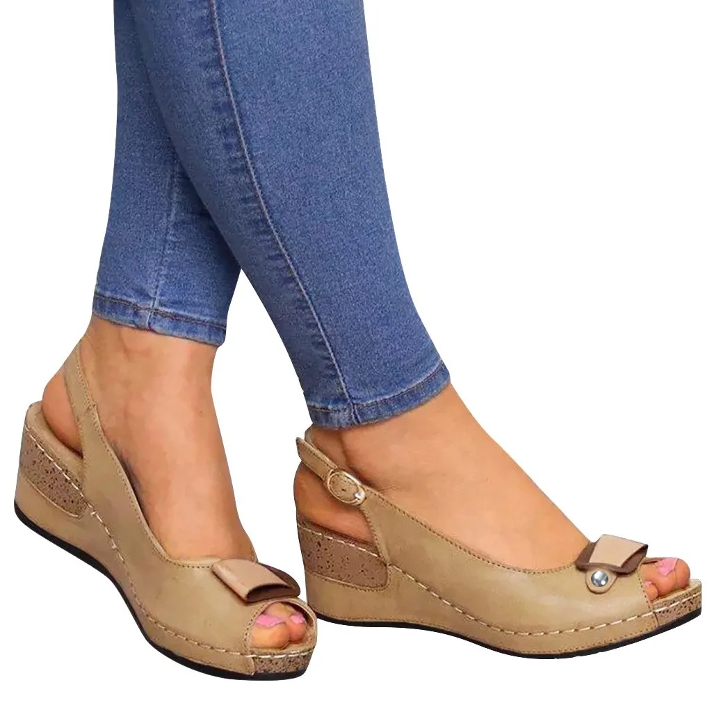 Rome Casual Sandals Women Wedges Sandals Pumps Ankle Buckle Open Toe Fish Mouth Med Summer Women Shoes Fashion Wedges Shoes