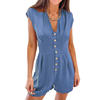 Rompers Womens Jumpsuit Front Button Sleeveless Sexy V-neck Bodysuit Slim Fit Playsuits Overalls For Women Combinaison Femme Été