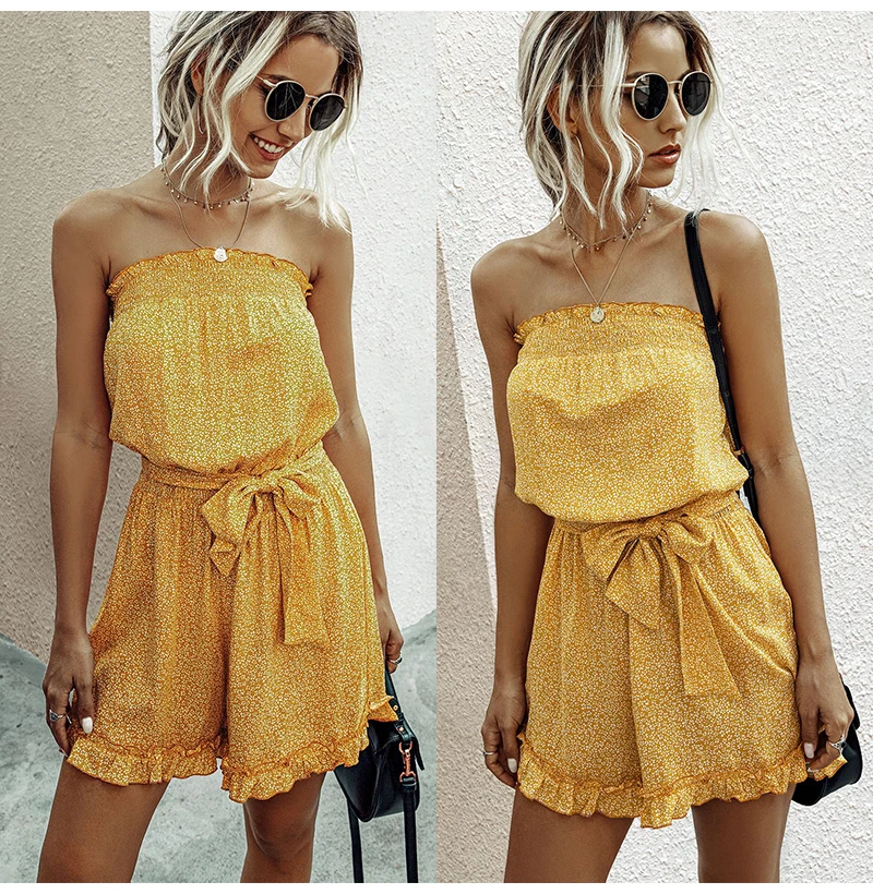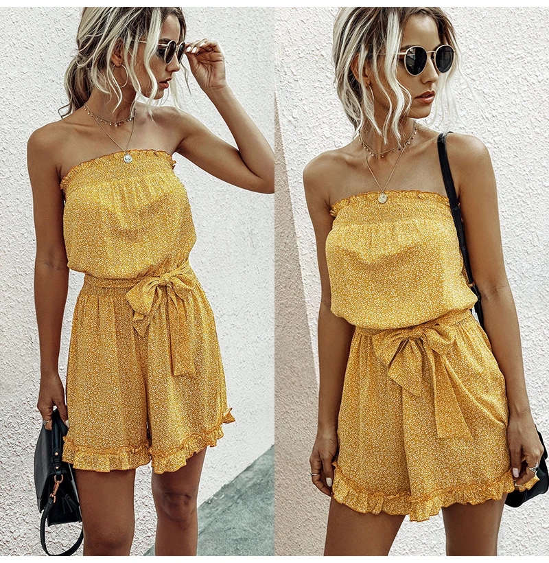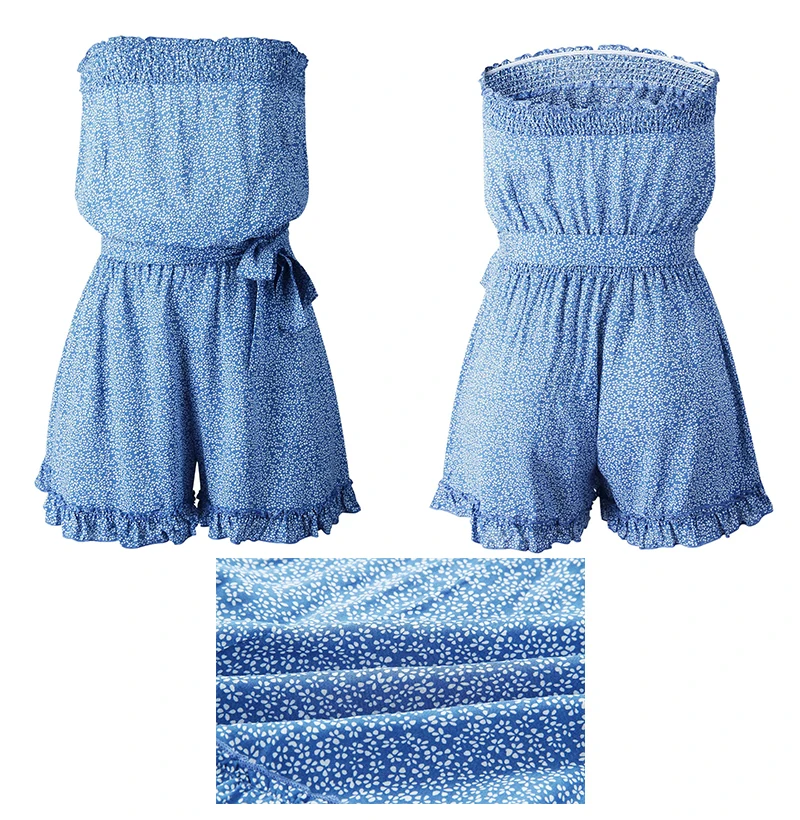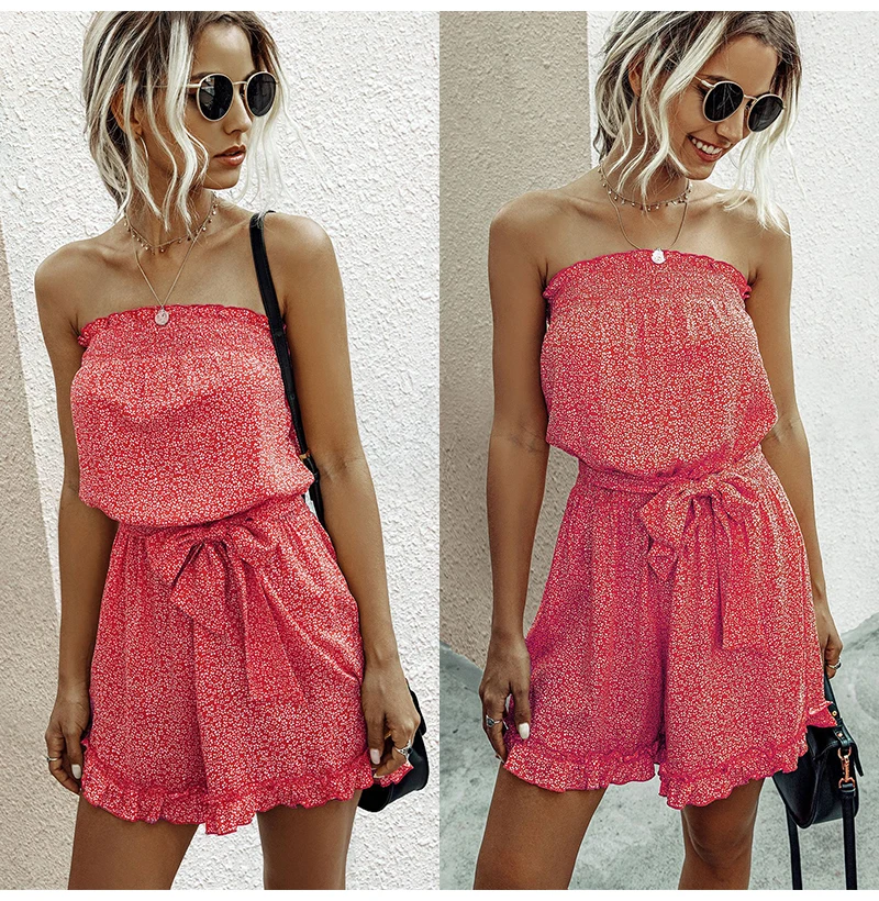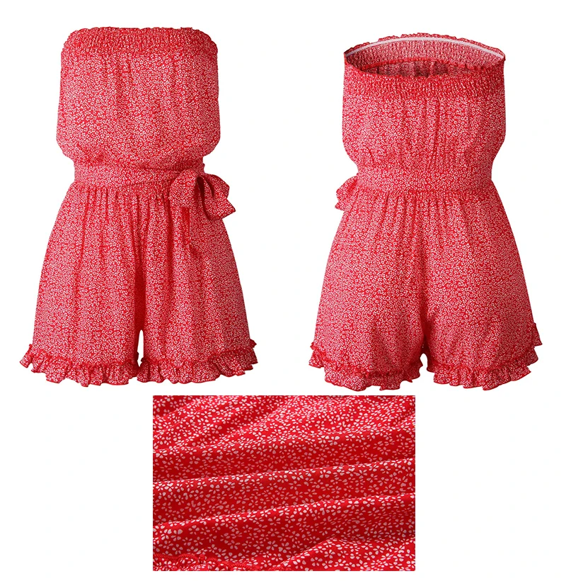 Rompers Womens Jumpsuit Red Summer Floral Off The Shoulder Sexy Backless Tube Clothing Women Blue Wide Leg Playsuit 2020 Fashion