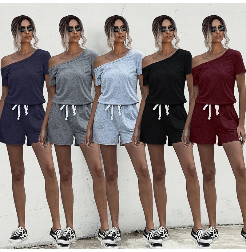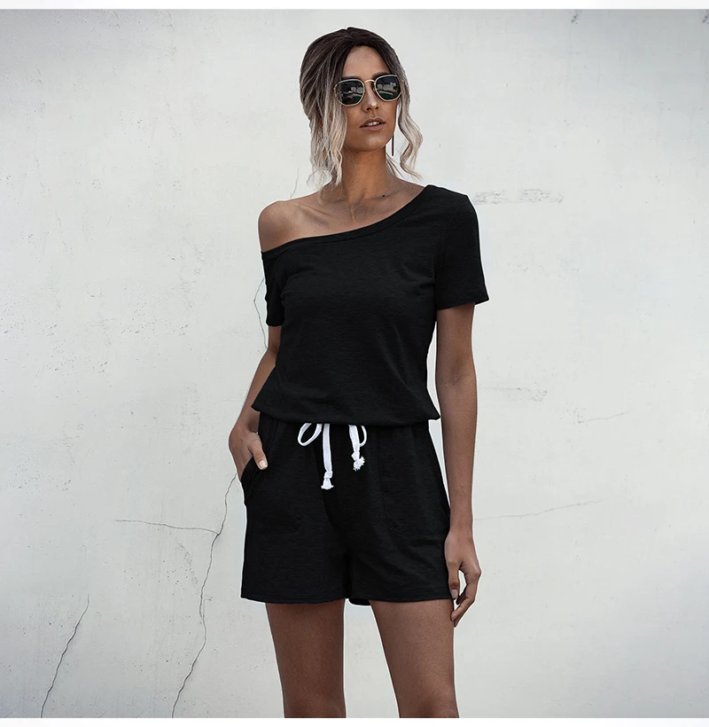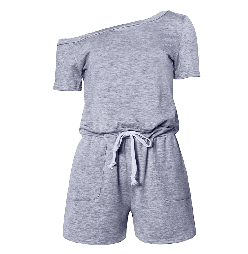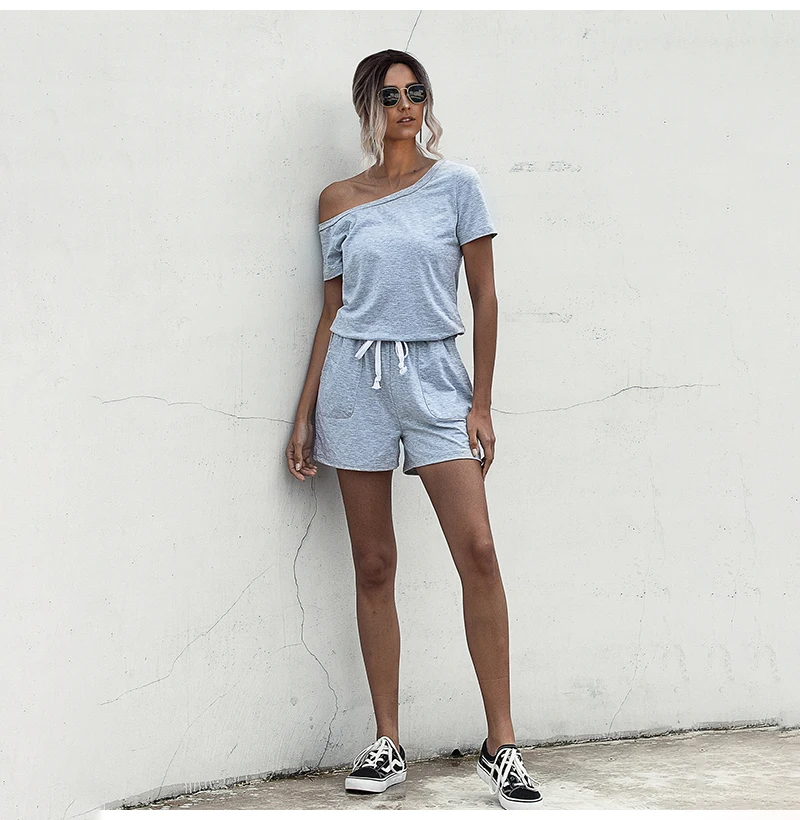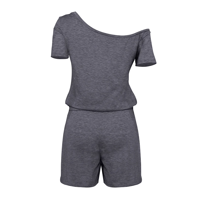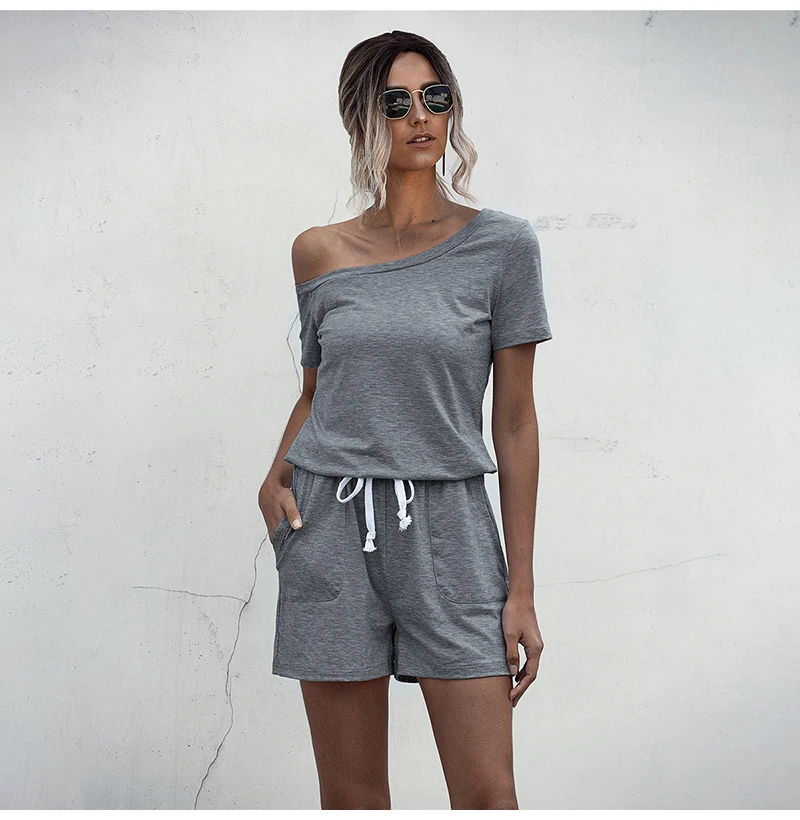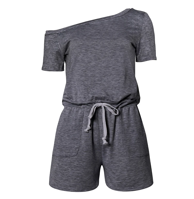 Rompers Womens Jumpsuit Summer Black Backless Playsuits Casual Short Sleeve Pocket One Piece Clothes Grey 2020 Outfit For Women