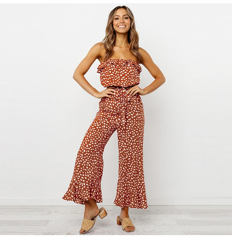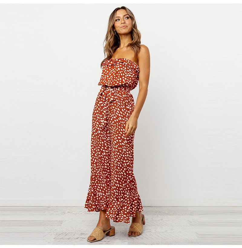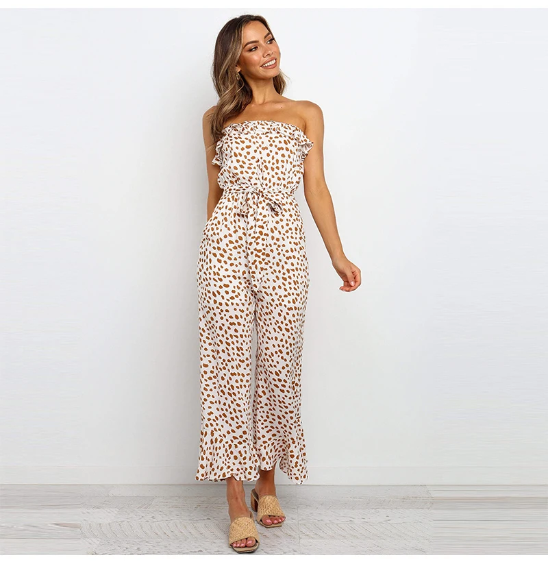 Rompers Womens Jumpsuit Summer Casual Ladies Leopard Strapless Backless White Jumpsuits One Piece Women Outfit Clothes Belt 2020