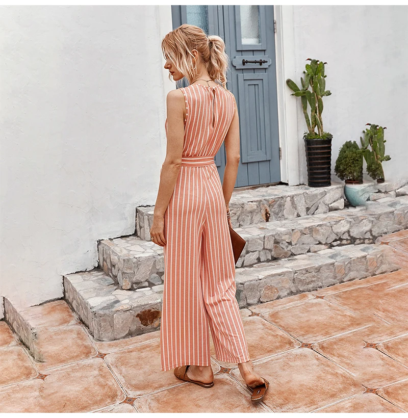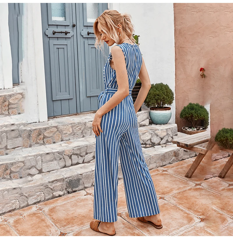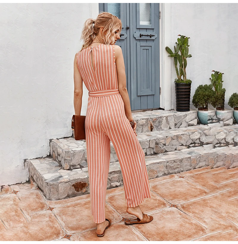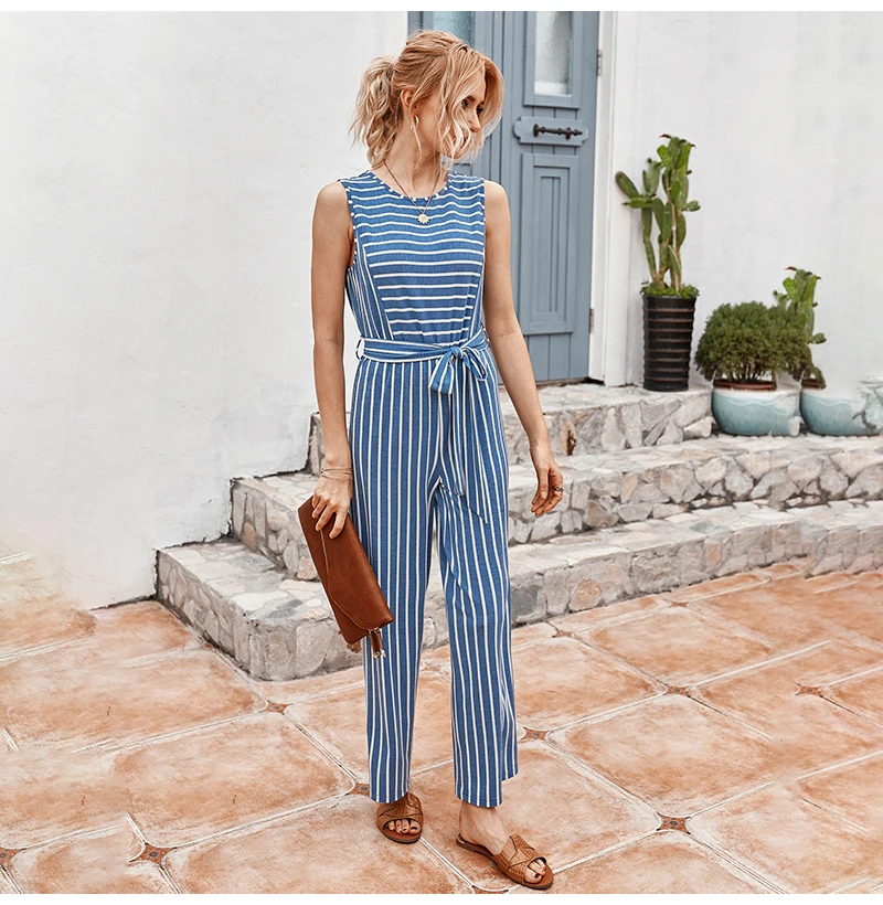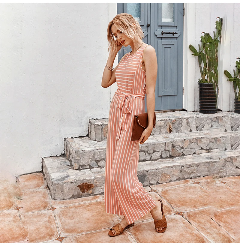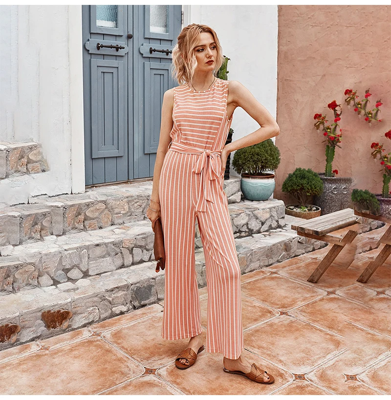 Rompers Womens Jumpsuit Summer Striped Tank Casual Pink Wide Leg One Piece Matching Outfits Women Clothes Belt 2020 Fashion Blue