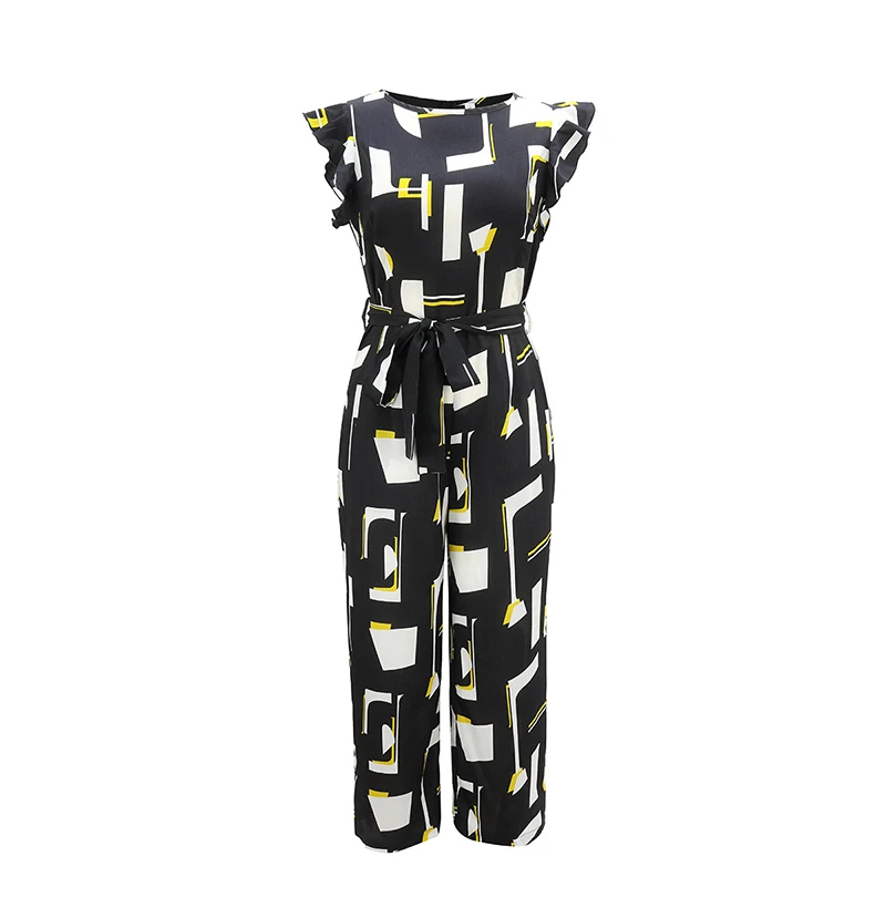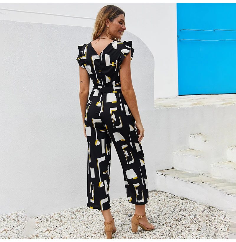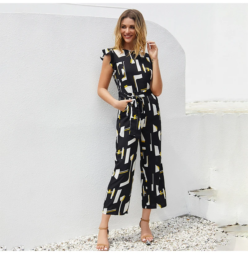 Rompers Womens Jumpsuits Summer Printed Tank Clothes Pockets Zip Up Black One Piece Outfits Womens Wide Leg Suits 2020 Fashion