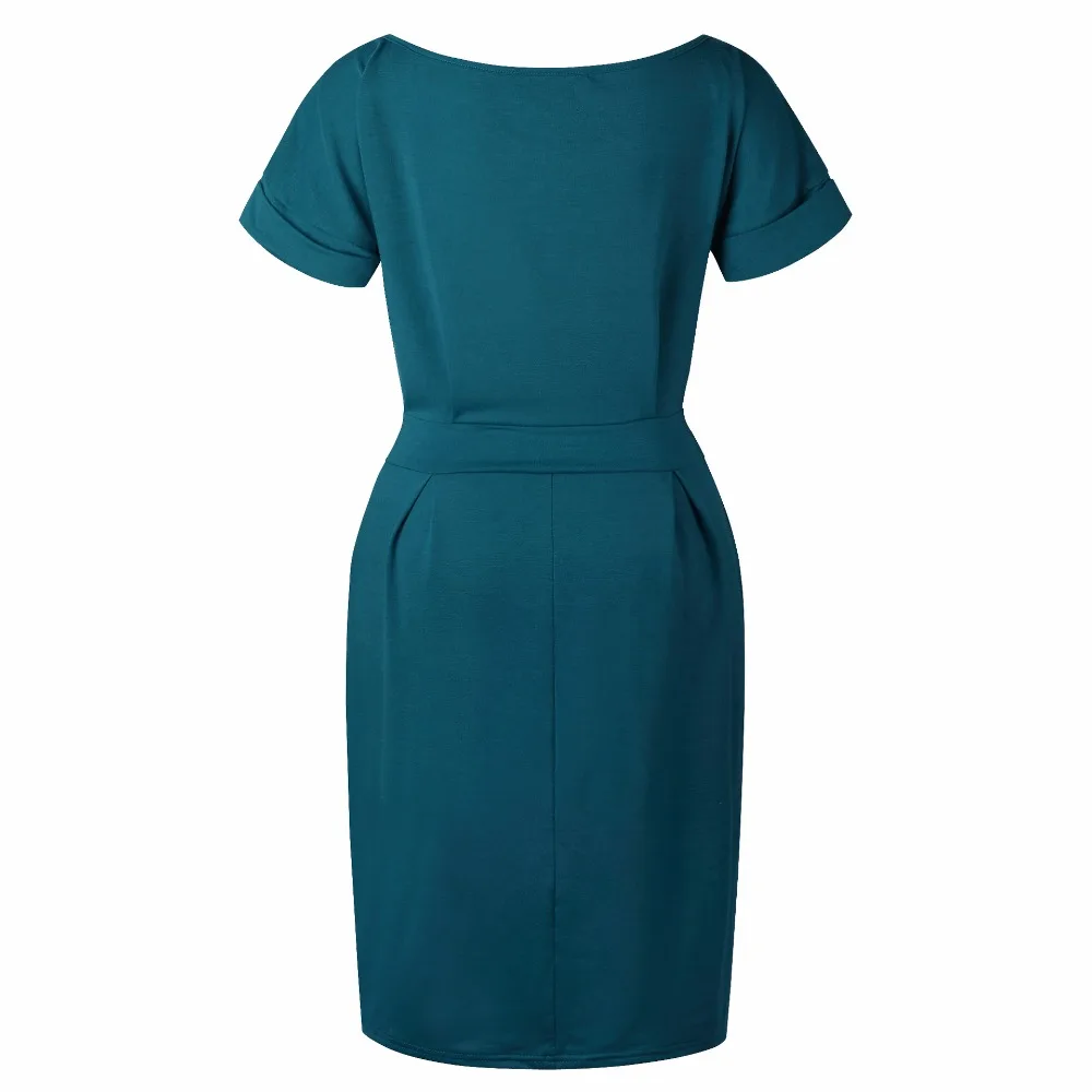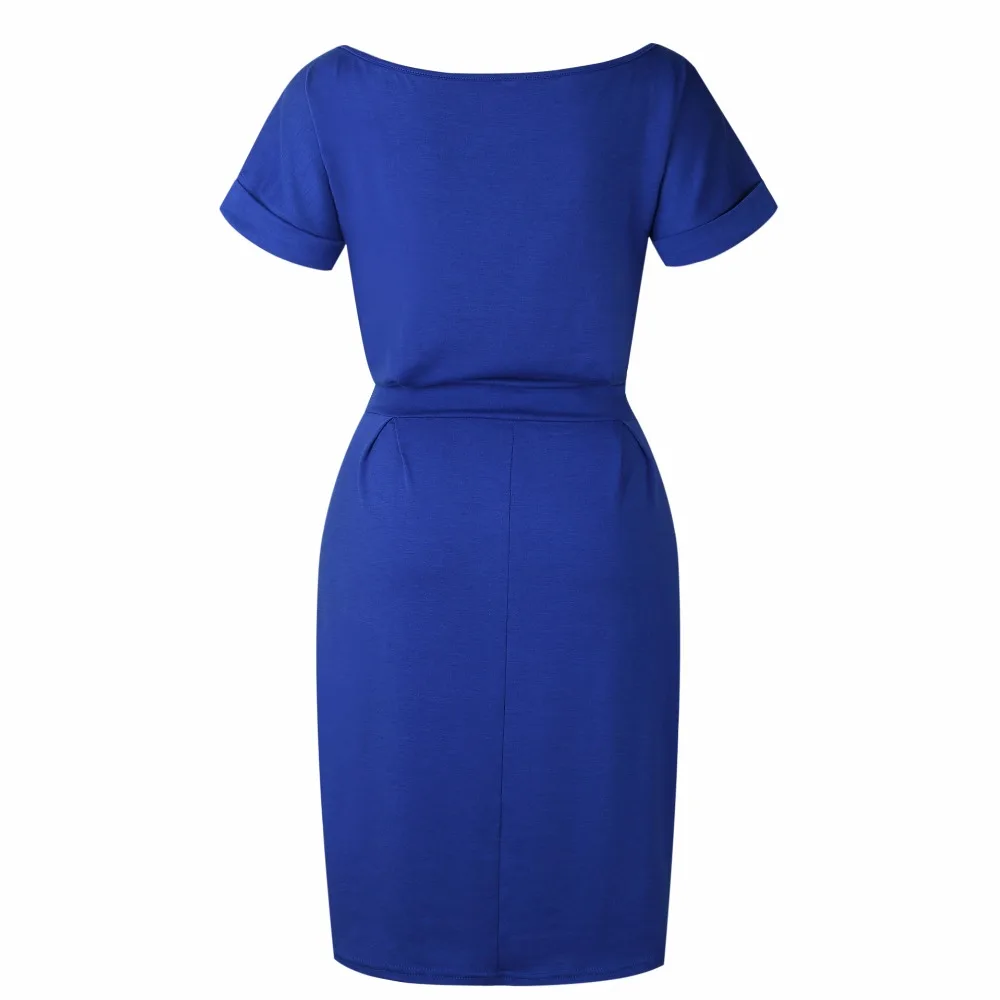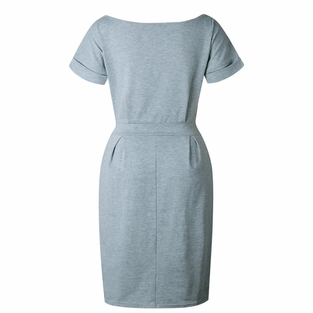 S-New ETSTWENDY Summer 2019 Casual Women Dress Fashion O-neck Short Sleeve Lace-up Pleated Dress Slim Lady Office Dress Vestidos