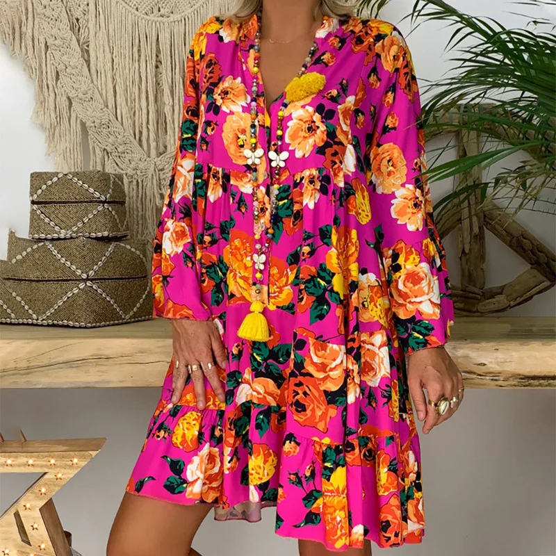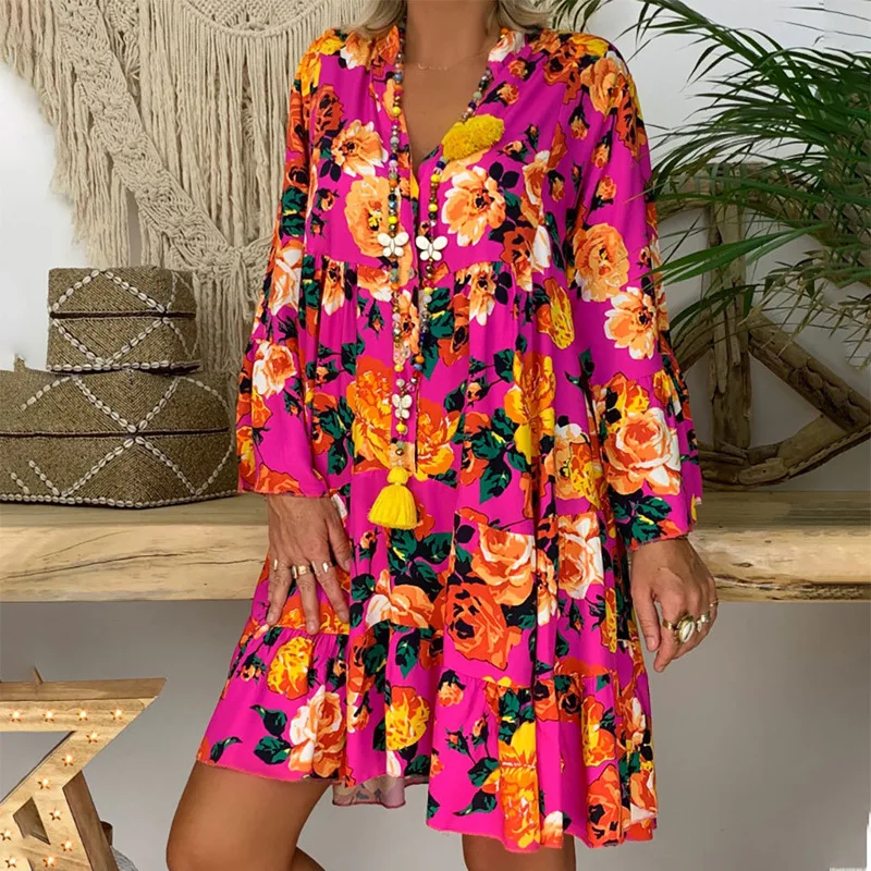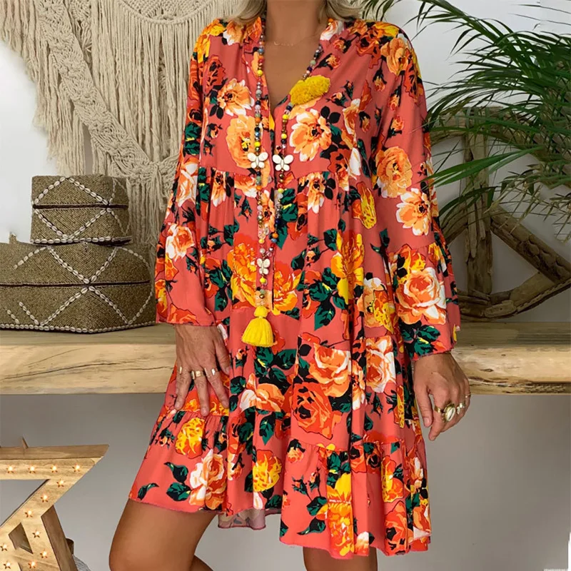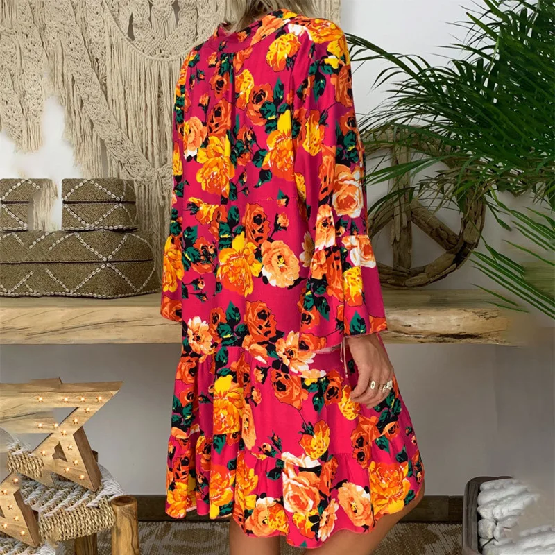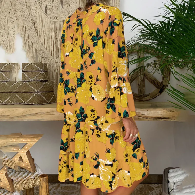 S-New Fashion Printed ETSTWENDY Women Dresses Summer 2020 Long Sleeve Button Loose Mini Dress Big Swing Boho Dress Women Vestido