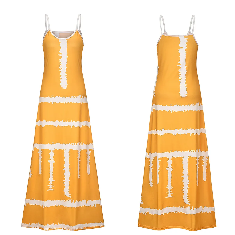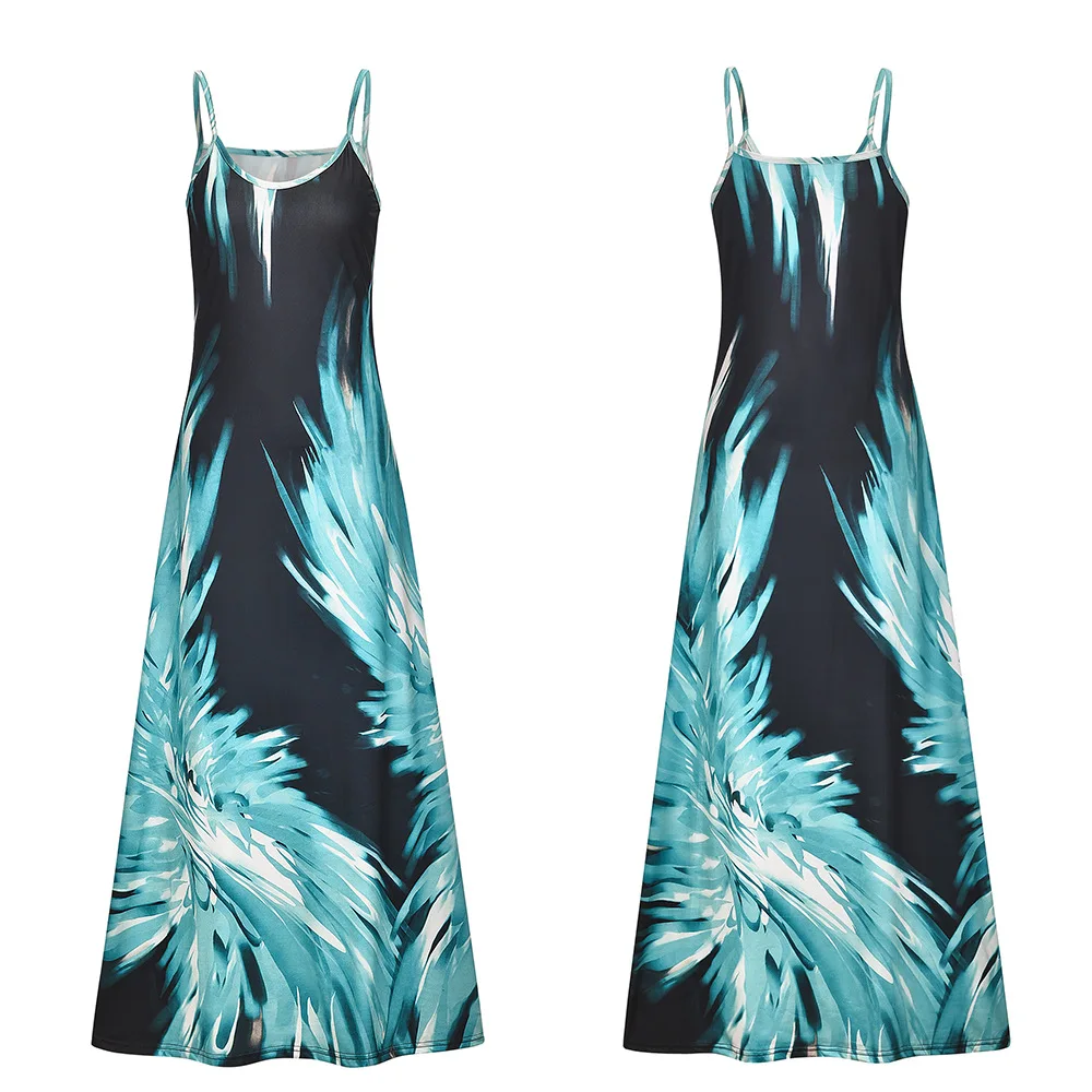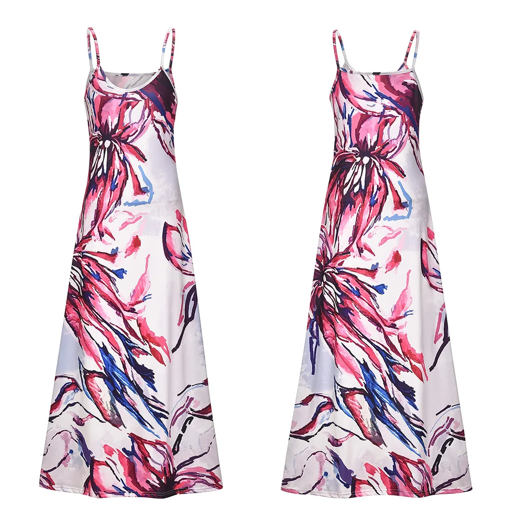 S-New Floral Printed Sexy Women Robe Long Boho Dresses Summer Sleeveless V-neck Loose Maxi Dress Streetwear Women Tank Dress