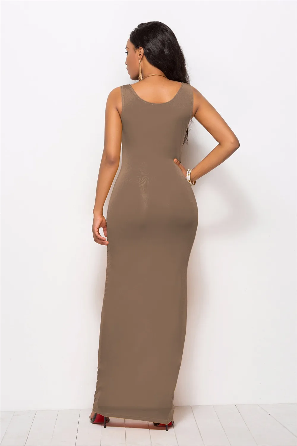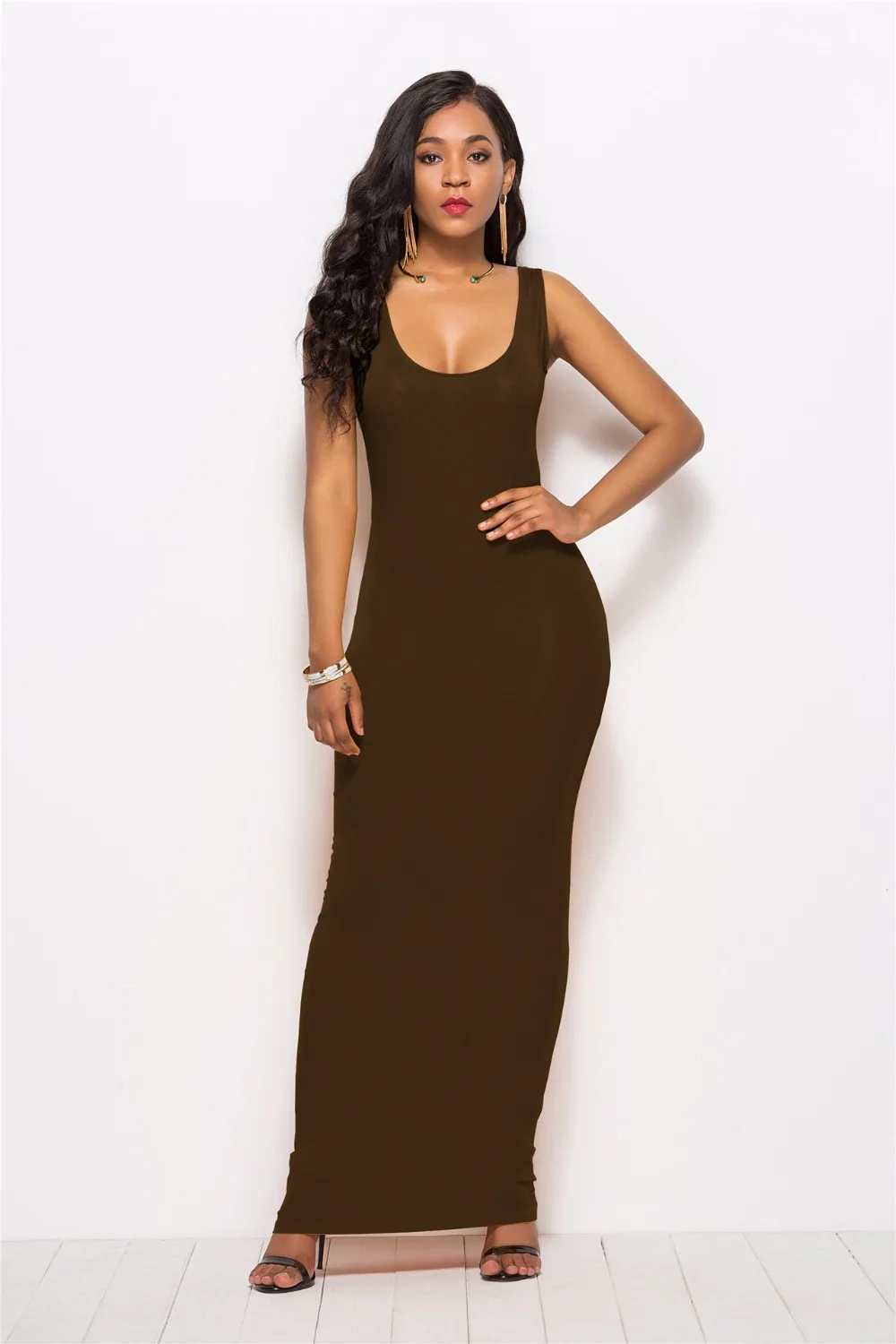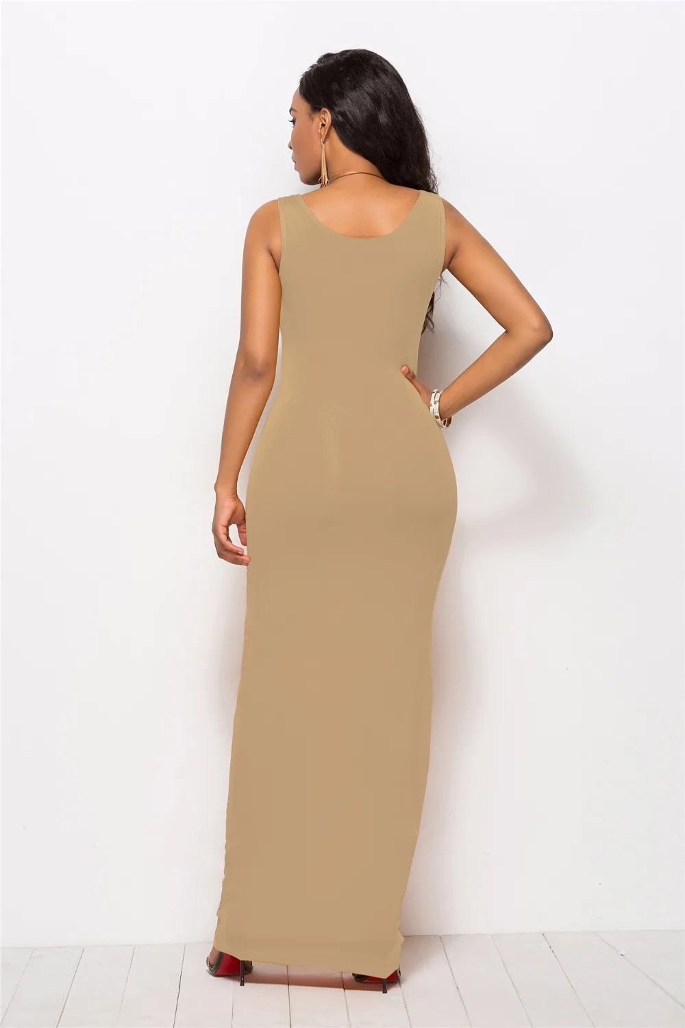 S-New High Stretch Tank Robe Spring Summer 2019 Casual Women Sexy Dress O-neck Sleeveless Maxi Dress Thin Fashion Summer Dress
