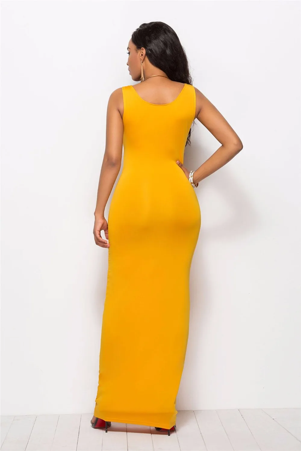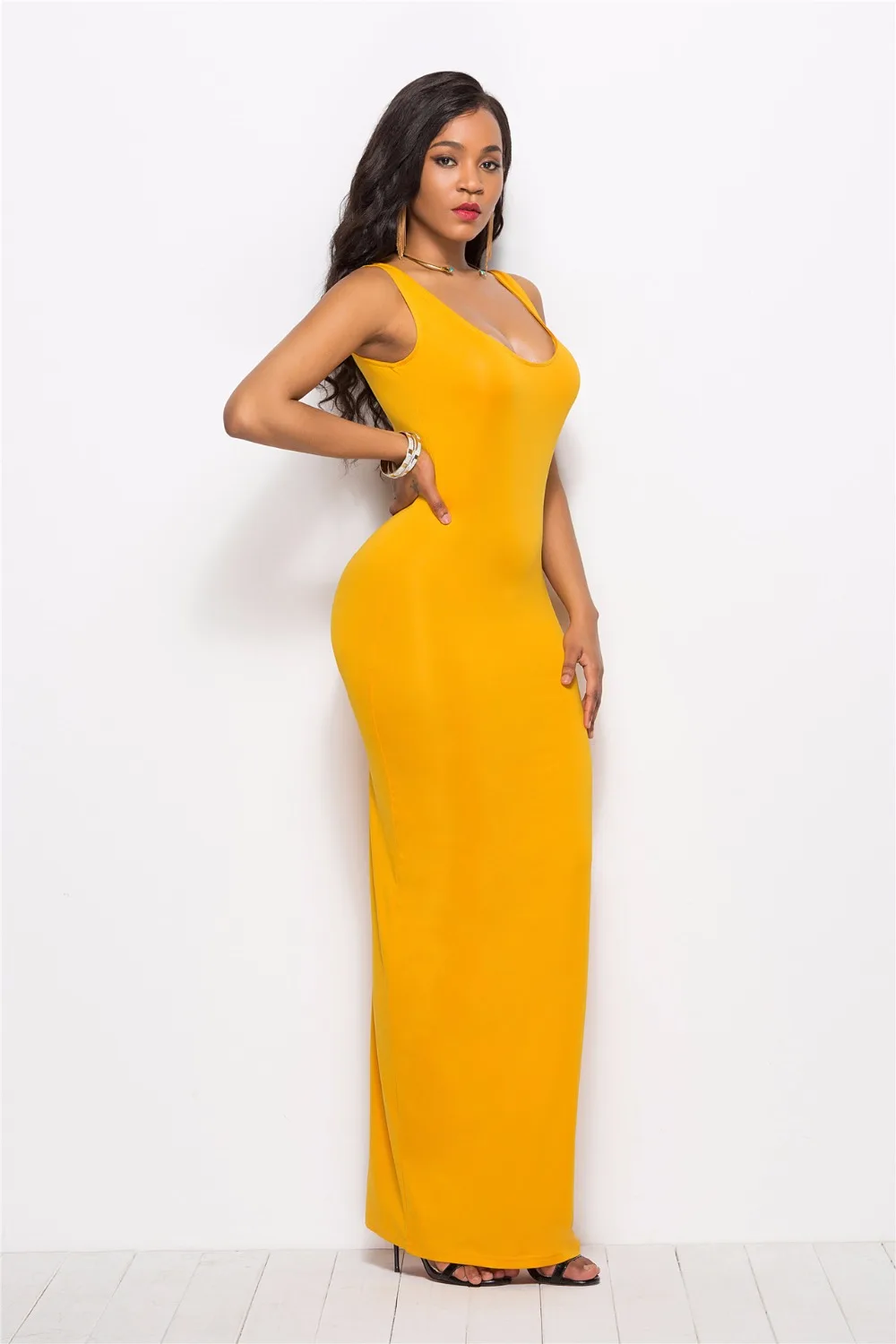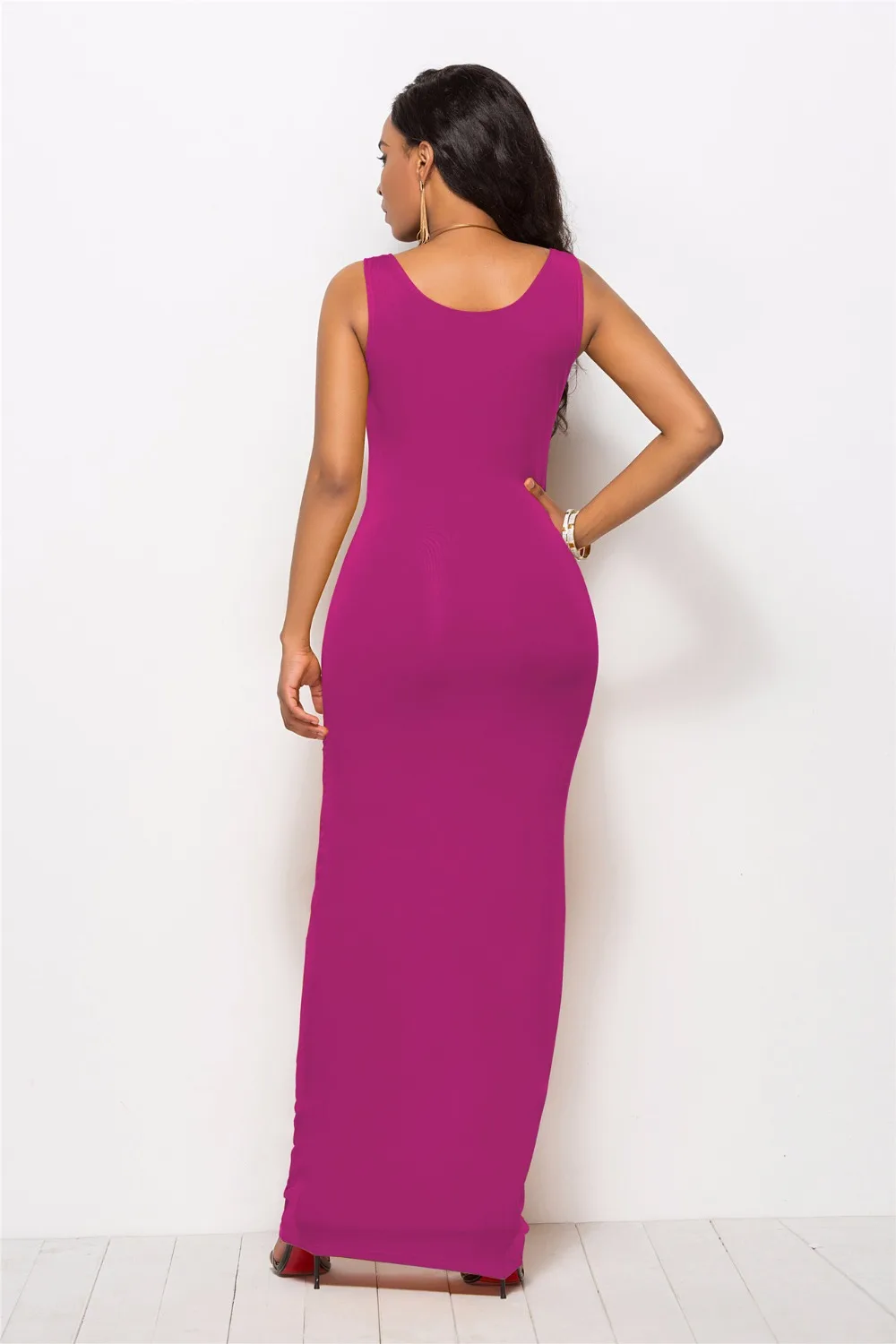 S-New High Stretch Tank Robe Spring Summer 2019 Casual Women Sexy Dress O-neck Sleeveless Maxi Dress Thin Fashion Summer Dress