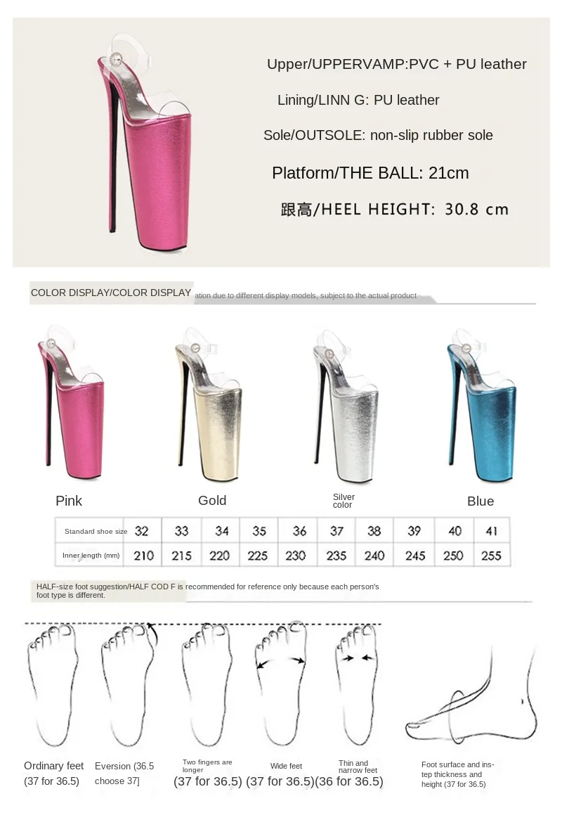 sandalias mujer 2021 Sexy Women platform Sandals 30.8cmHigh Heels Open Toe Buckles Nightclub Party Shoes Black Big Size 50 21-8