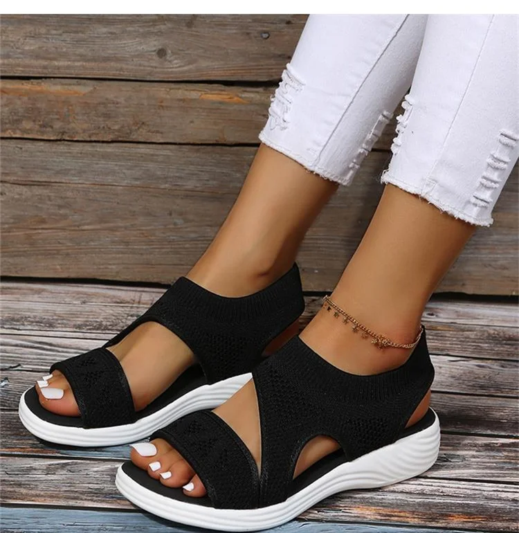 Sandals 2022 Summer Women Shoe Peep Toe Breathable Mesh Shoes Casual Sandals Ladies Solid Color Wedge Shoes Sexy Plus Size shoes