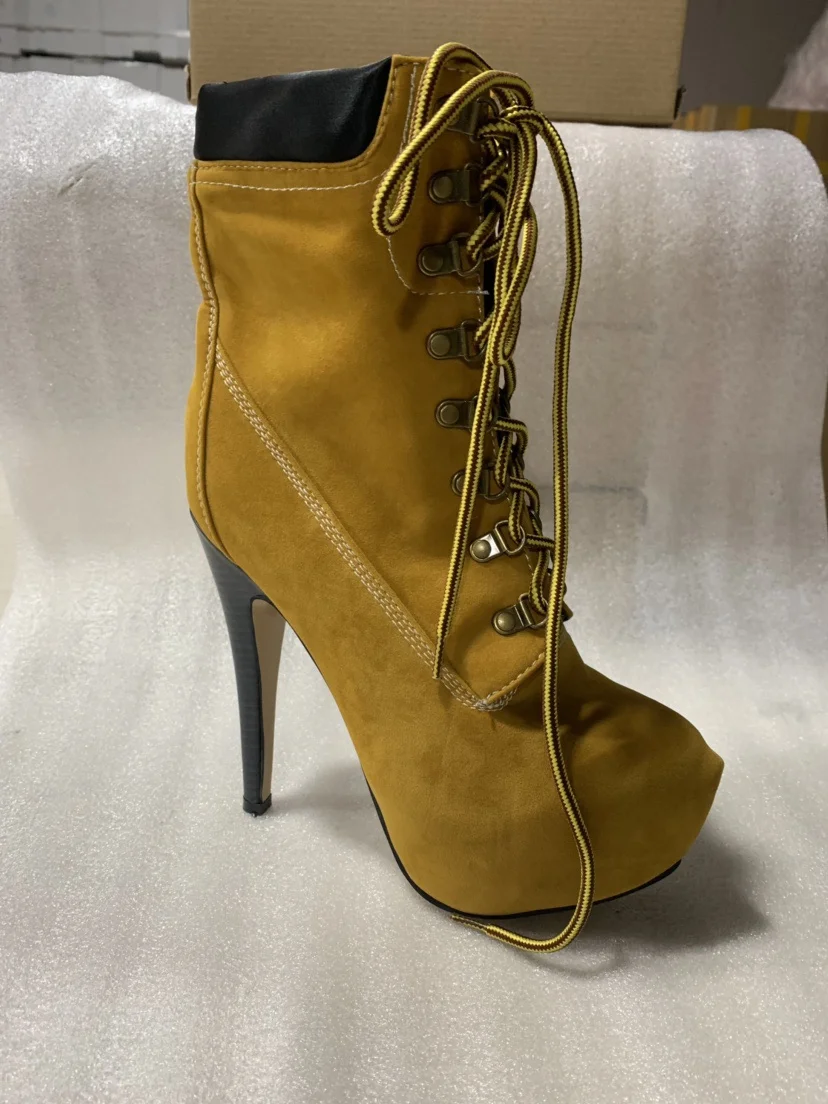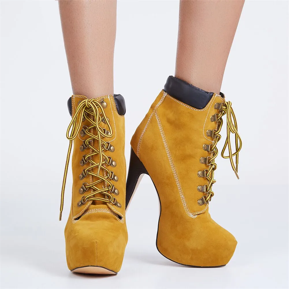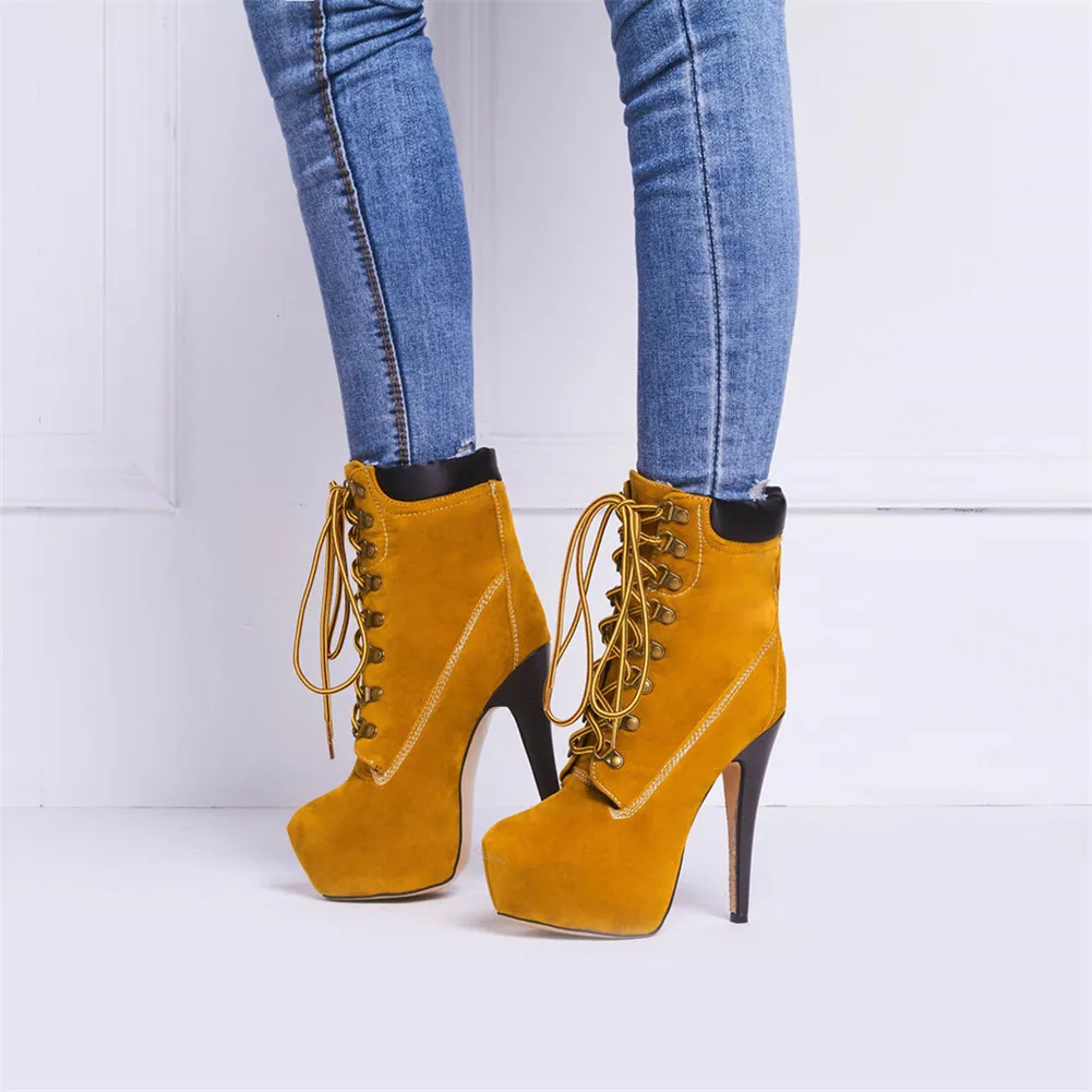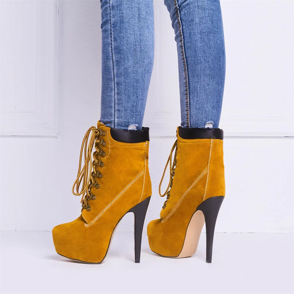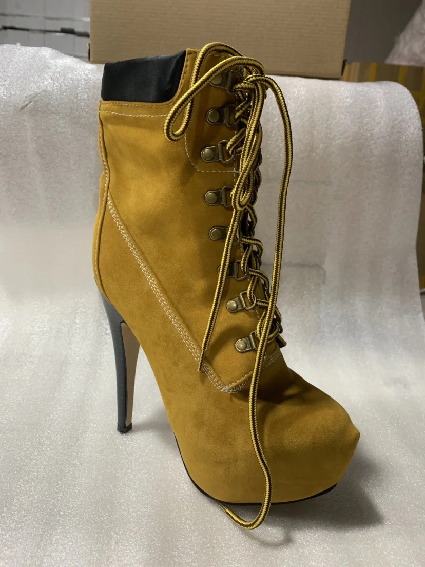 SARAIRIS New Plus Size Metal Decoration Lace Up Ladies High Heels Shoes Woman Casual Party Sexy Winter Spring Ankle Boots