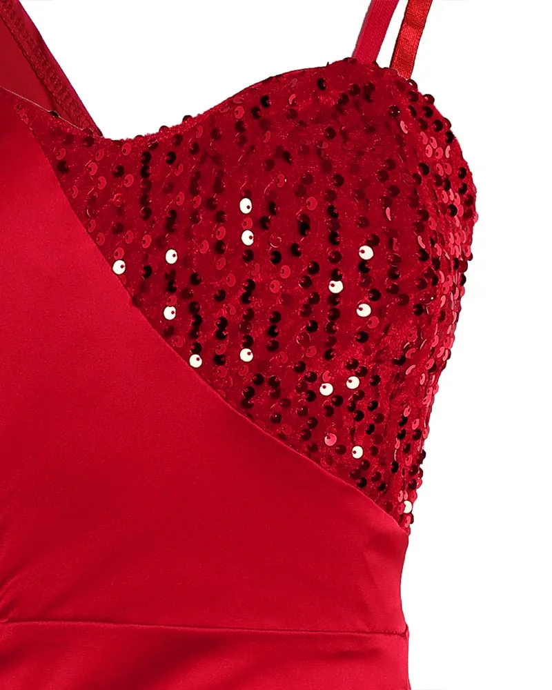 Satin Contrast Sequin Split Thigh Ruched Party Dress