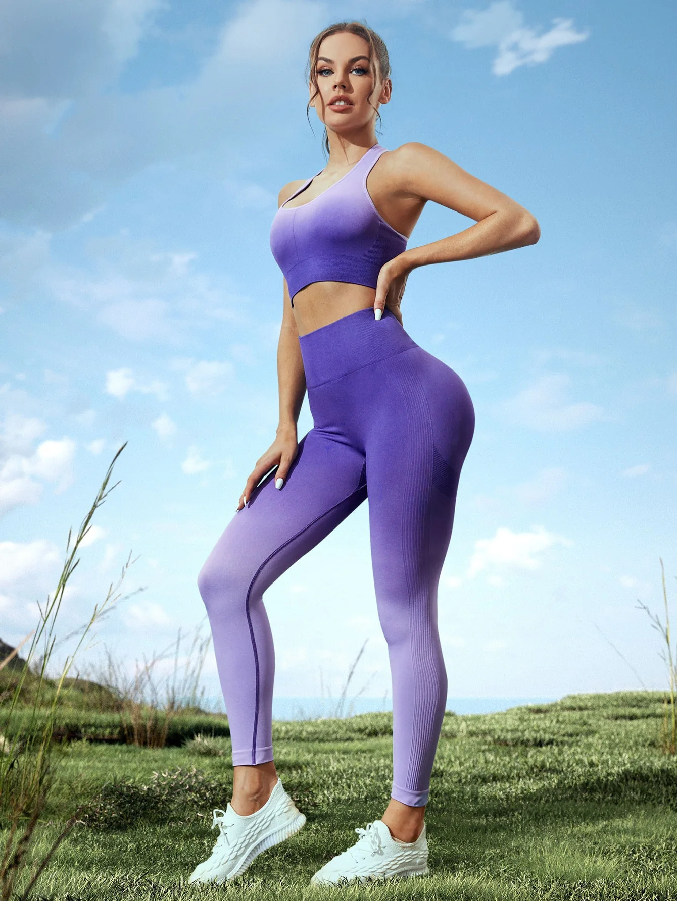 Seamless Gradient Yoga Sets Sports Fitness High Waist Hip-Lifting Pants Backless Bra Suits Workout Gym Leggings Sets for Women