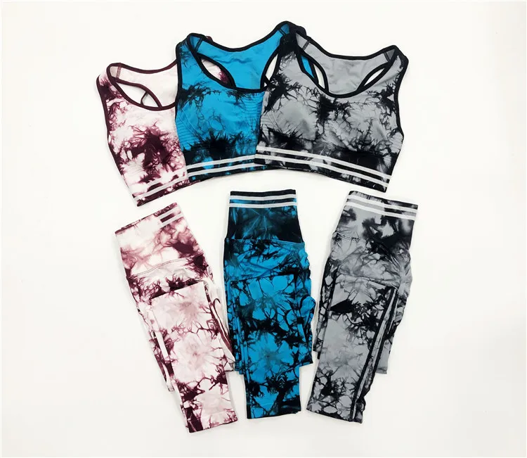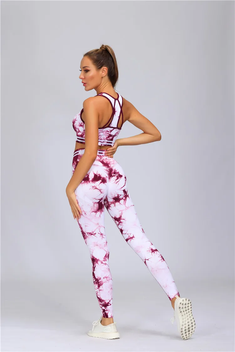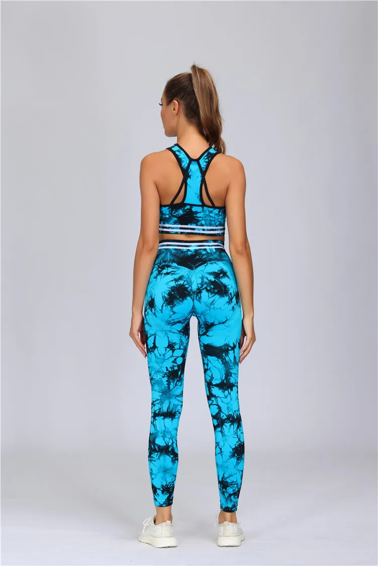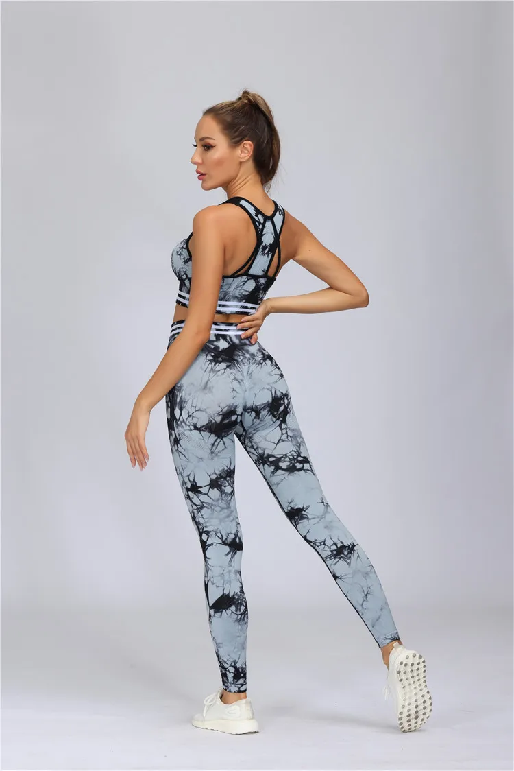 Seamless Tie-Dye Yoga Sets Sports Fitness High Waist Hip-lifting Pants Beauty Back Bra Suits Workout Gym Leggings Sets for Women