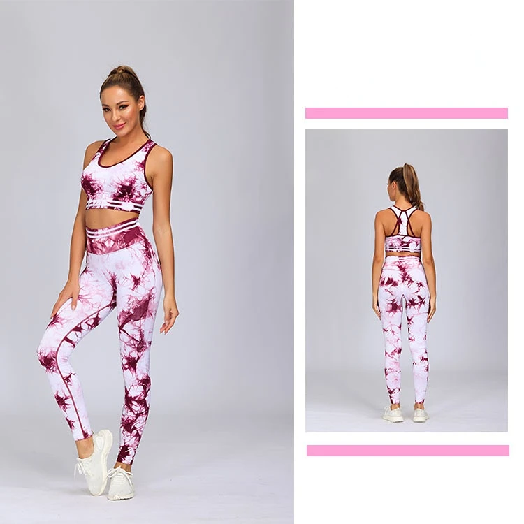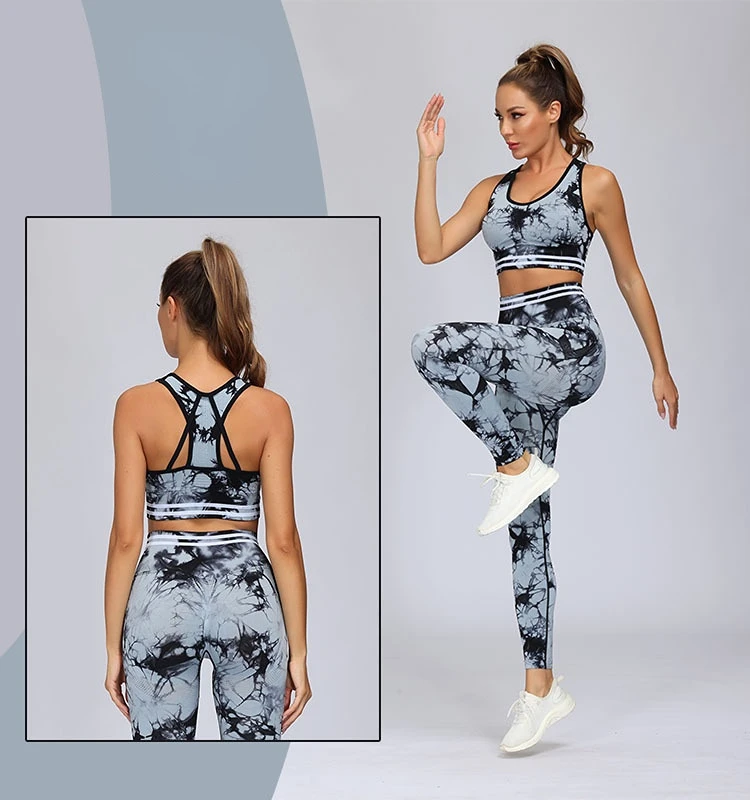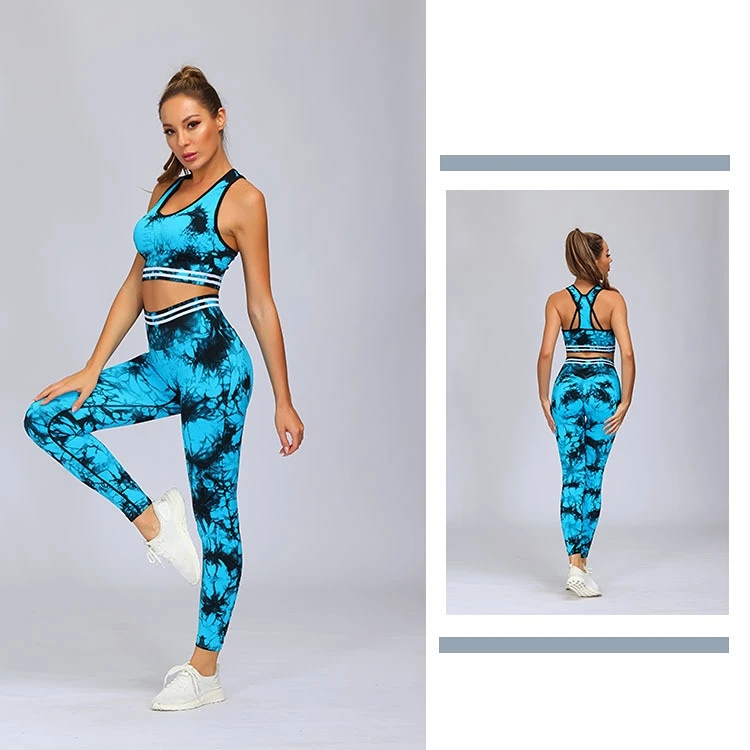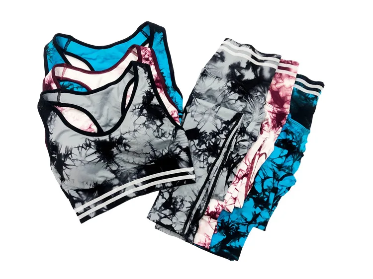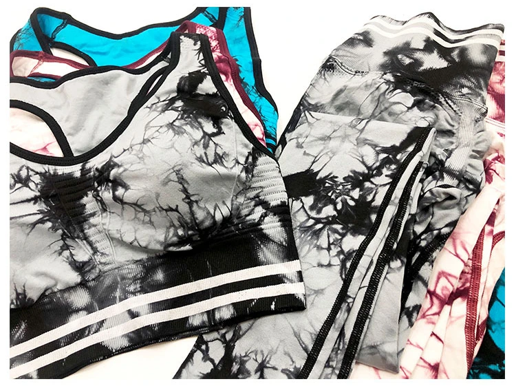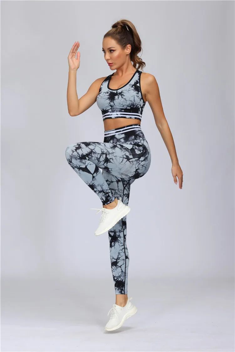 Seamless Tie-Dye Yoga Sets Sports Fitness High Waist Hip-lifting Pants Beauty Back Bra Suits Workout Gym Leggings Sets for Women