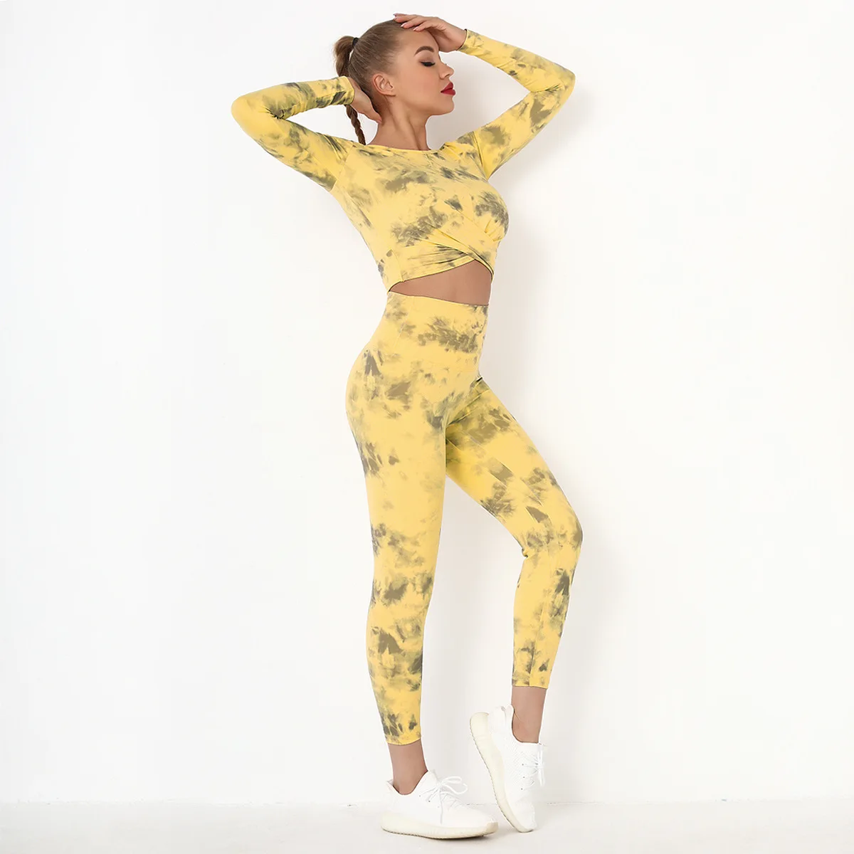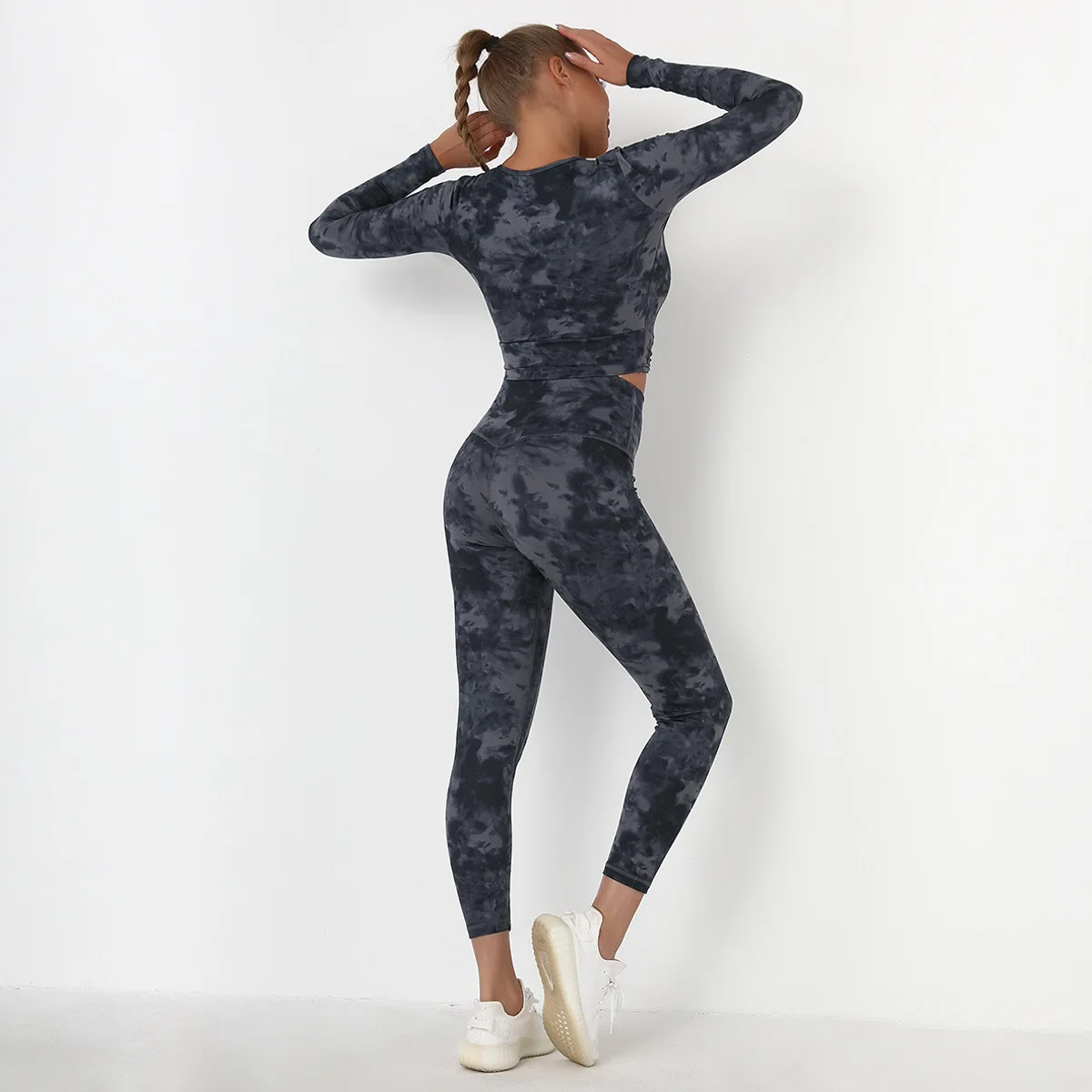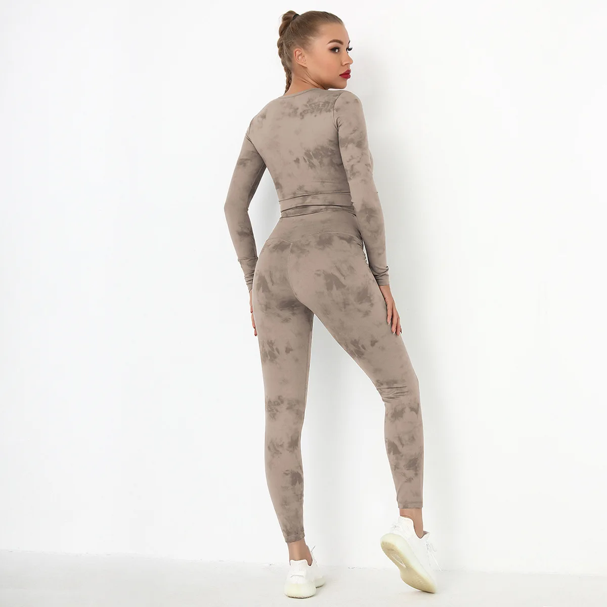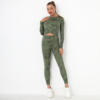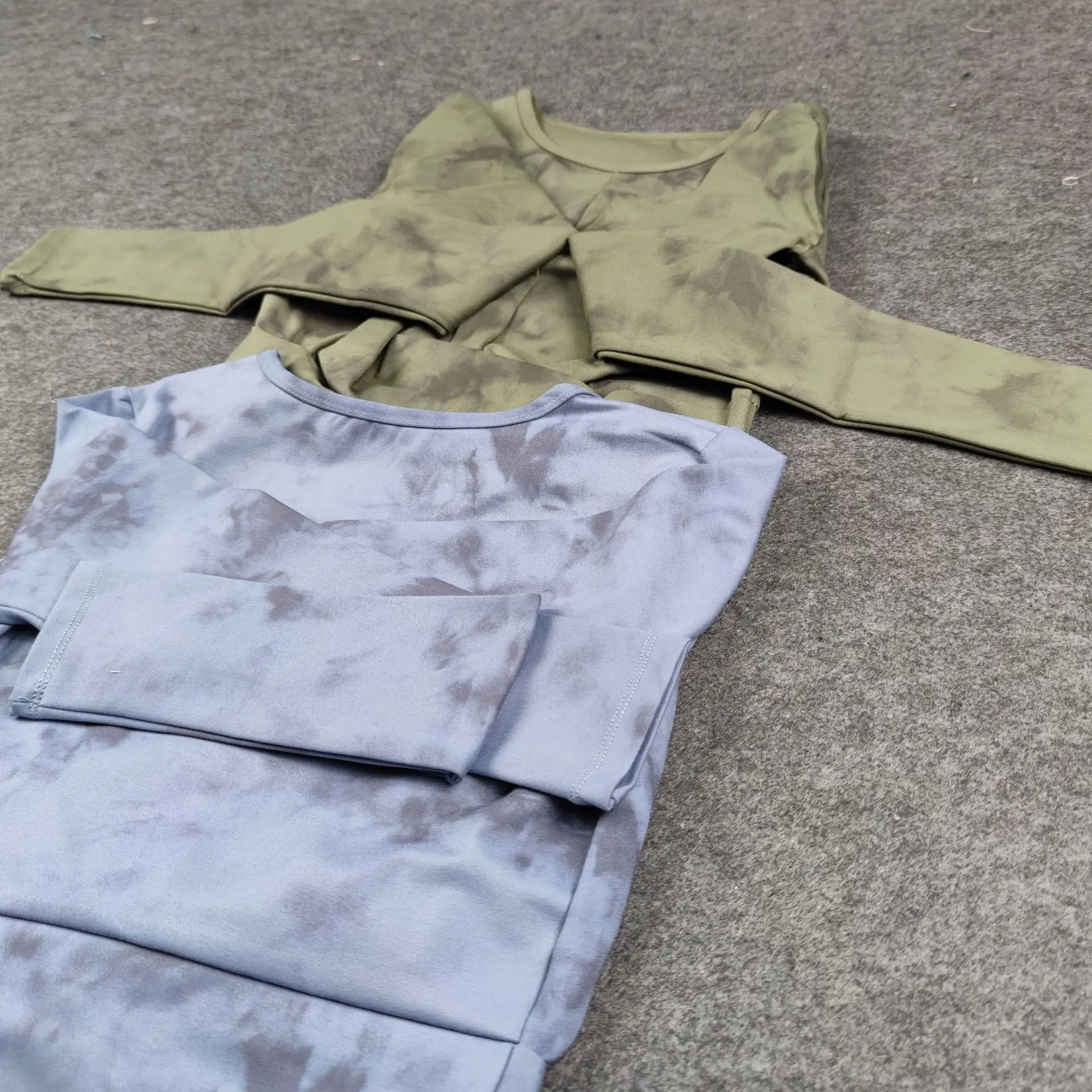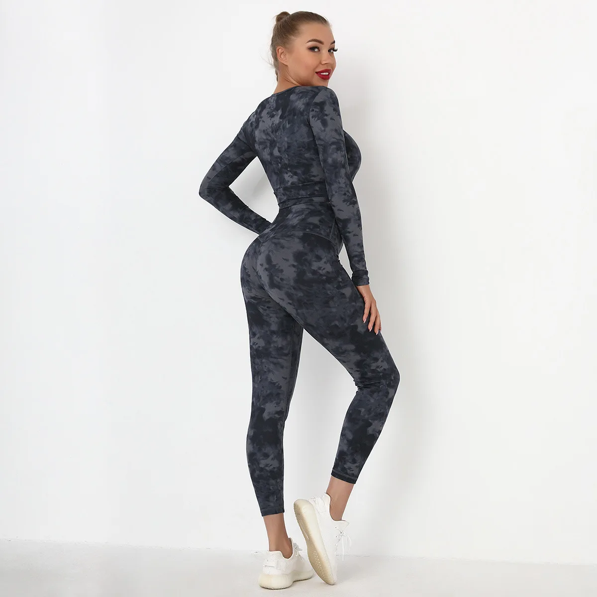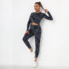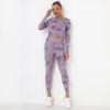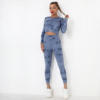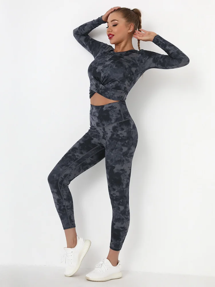 Seamless Tie-Dyed Yoga Set Sports Finesss High Waist Hip Raise Brushed Pants Long Sleeve Suit Workout Gym Leggings Set for Women