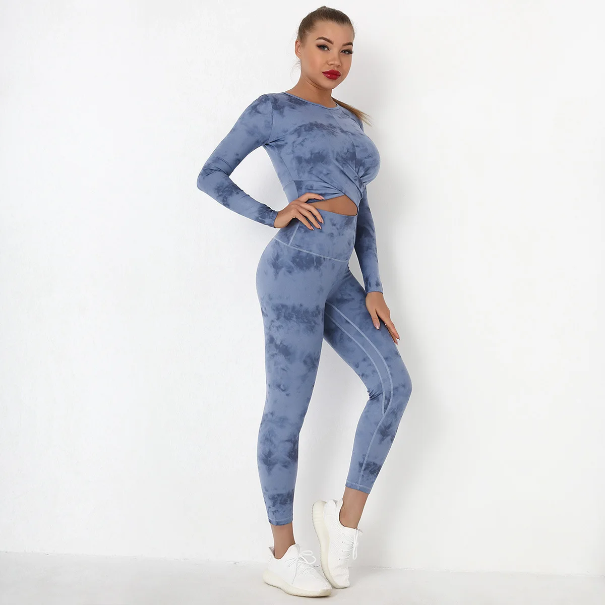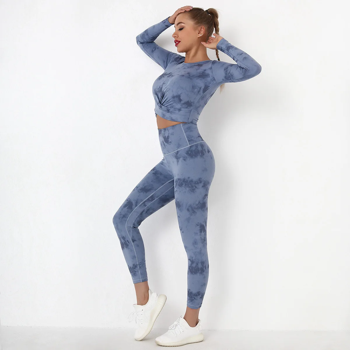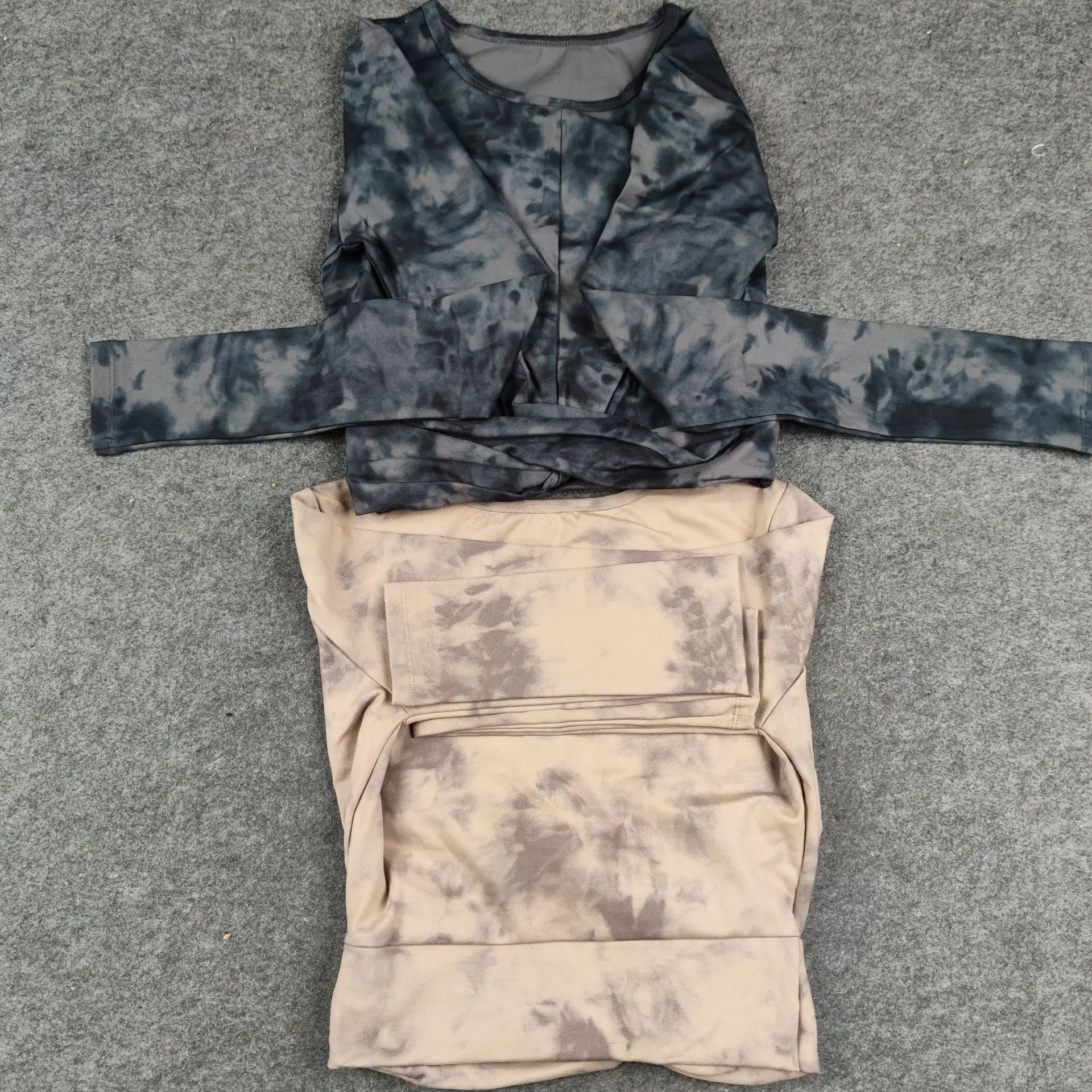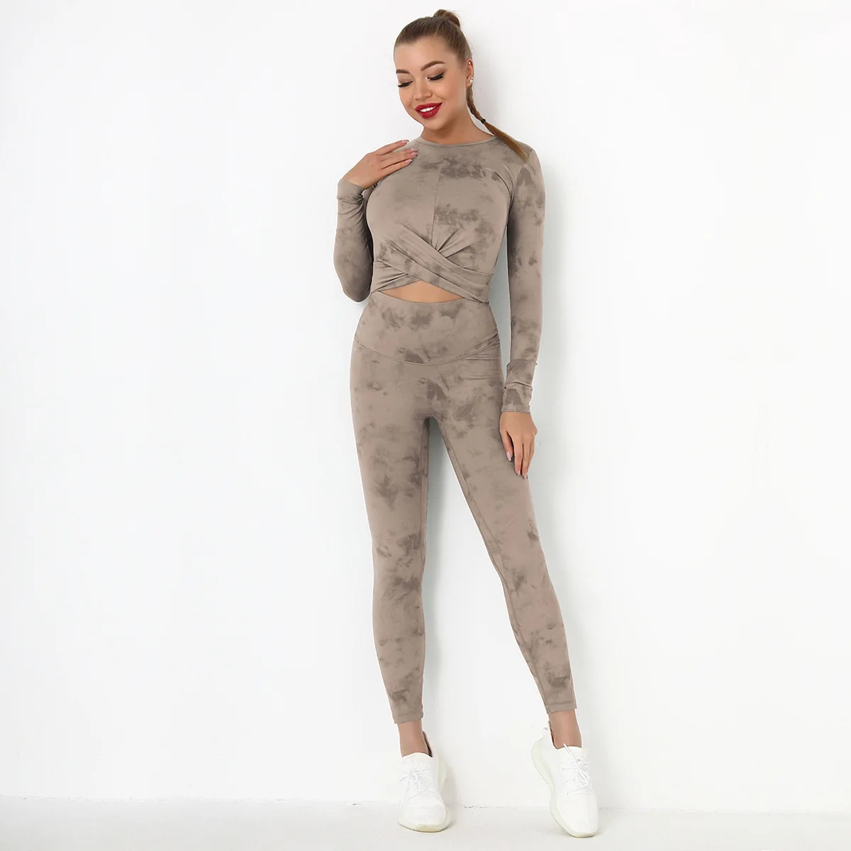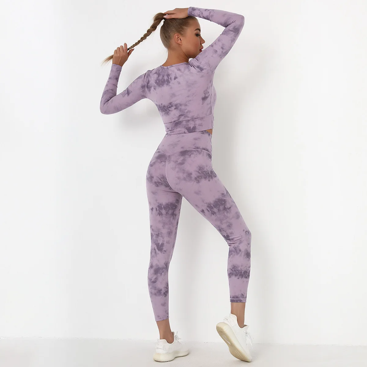 Seamless Tie-Dyed Yoga Set Sports Finesss High Waist Hip Raise Brushed Pants Long Sleeve Suit Workout Gym Leggings Set for Women