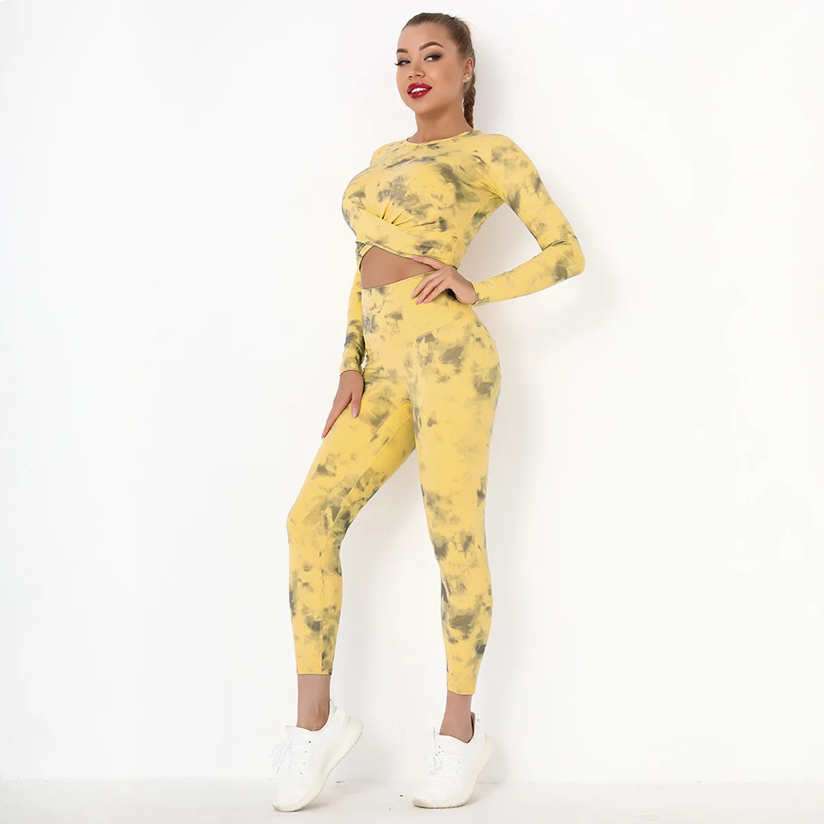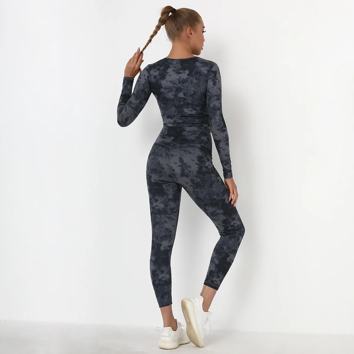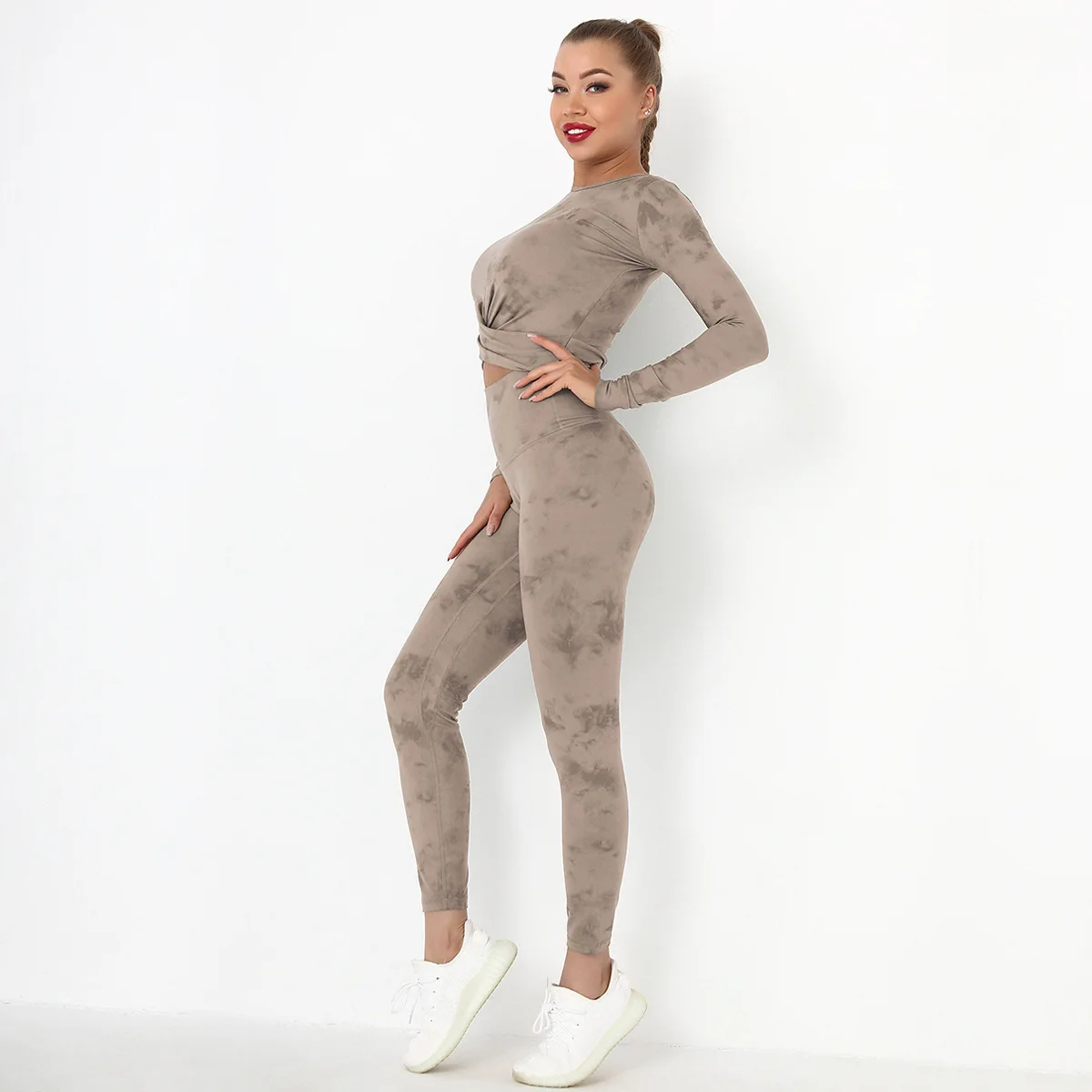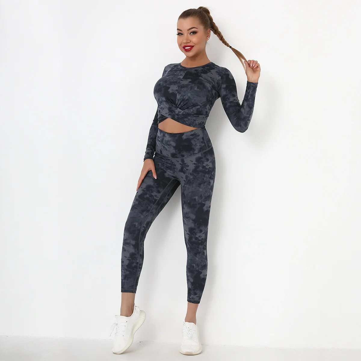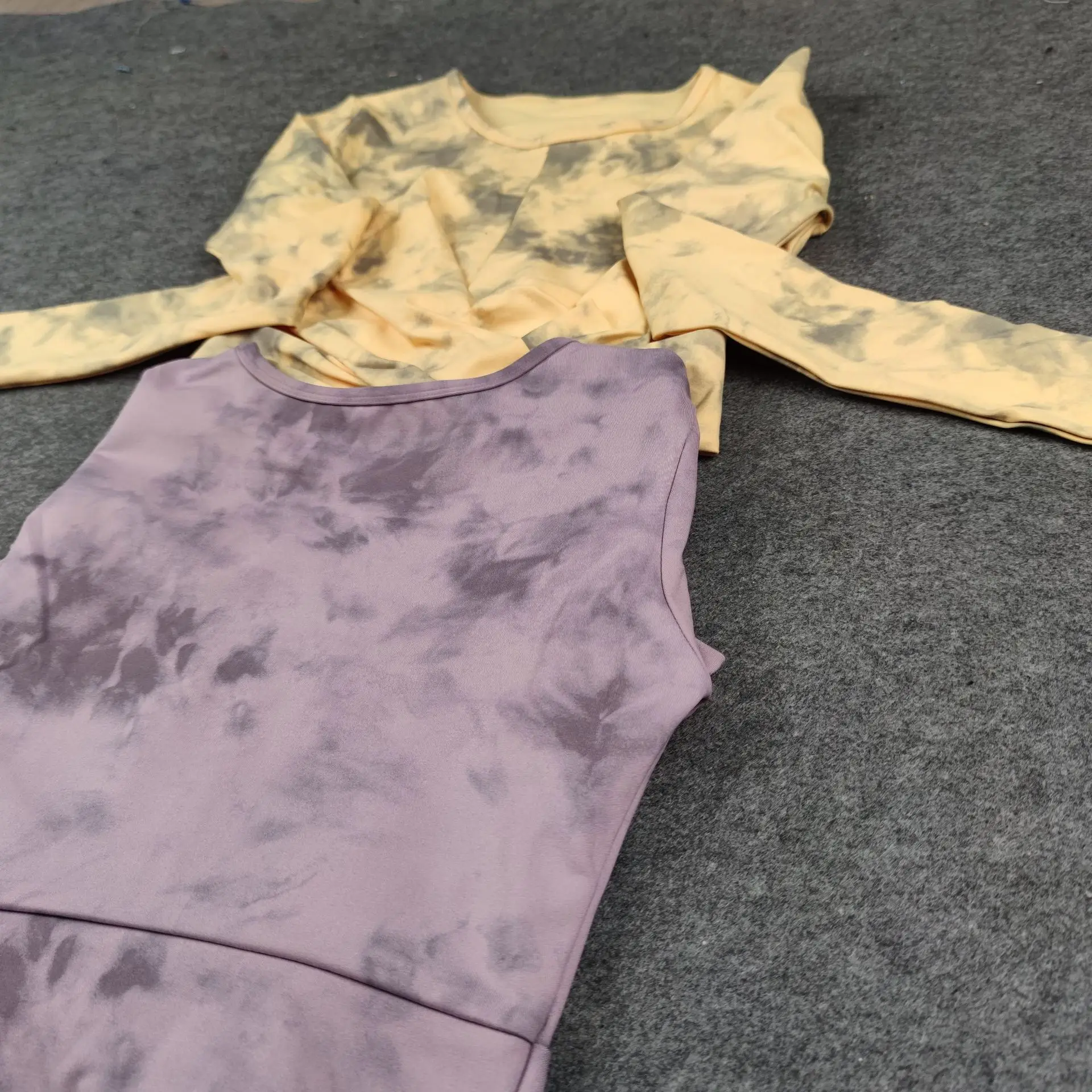 Seamless Tie-Dyed Yoga Set Sports Finesss High Waist Hip Raise Brushed Pants Long Sleeve Suit Workout Gym Leggings Set for Women