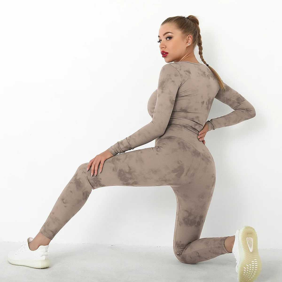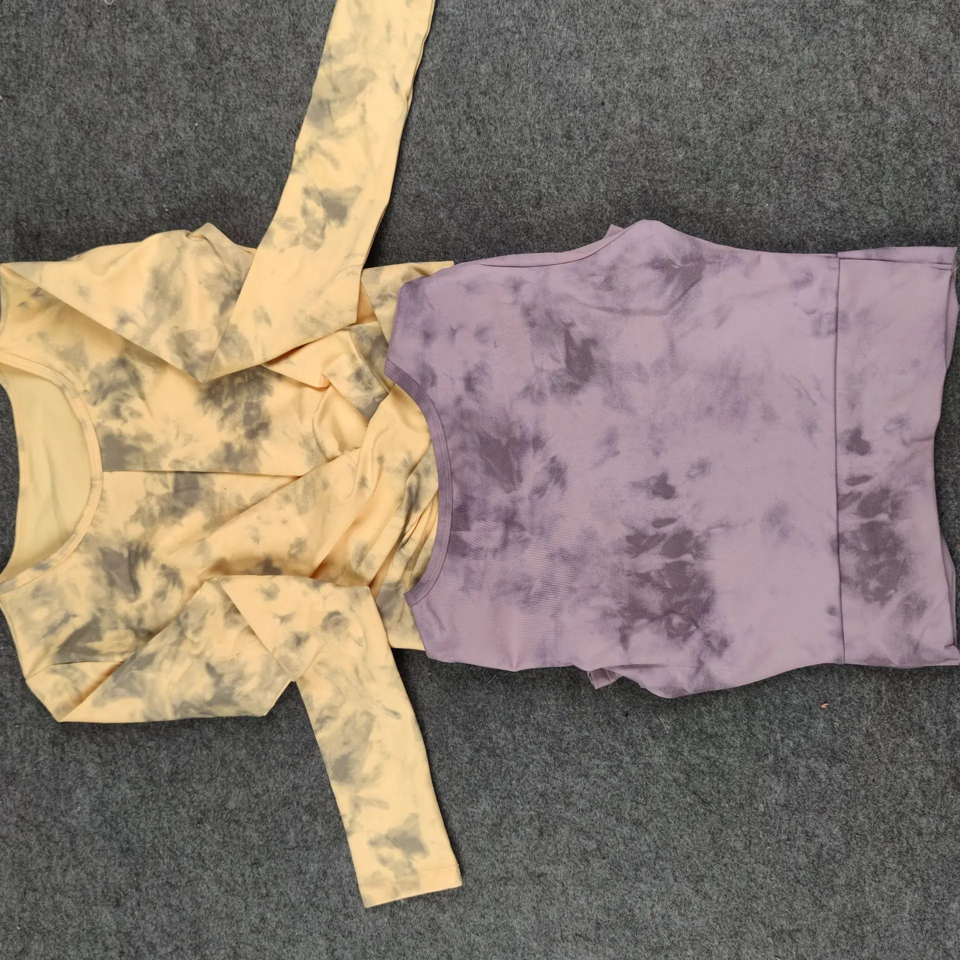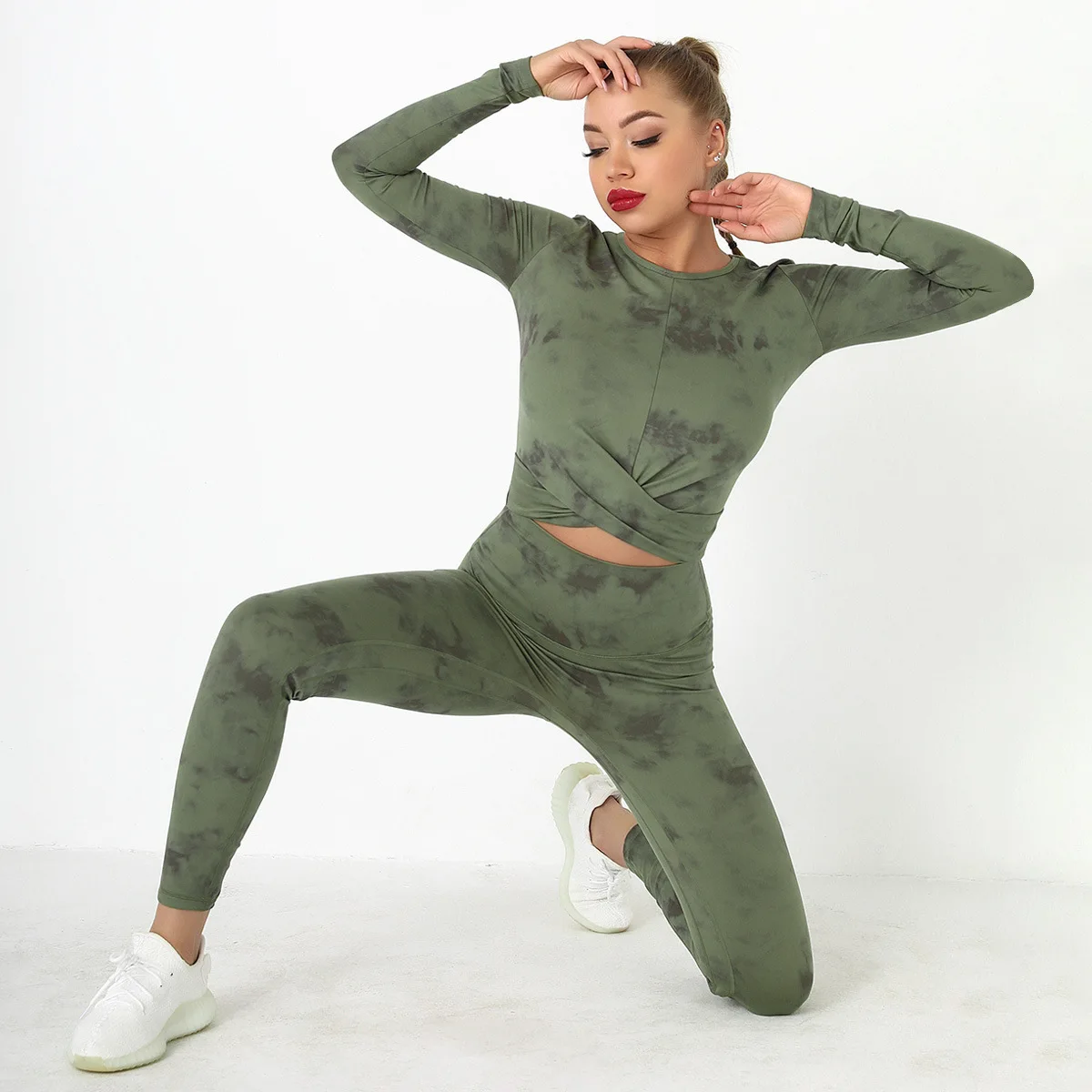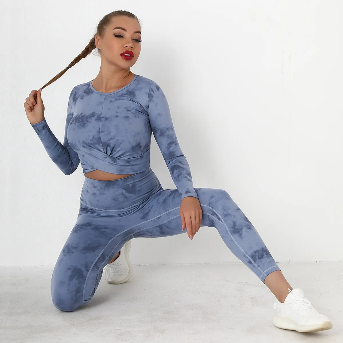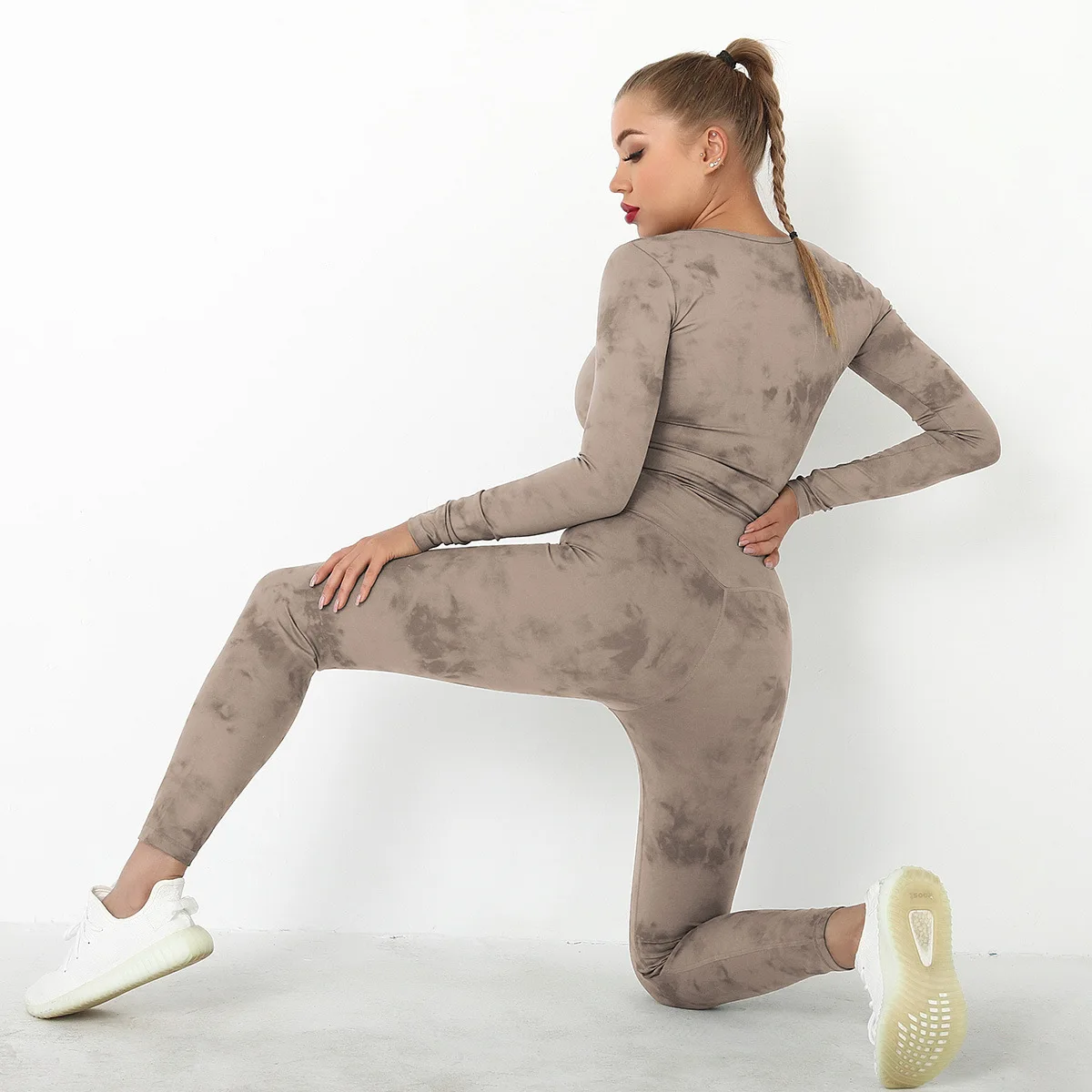 Seamless Tie-Dyed Yoga Set Sports Finesss High Waist Hip Raise Brushed Pants Long Sleeve Suit Workout Gym Leggings Set for Women