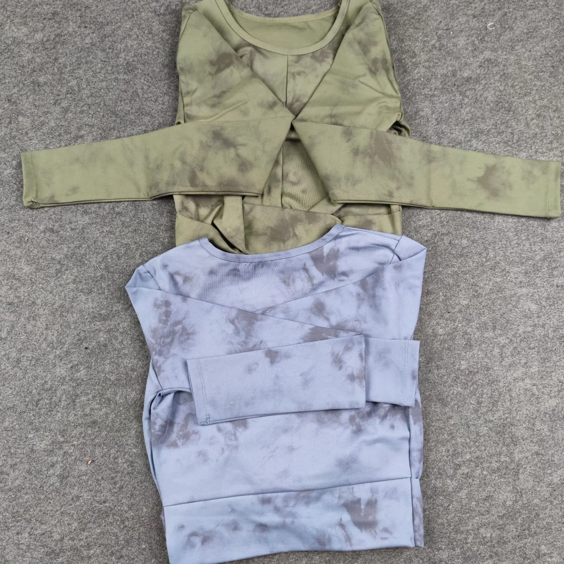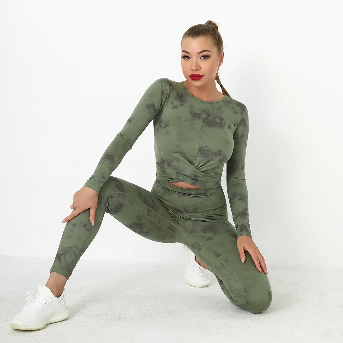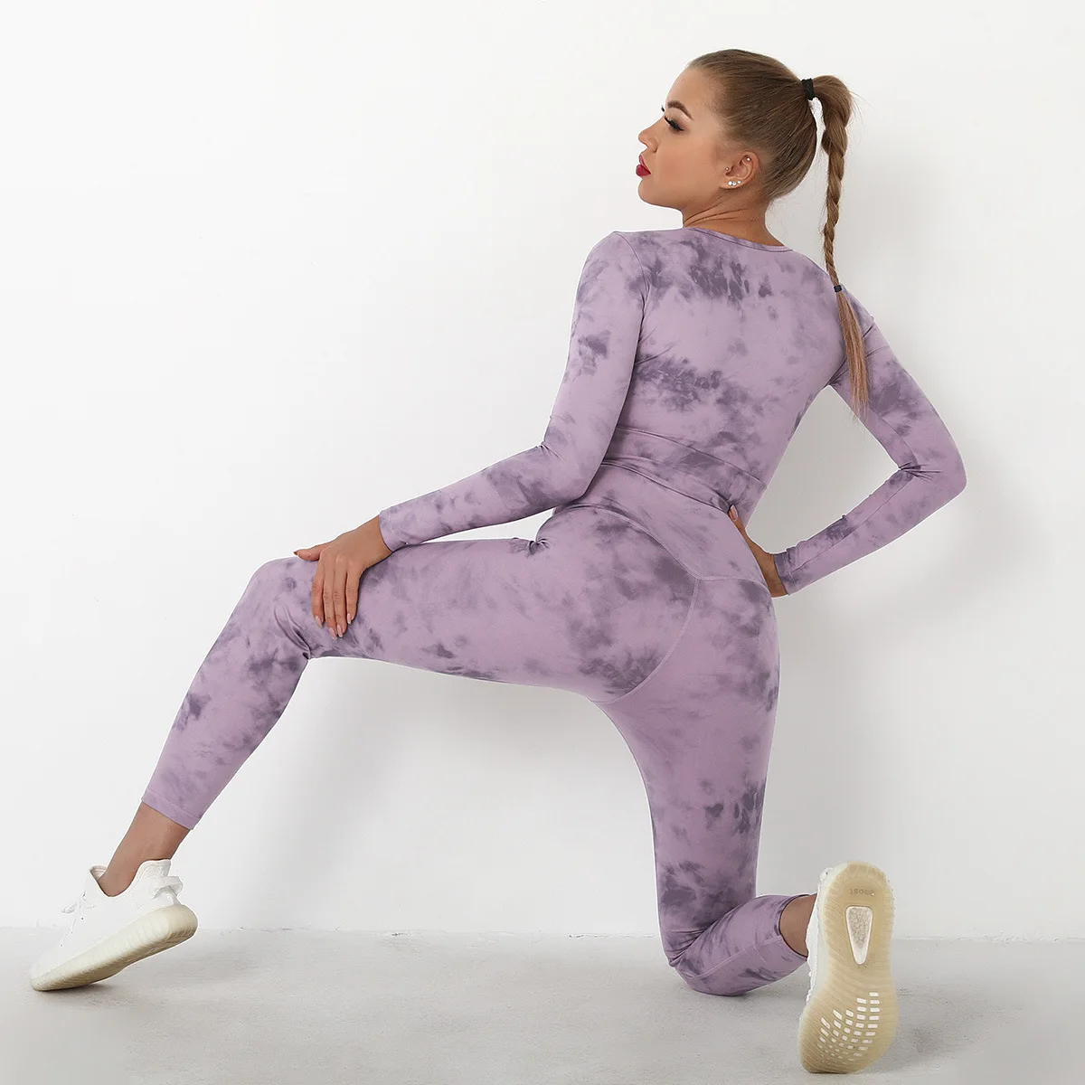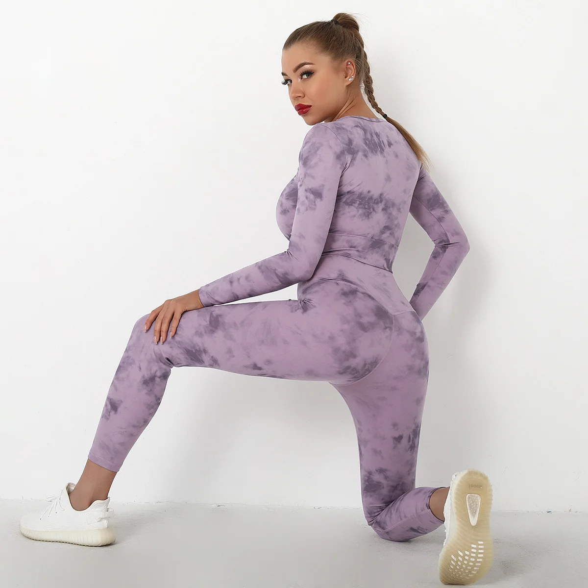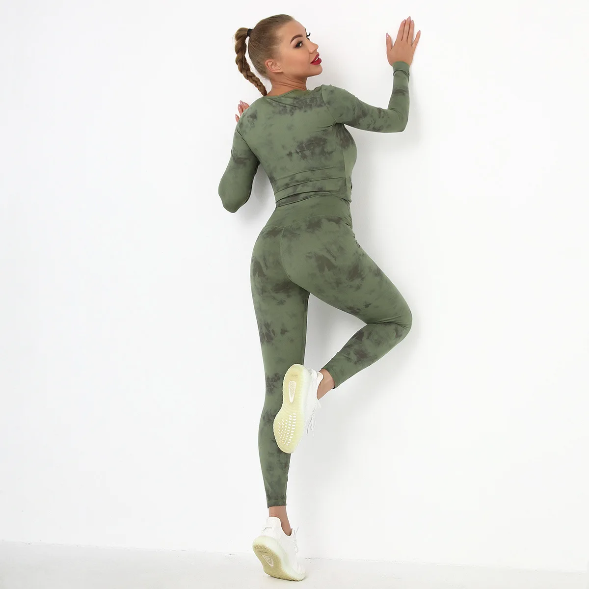 Seamless Tie-Dyed Yoga Set Sports Finesss High Waist Hip Raise Brushed Pants Long Sleeve Suit Workout Gym Leggings Set for Women