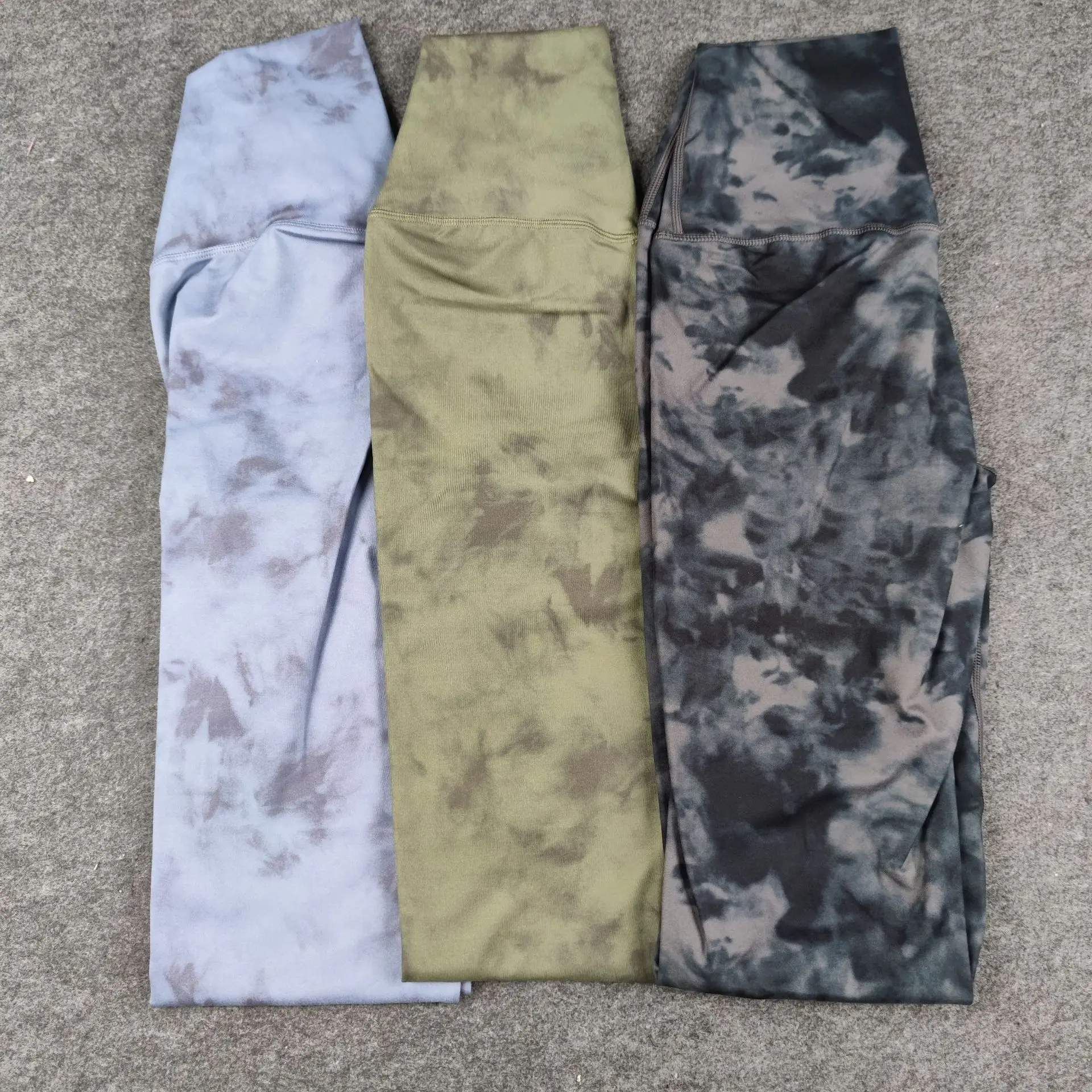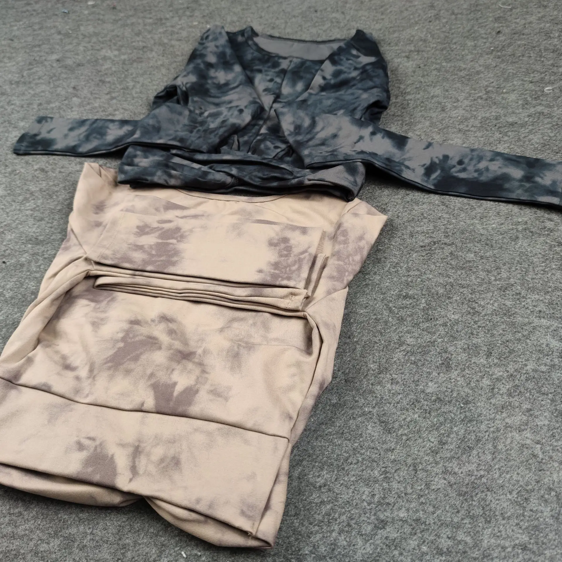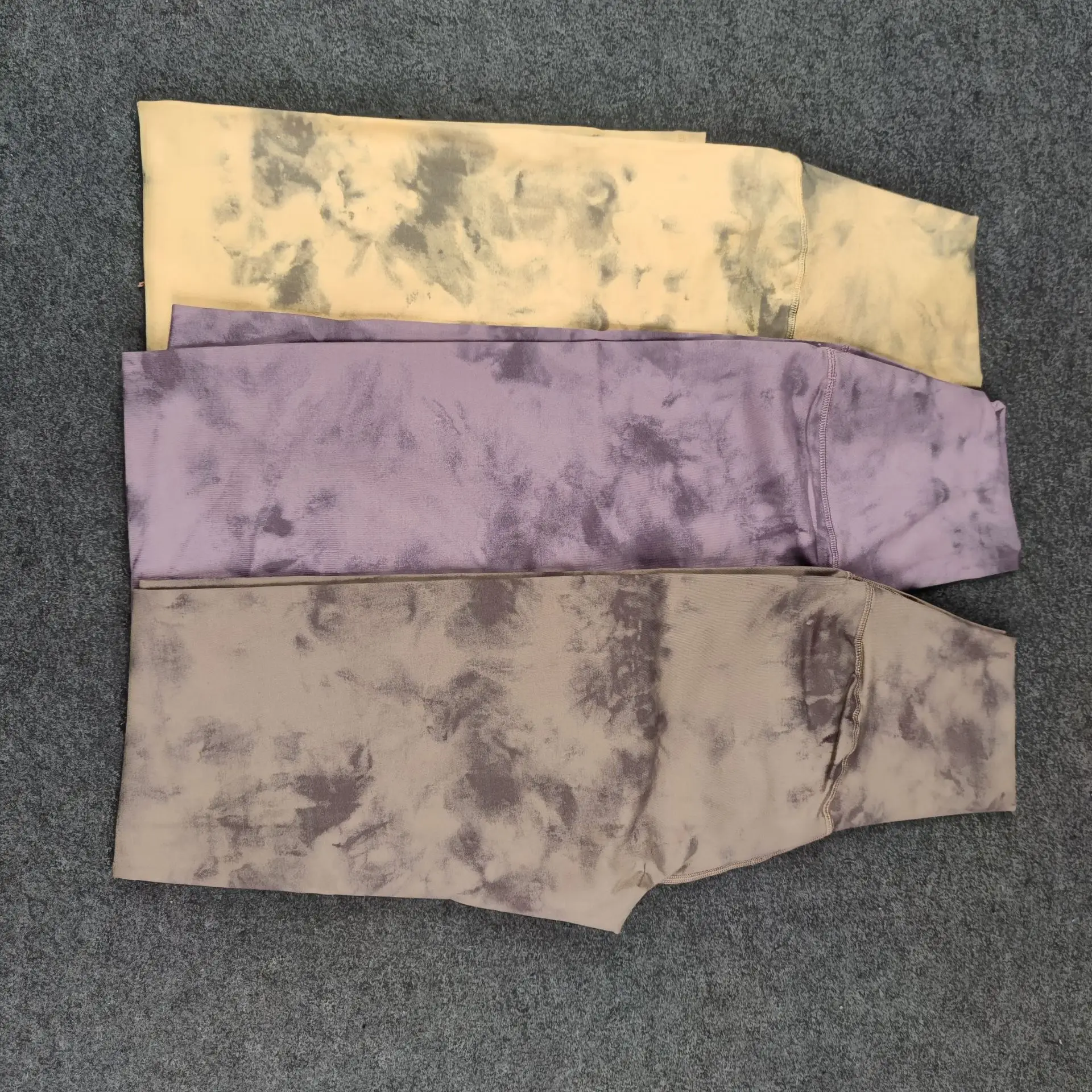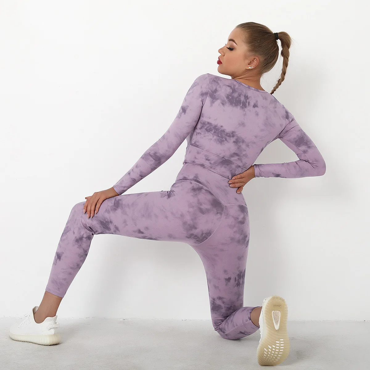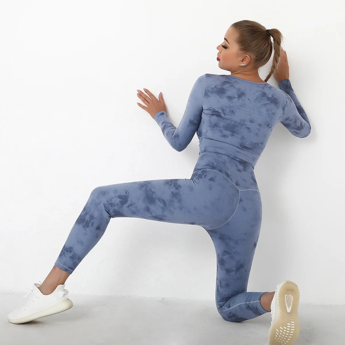 Seamless Tie-Dyed Yoga Set Sports Finesss High Waist Hip Raise Brushed Pants Long Sleeve Suit Workout Gym Leggings Set for Women