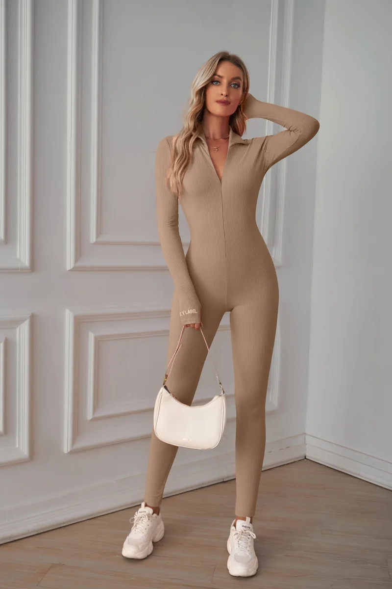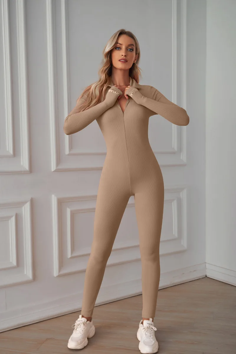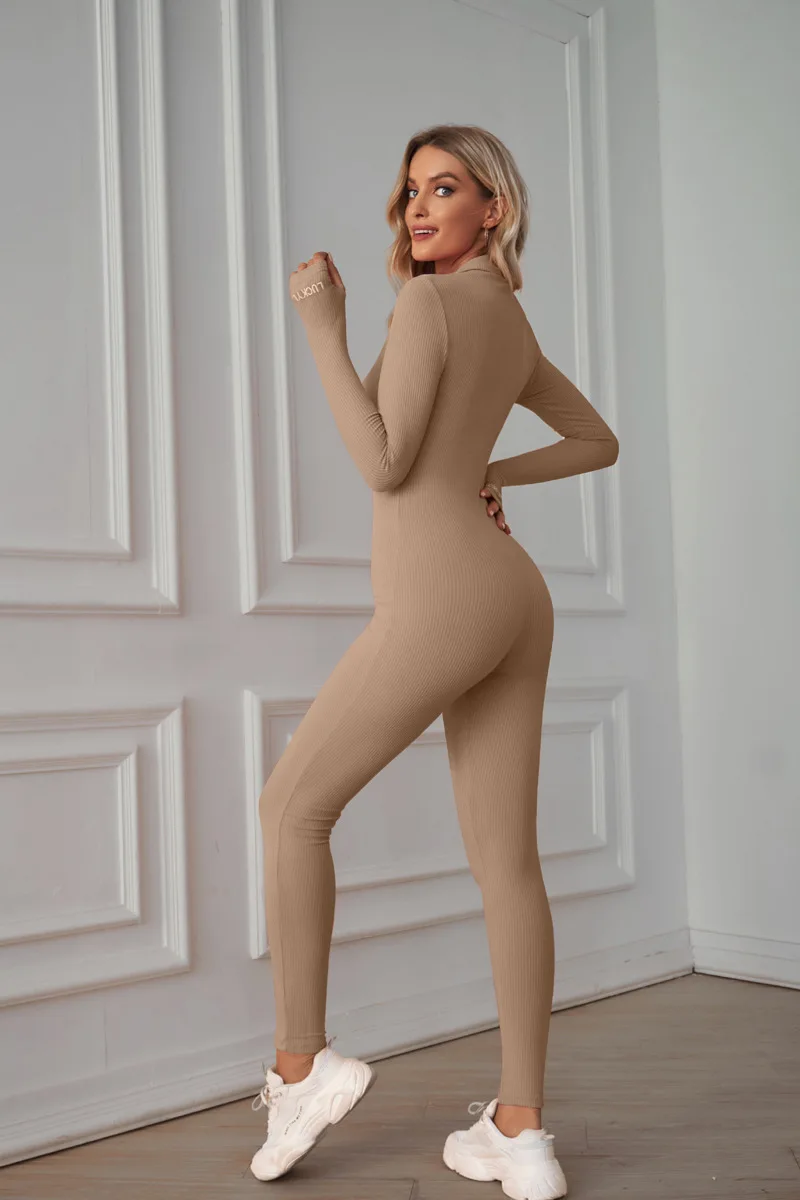 Seamless Yoga Jumpsuits Sports Fitness Hip-lifting Zipper Yoga Trainning Jumpsuits Workout Clothes Gym Leggings Set for Women