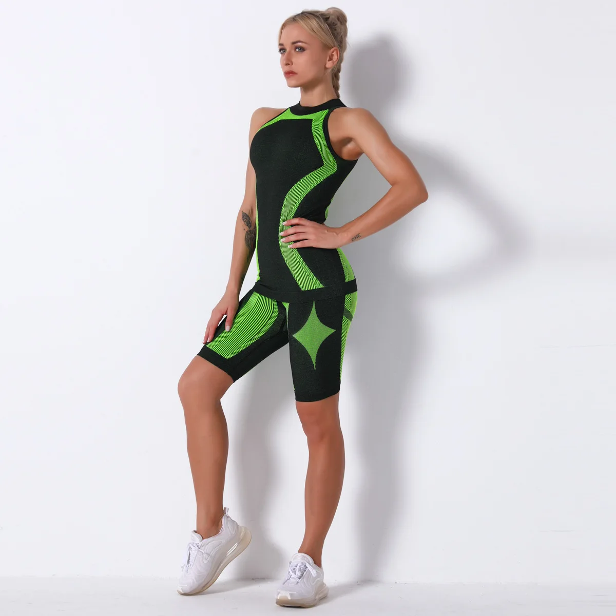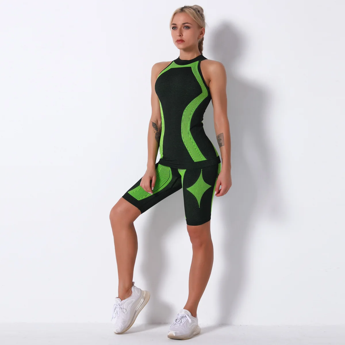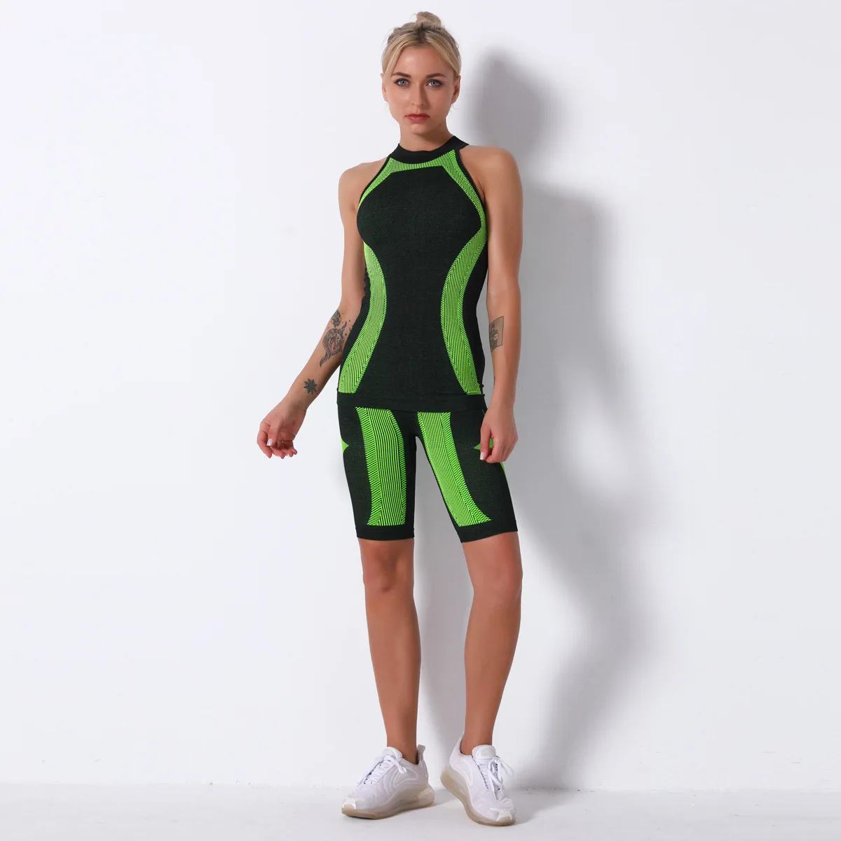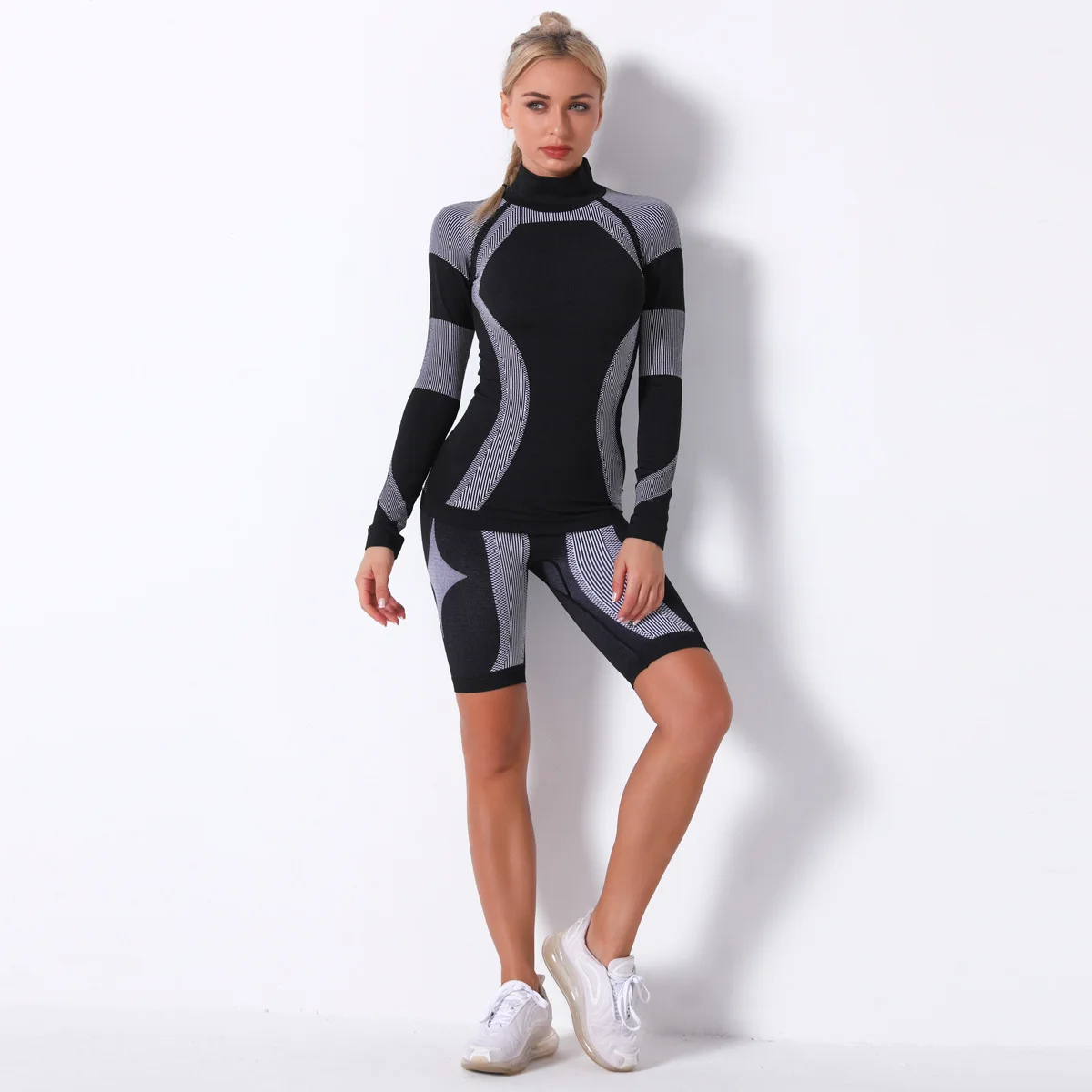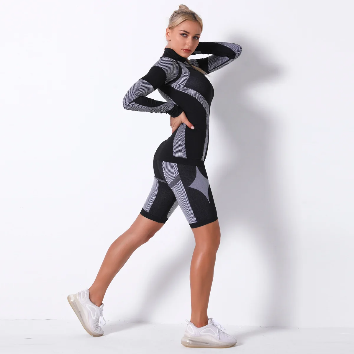 Seamless Yoga Sets Sports Fitness High Waist Hip-lifting Pants Vest Long-Sleeved Suit Workout Gym Leggings Shorts Sets for Women