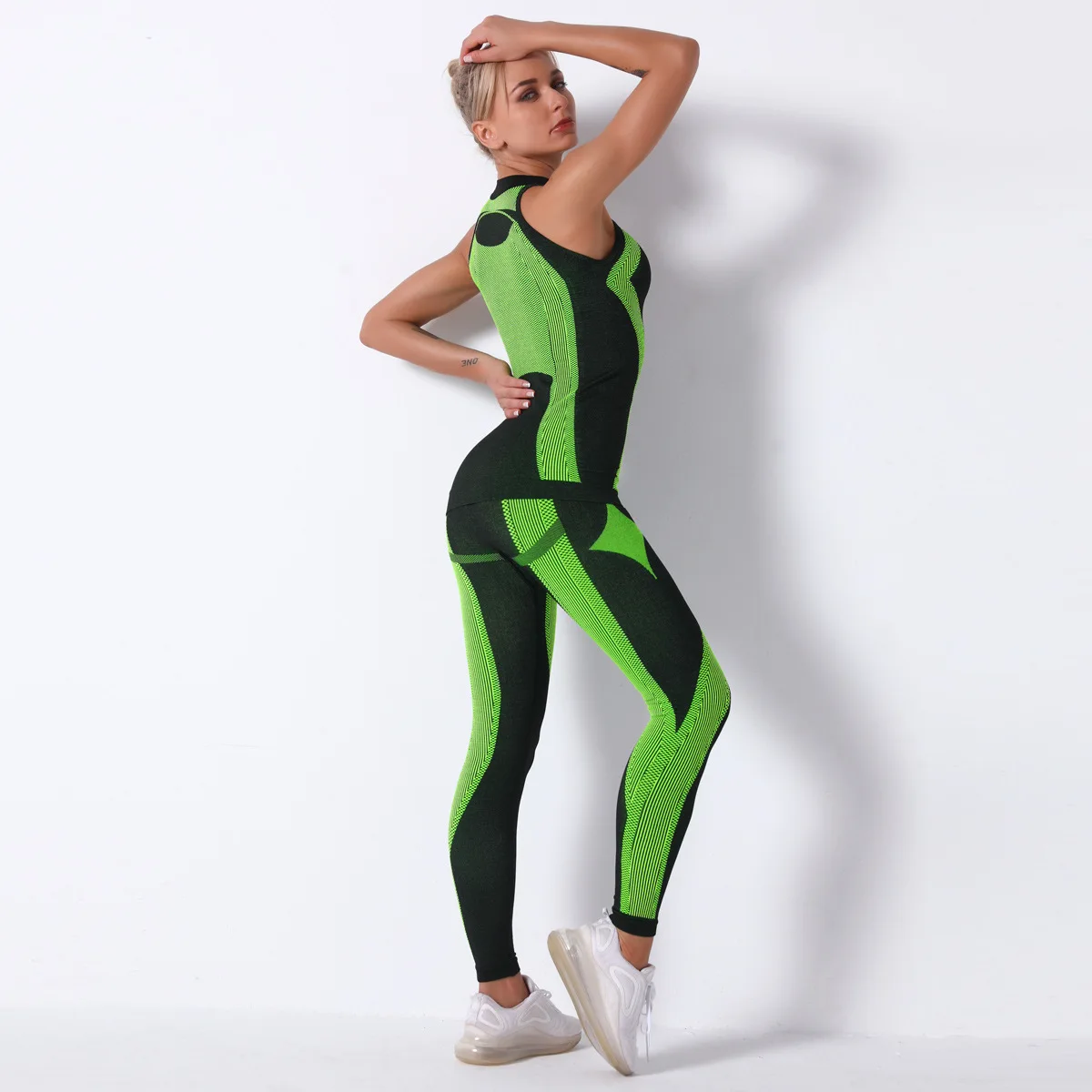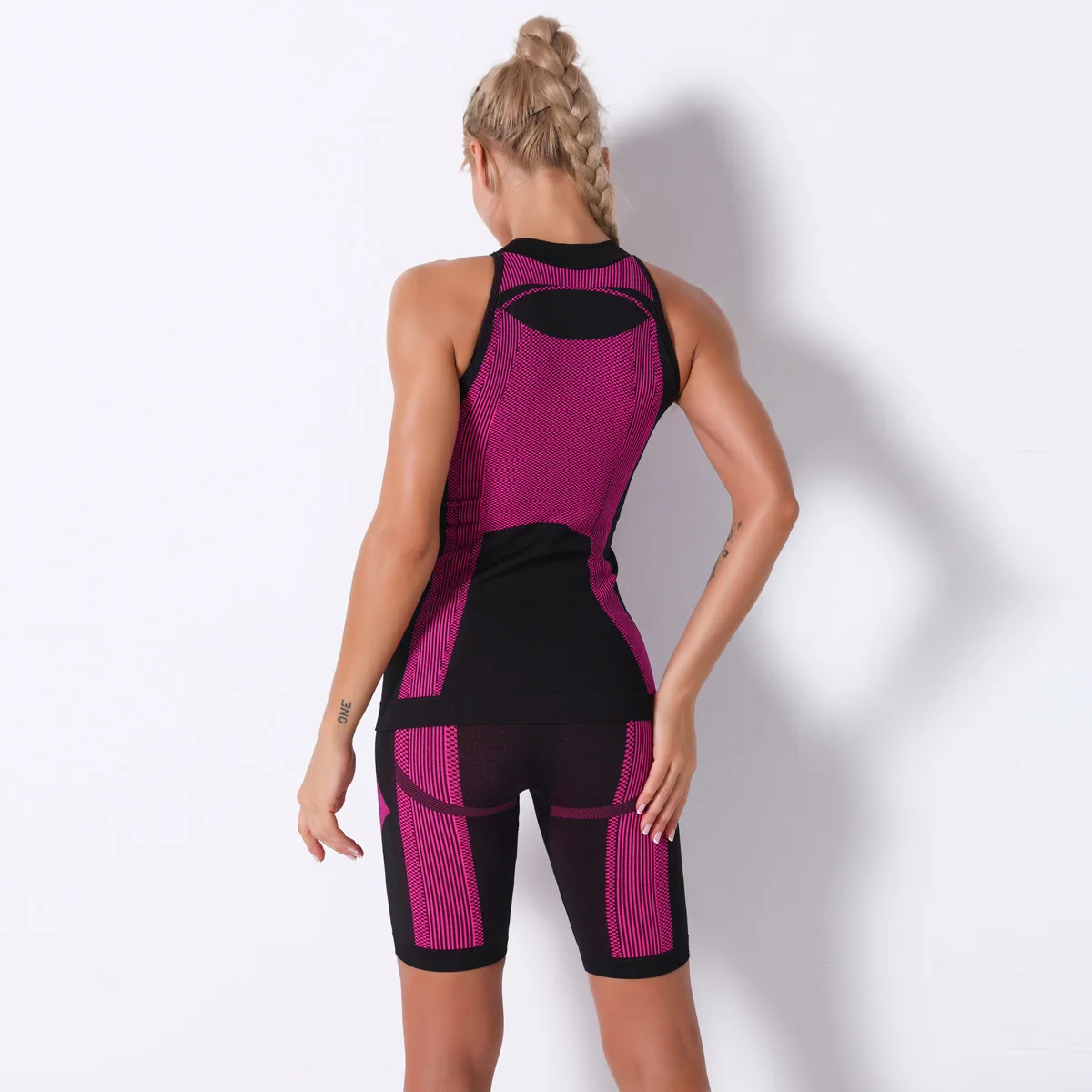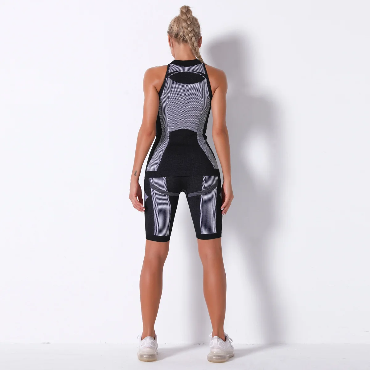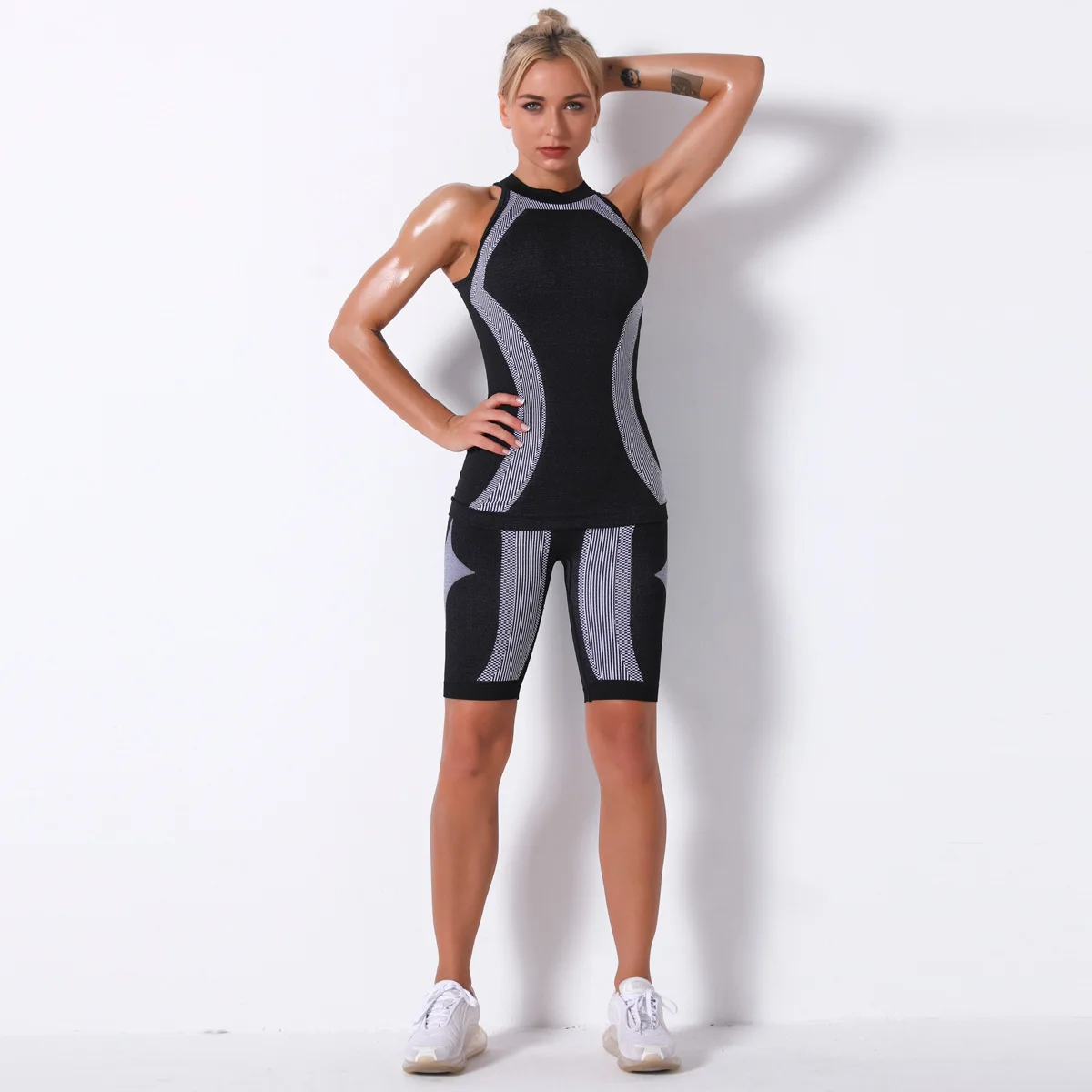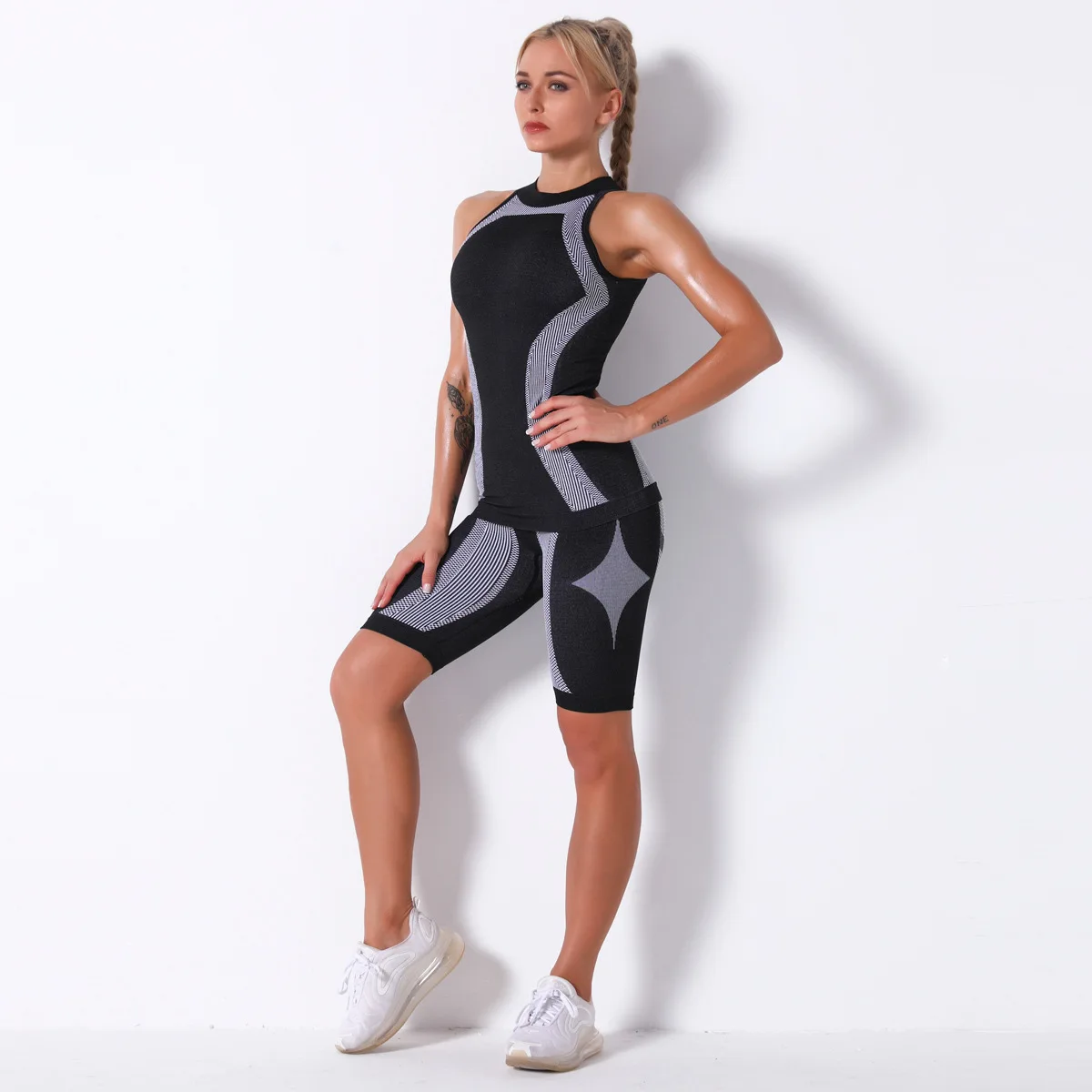 Seamless Yoga Sets Sports Fitness High Waist Hip-lifting Pants Vest Long-Sleeved Suit Workout Gym Leggings Shorts Sets for Women