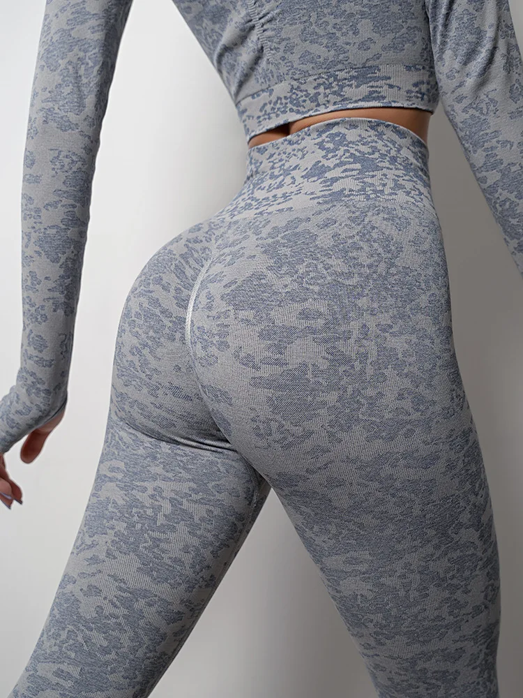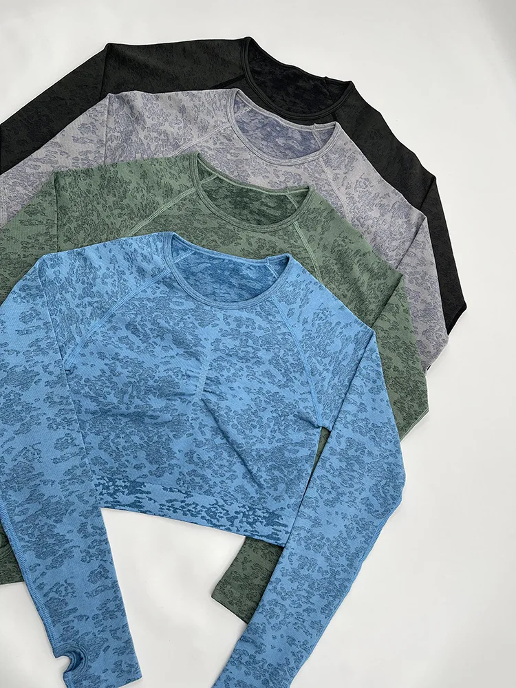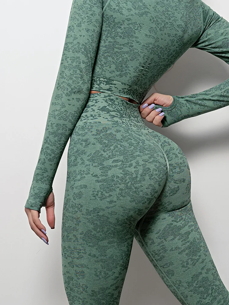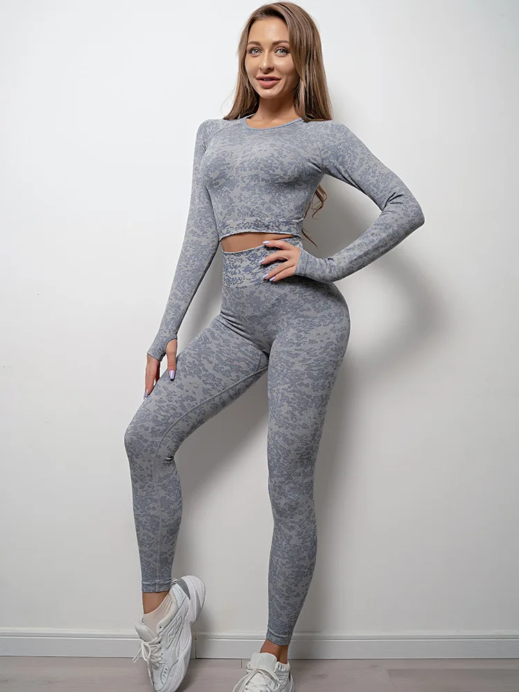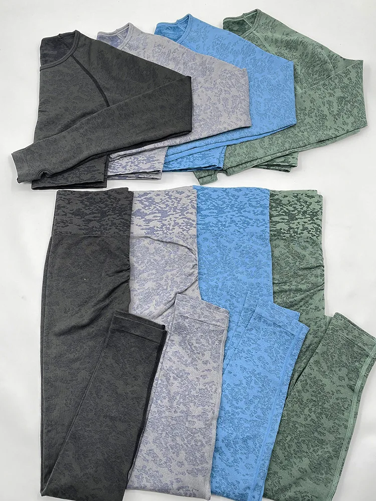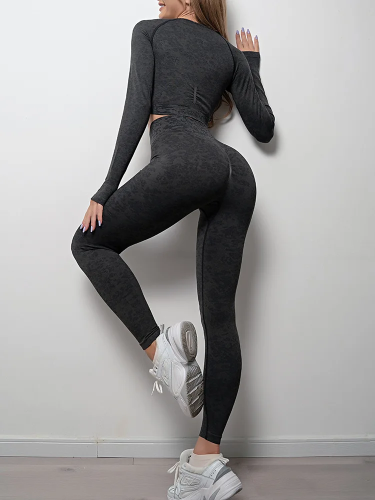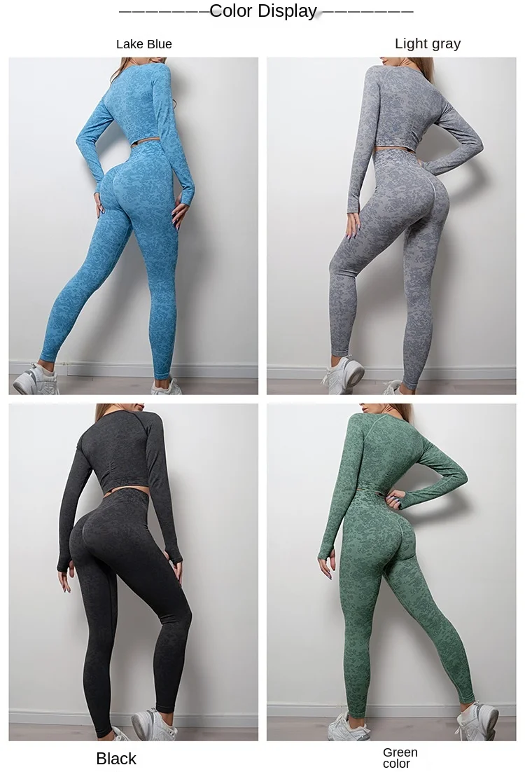 Seamless Yoga Sets Sports Fitness High Waist Hip-lifting Trousers Long-Sleeved Suits Workout Clothes Gym Leggings Sets for Women